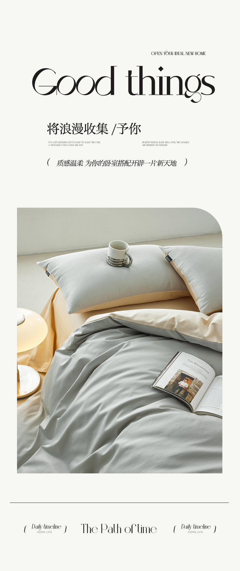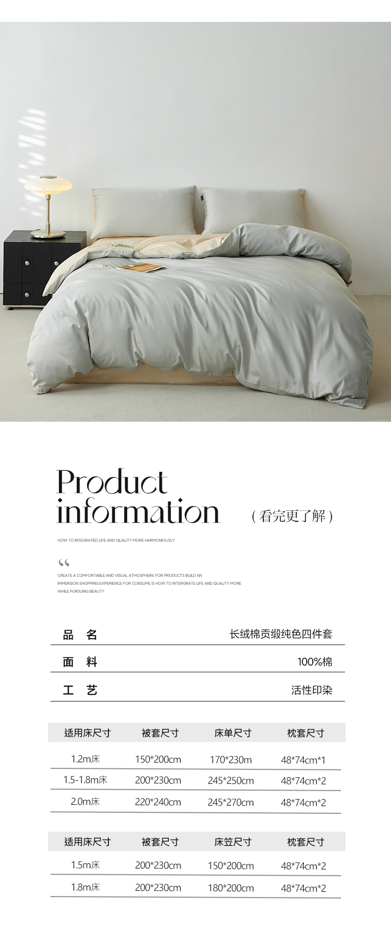 商品名称:安莱生活 2024新款100s全棉贡缎四件套 高级灰-棕灰