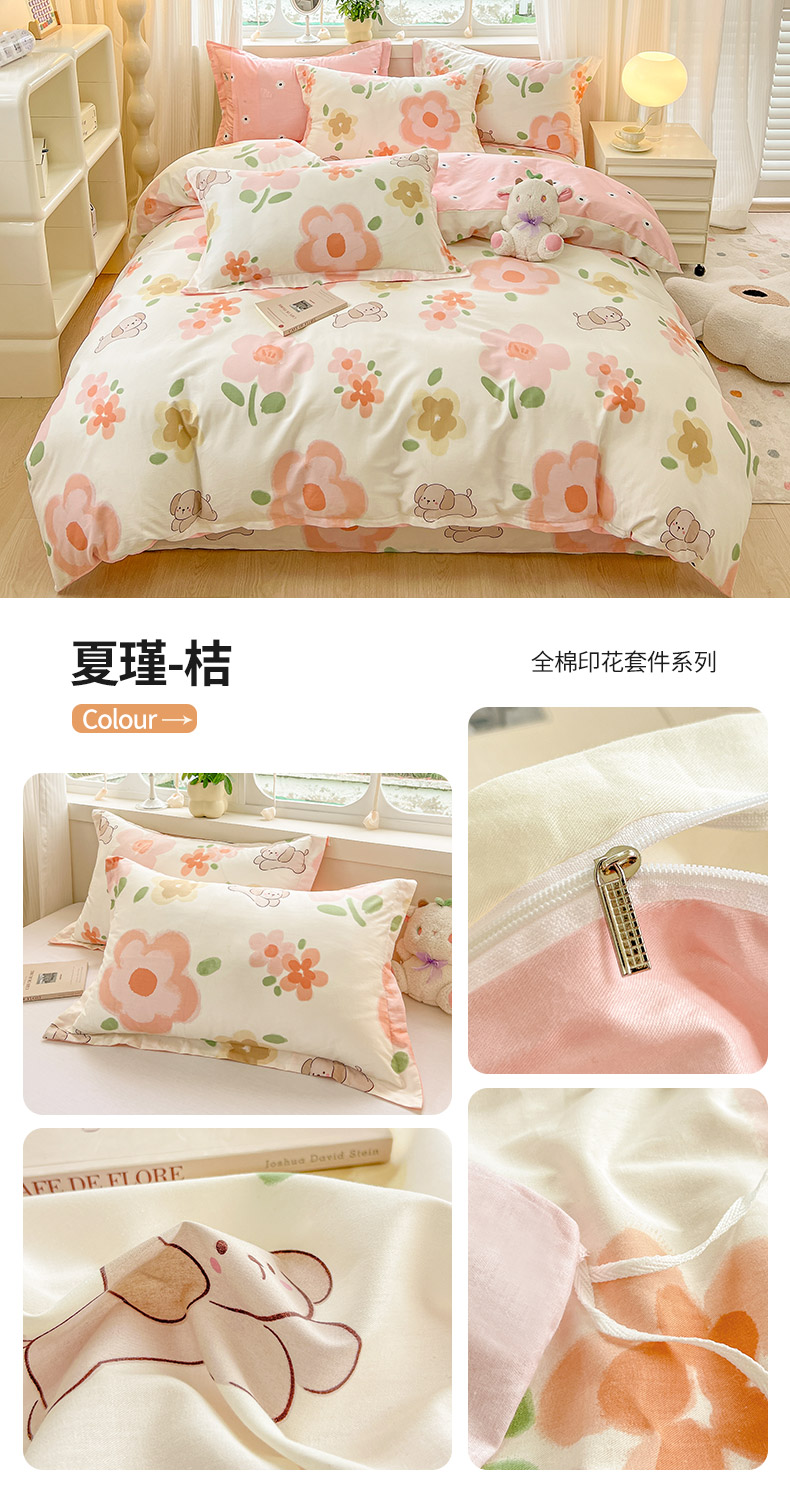 绵庭家纺 2024新款全棉印花套件系列四件套 夏瑾 桔