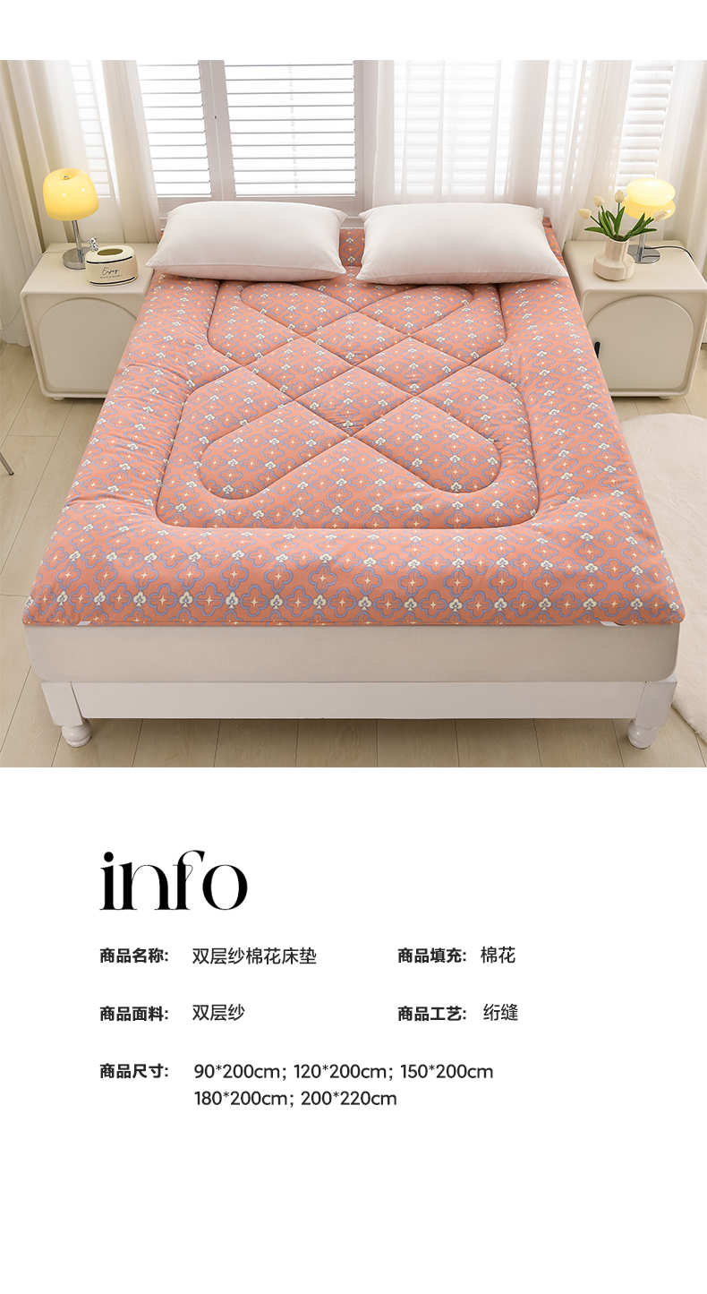 当前位置: 91家纺网 > 商品网购 > 床垫/床褥 > 普通床垫 > 富威堡家纺 2025新款双层纱棉花床垫 琉金岁月(红豆沙)