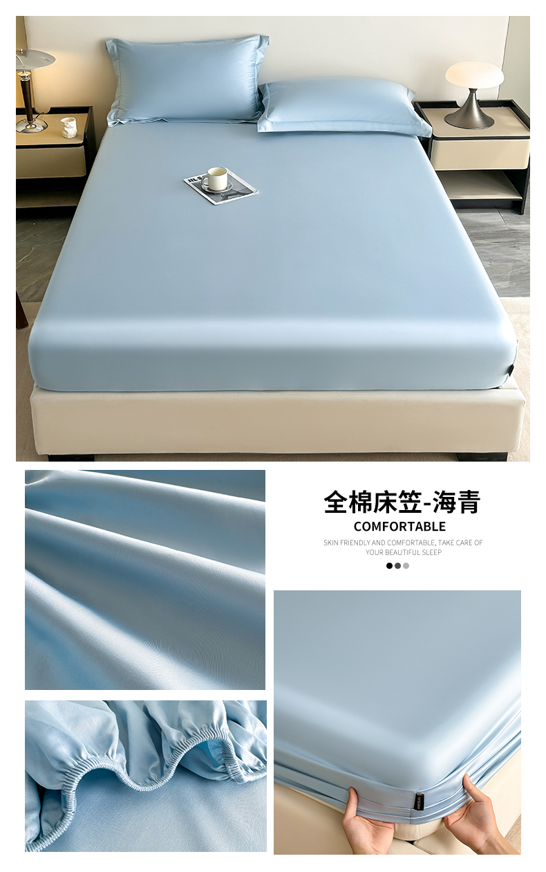 慕色家纺 2024新款纯色13376全棉床笠系列 全棉床笠-海青