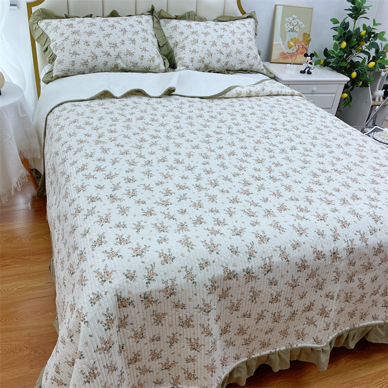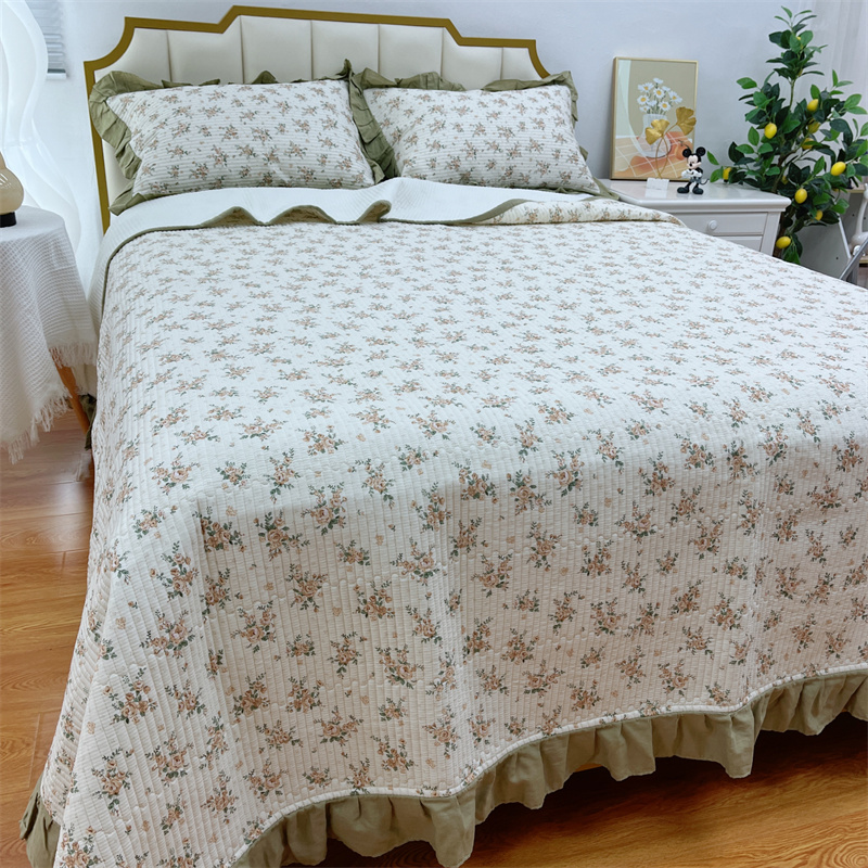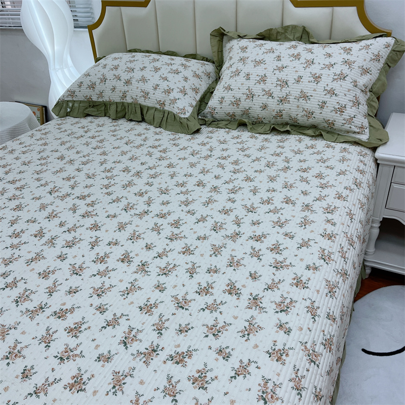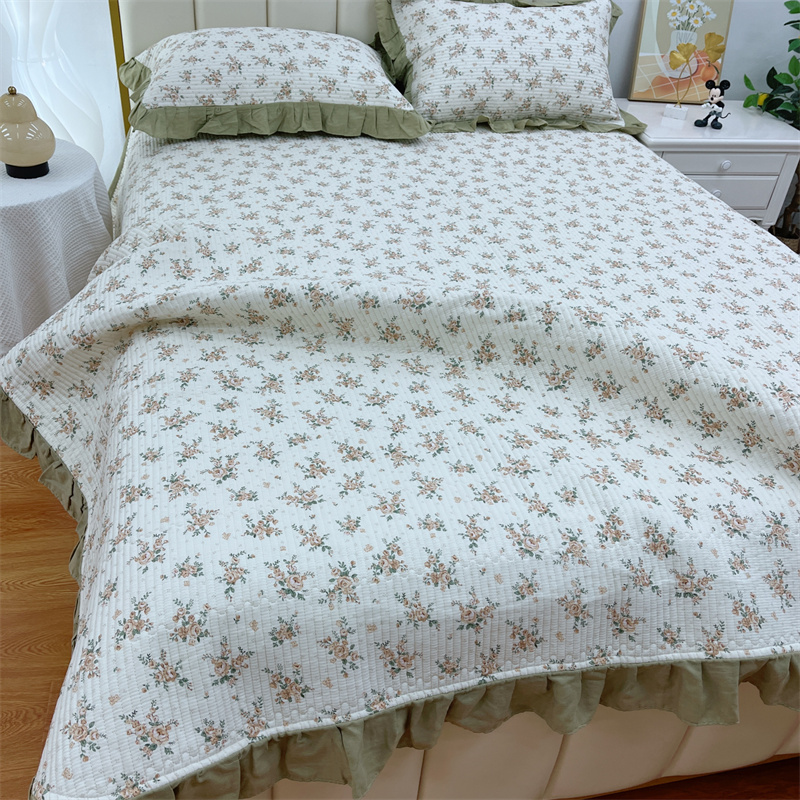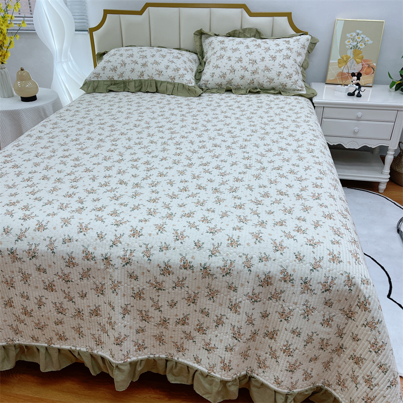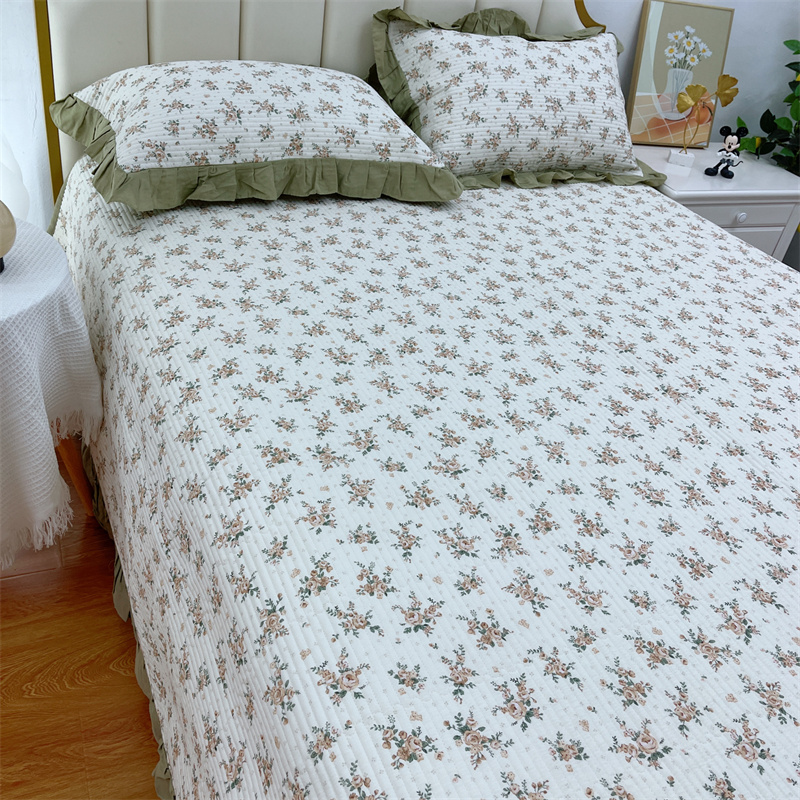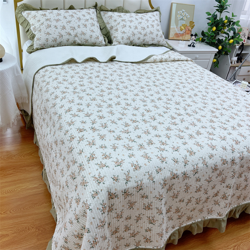 商品名称:暖居 2024新款A类双层纱全棉床盖三件套防滑不跑床绗缝加厚纯棉床单 花枝叶