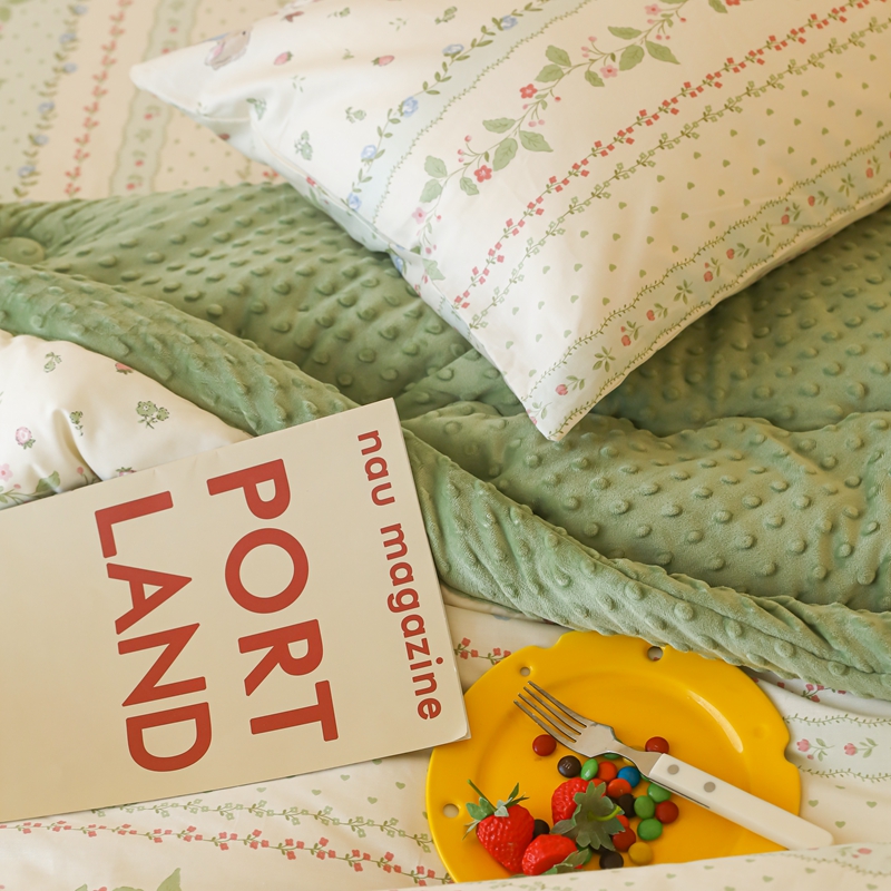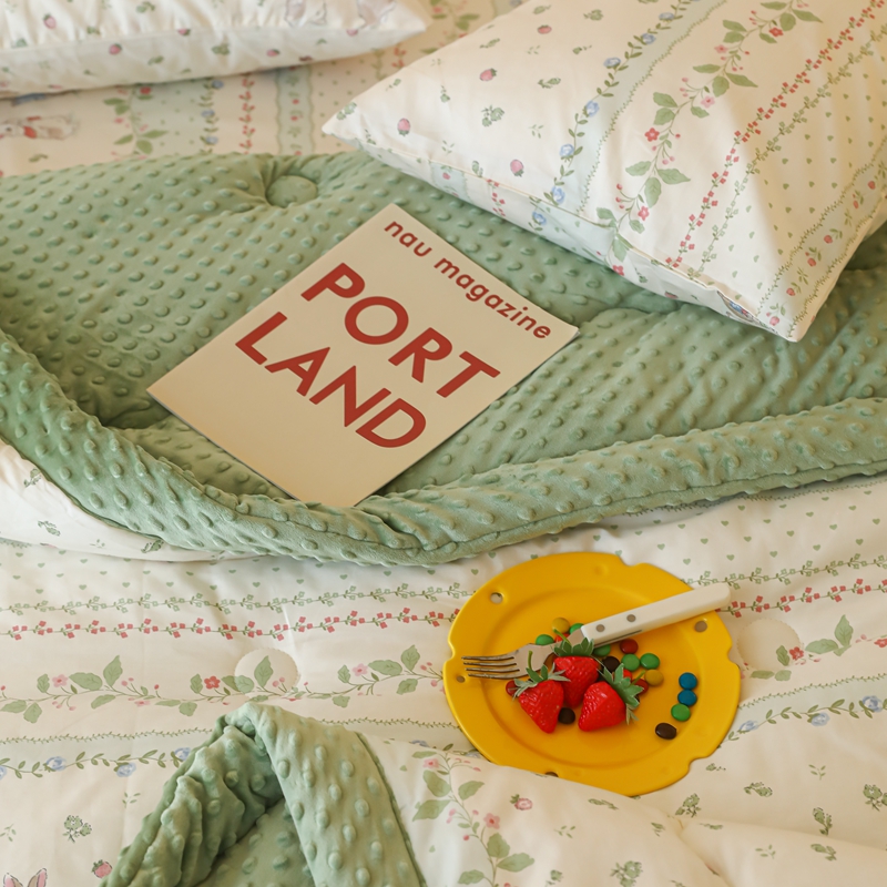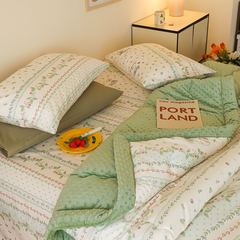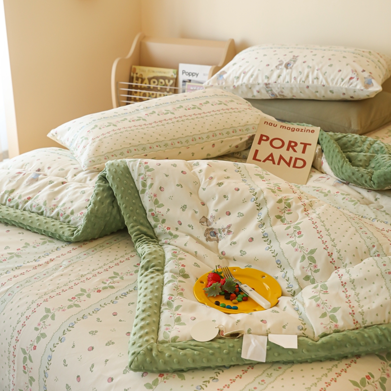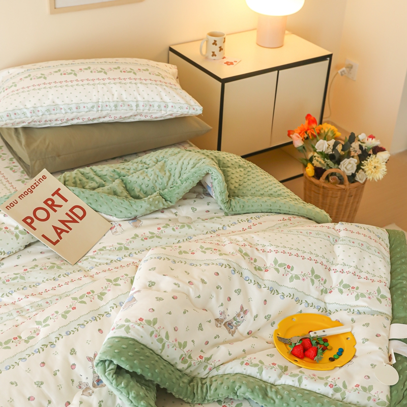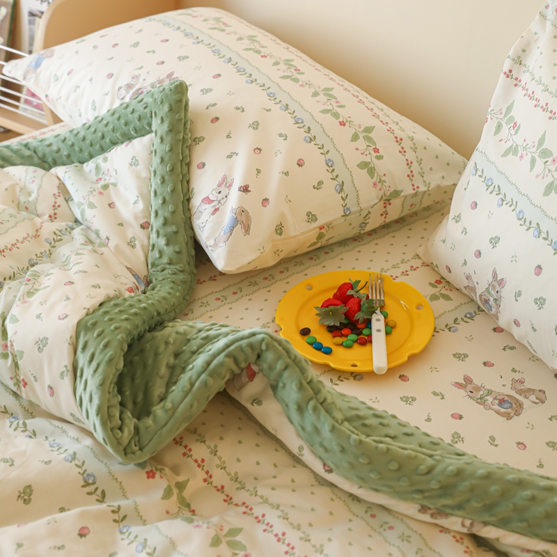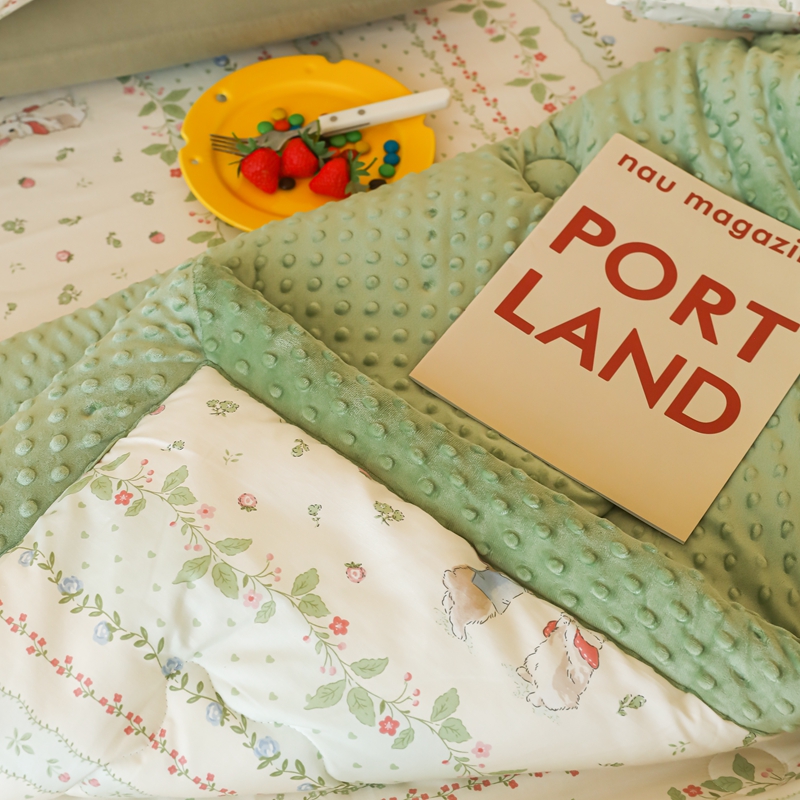 星期八 2024新款复古碎花全棉豆豆被 绿茵小兔