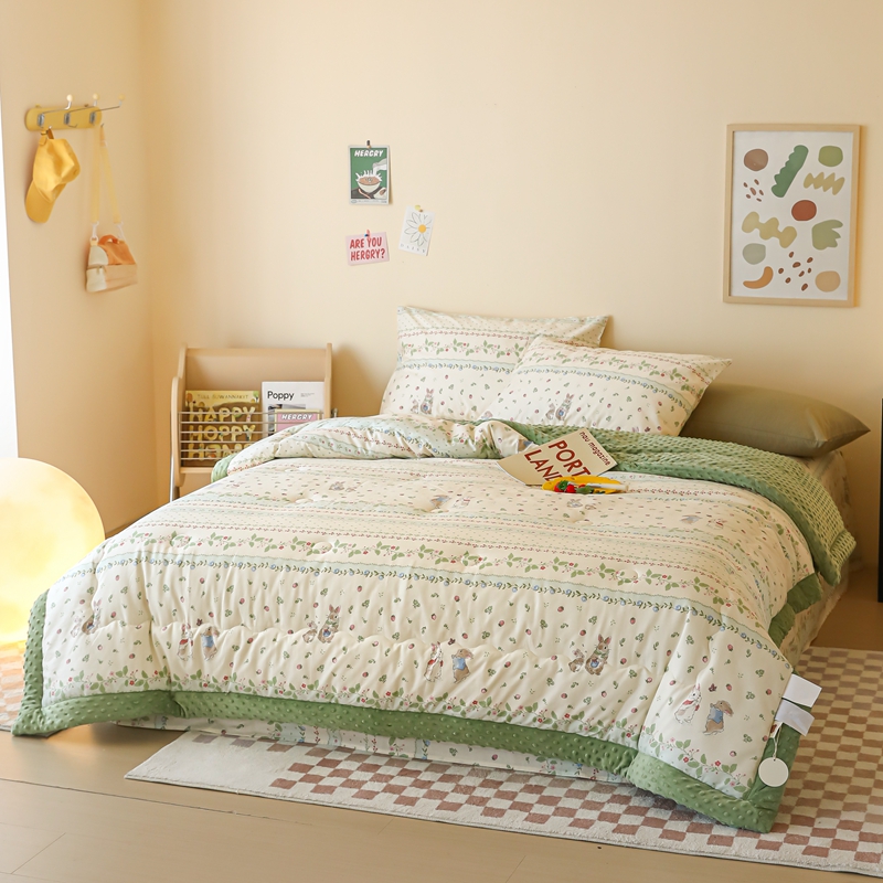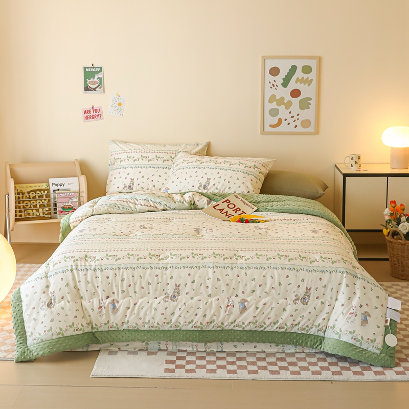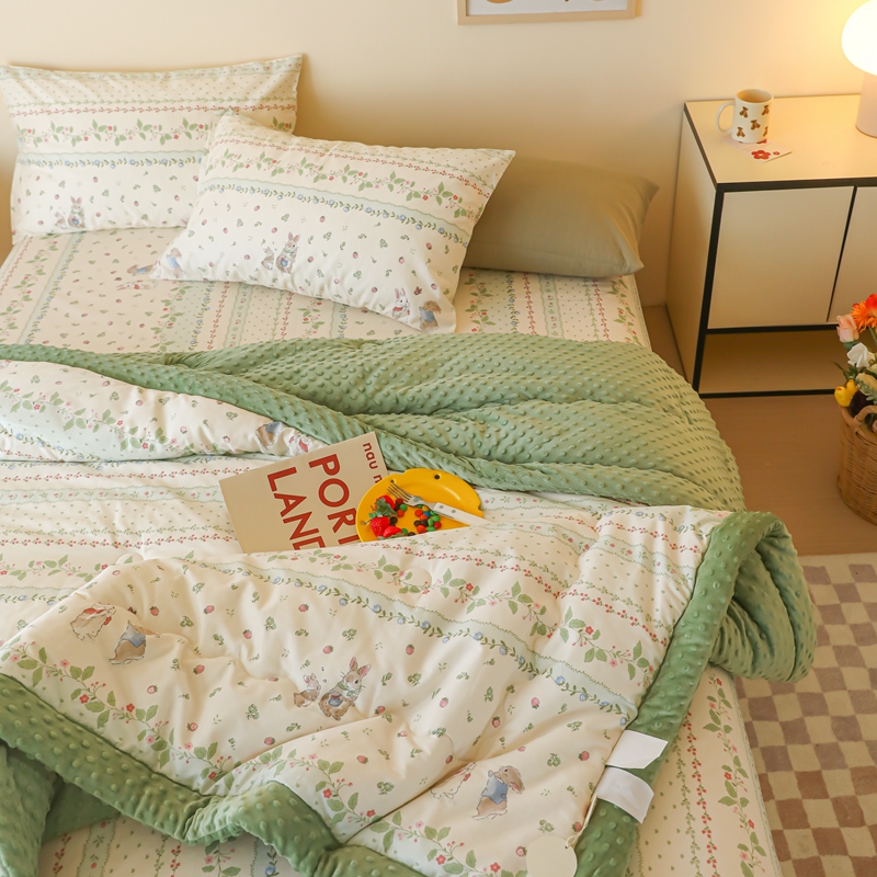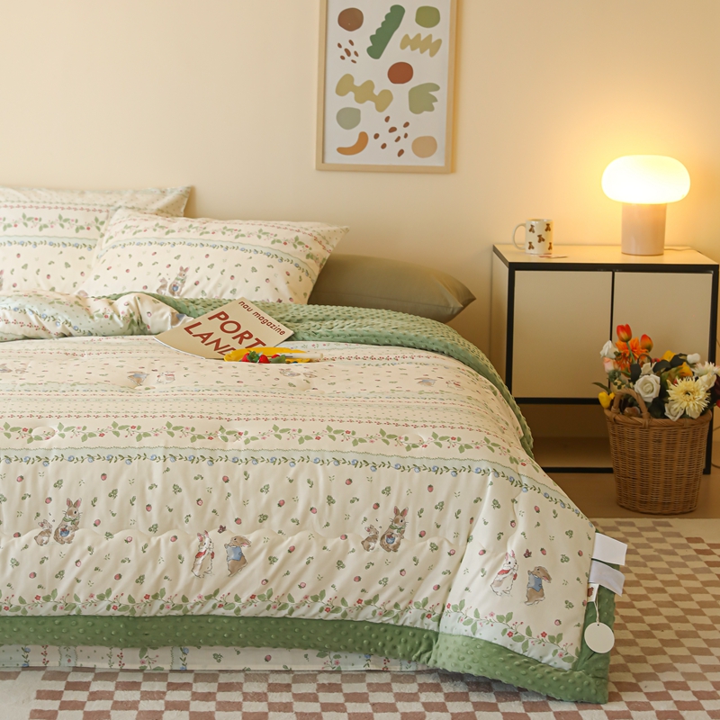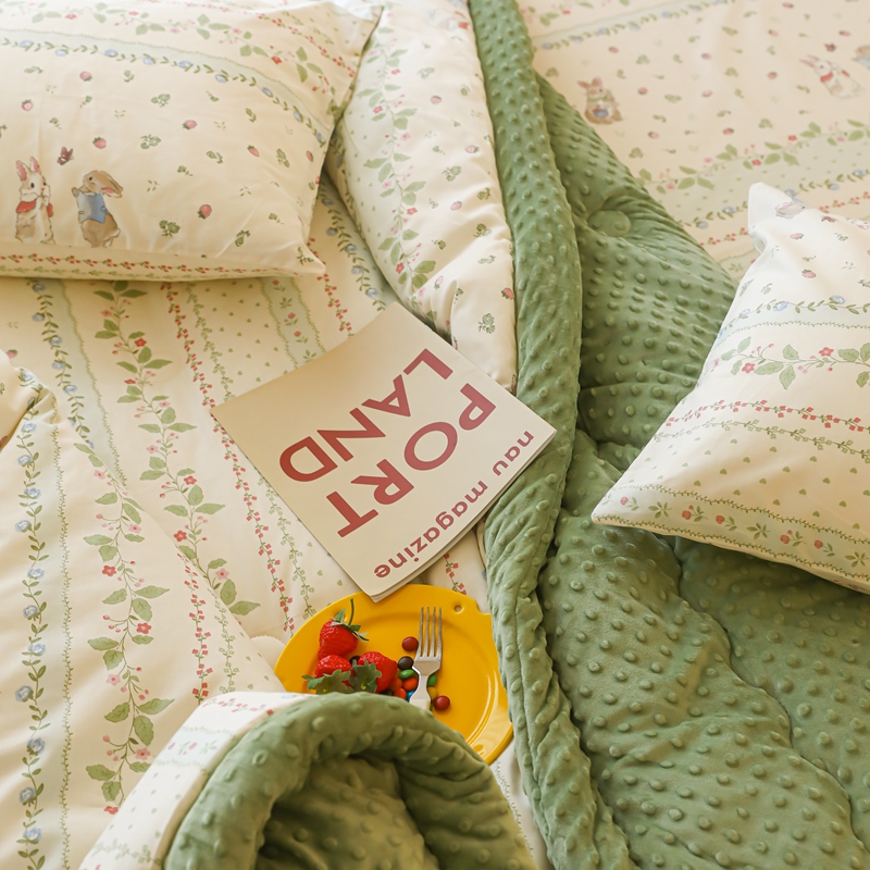 商品名称:星期八 2024新款复古碎花全棉豆豆被 绿茵小兔