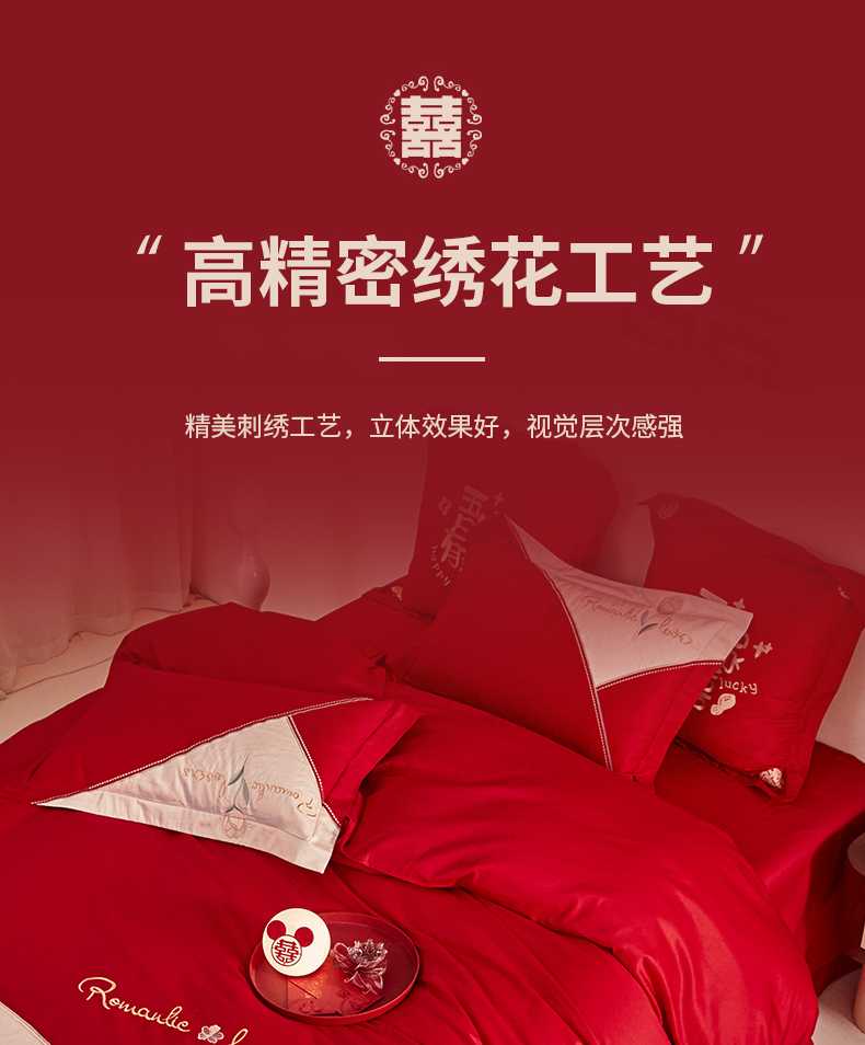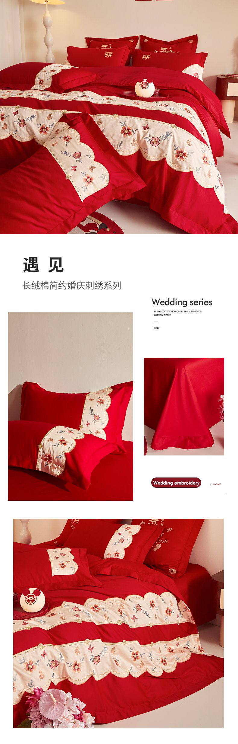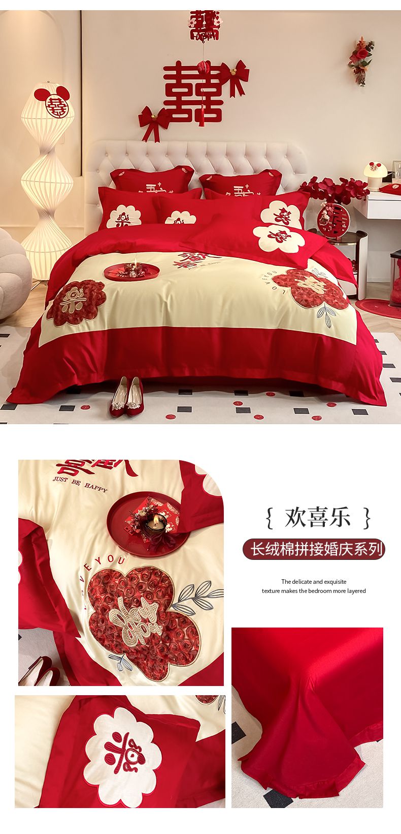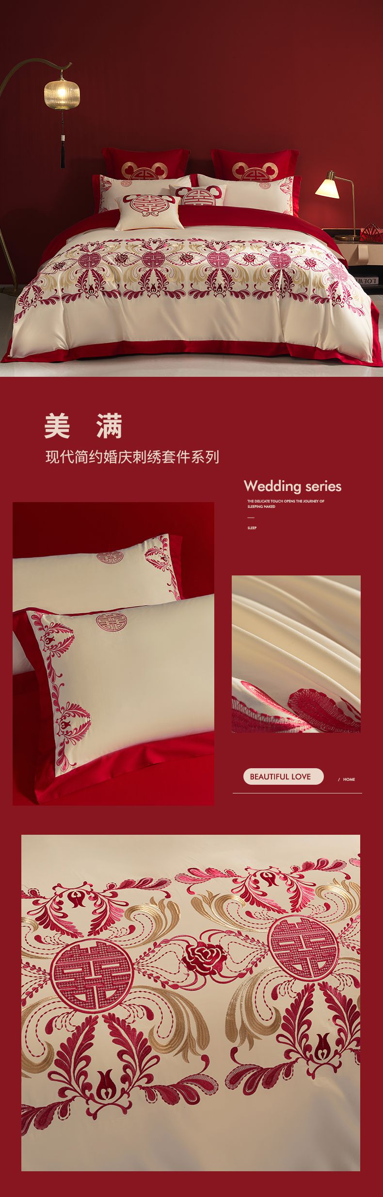 当前位置: 91家纺网 > 商品网购 > 床品套件 > 四件套 > 婚庆四件套 > 玉雅家纺 2025新款60支长绒棉时尚拼色浮雕刺绣婚庆四件套 浪漫