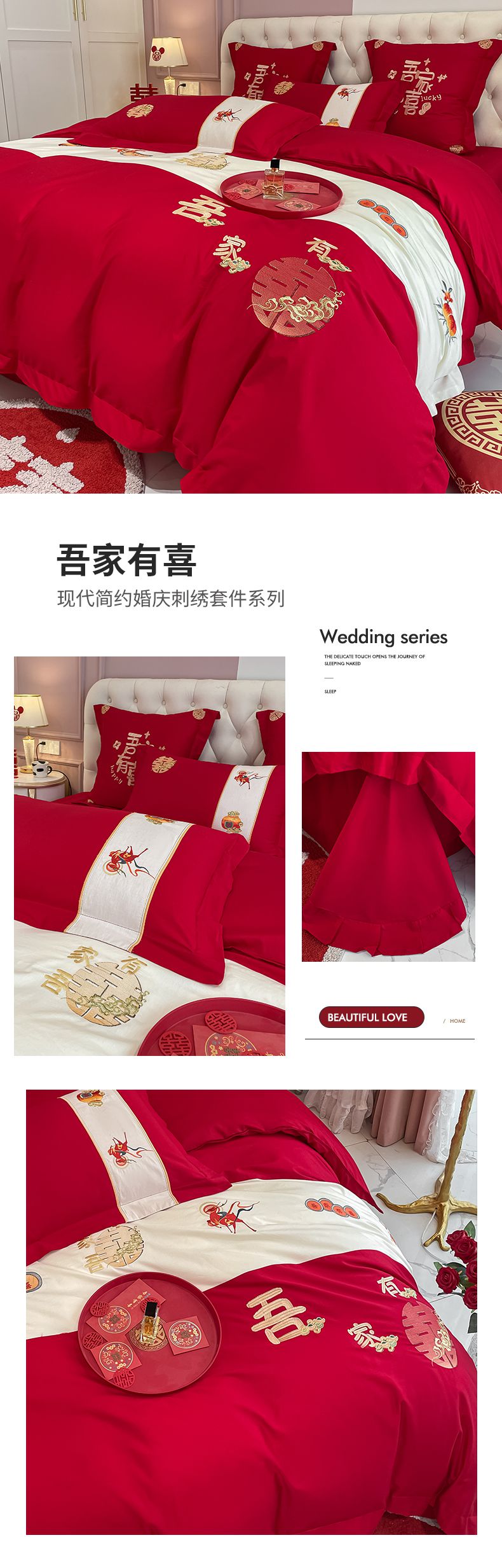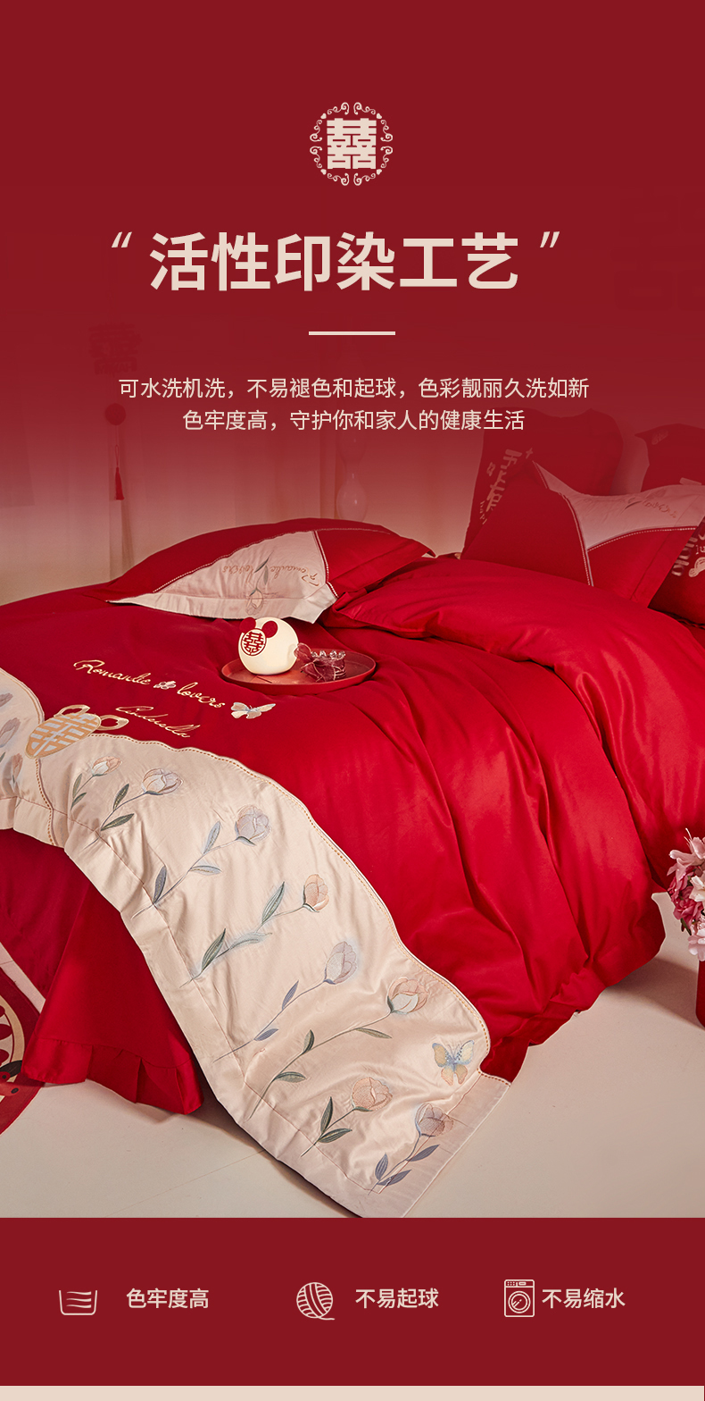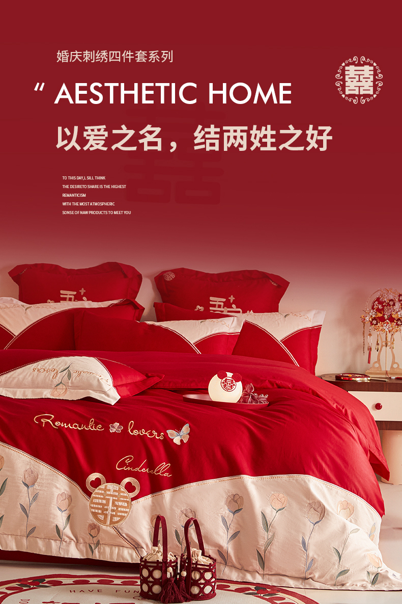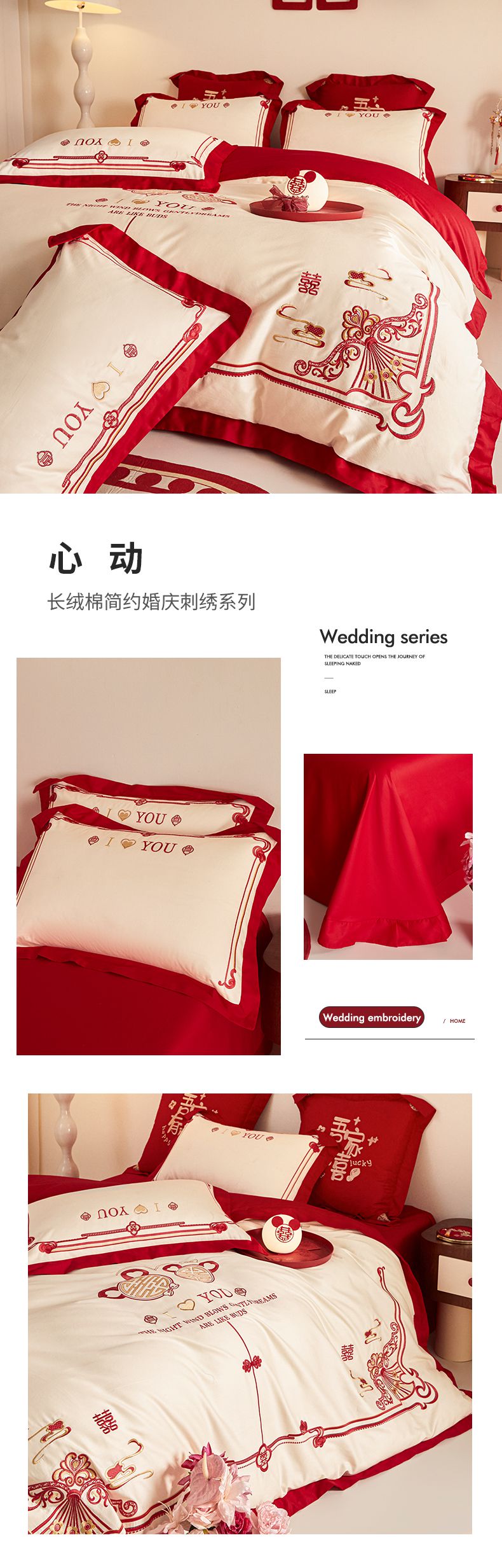 当前位置: 91家纺网 > 商品网购 > 床品套件 > 四件套 > 婚庆四件套 > 玉雅家纺 2025新款60支长绒棉时尚拼色浮雕刺绣婚庆四件套 浪漫