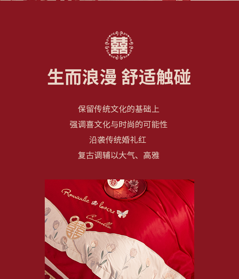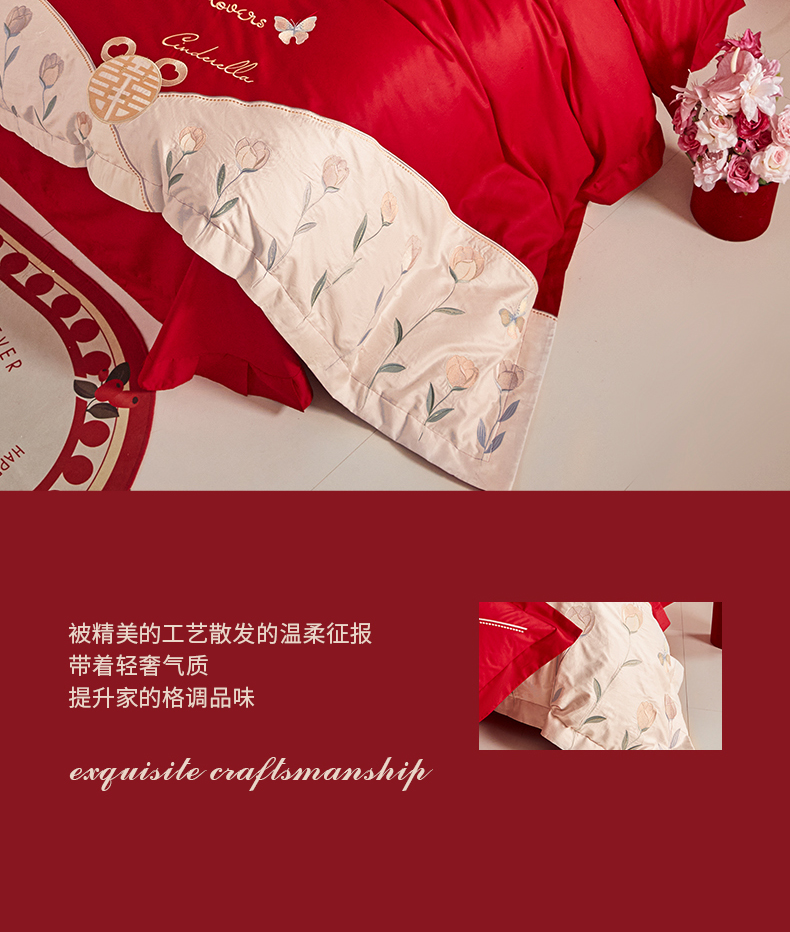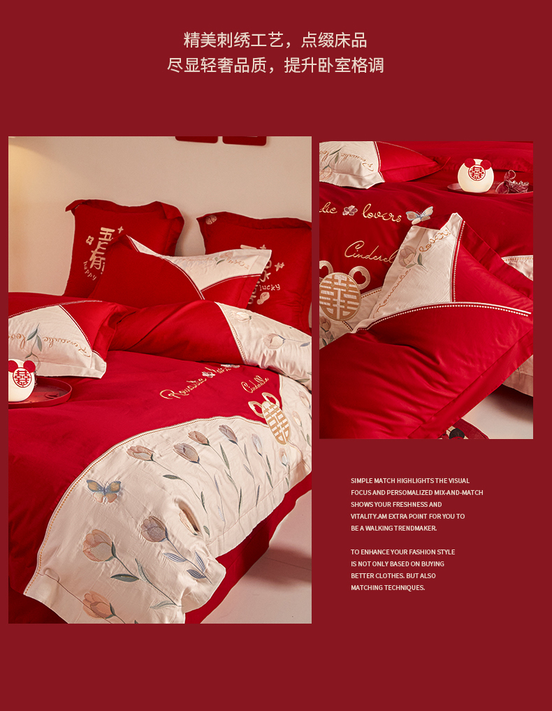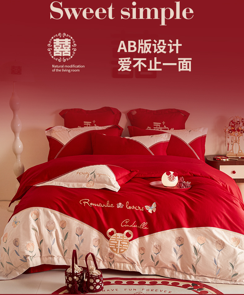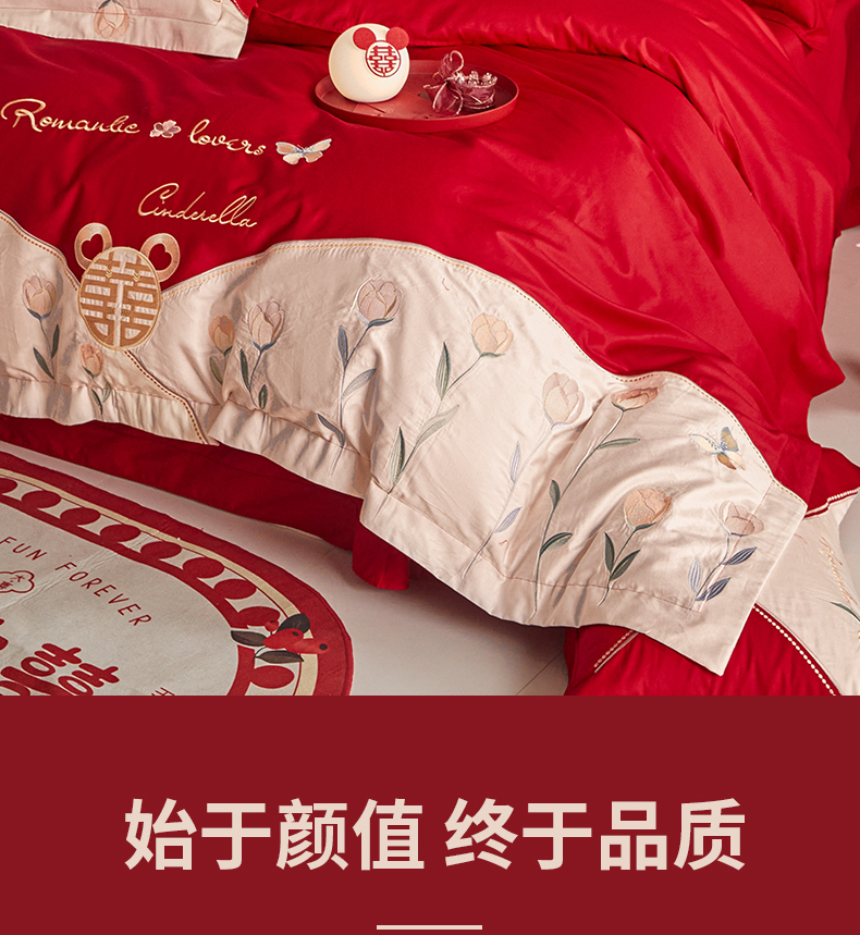 当前位置: 91家纺网 > 商品网购 > 床品套件 > 四件套 > 婚庆四件套 > 玉雅家纺 2025新款60支长绒棉时尚拼色浮雕刺绣婚庆四件套 浪漫