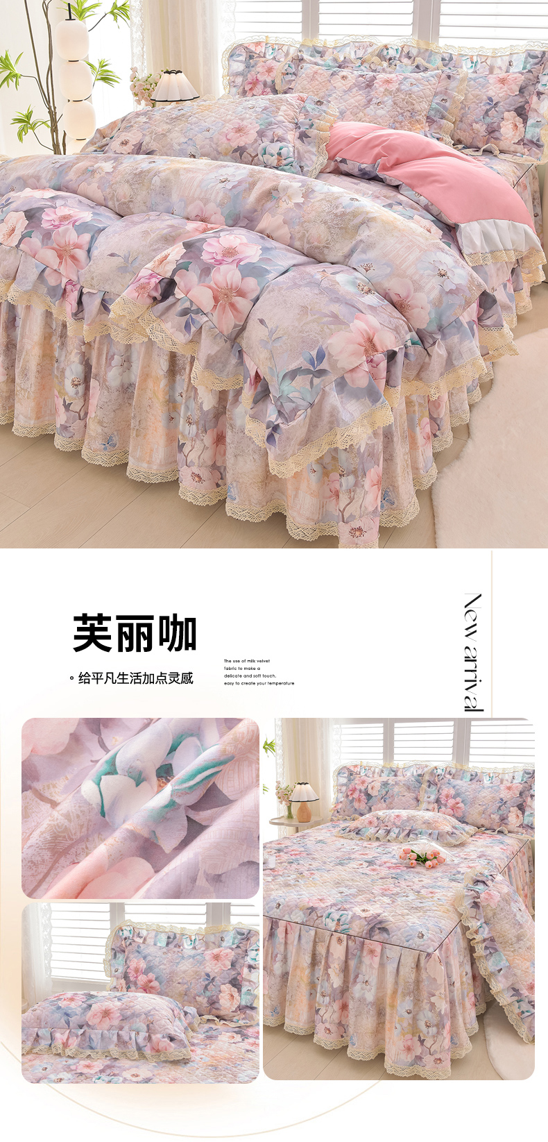 当前位置: 91家纺网 > 商品网购 > 床品套件 > 四件套 > 其它四件套 > 家之硕家纺 2024秋冬新款鹿锦棉夹棉床裙印花四件套 芙丽咖