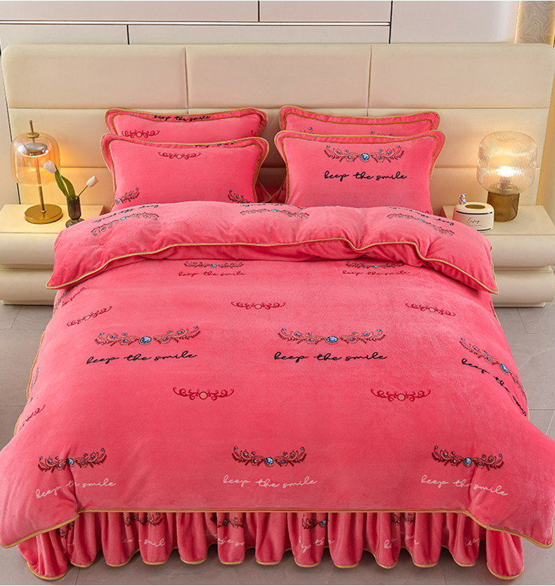 (总)绒品壹家 2025新款电商直播爆款高克重7斤牛奶绒金貂绒印花床裙款三件套四件套,爱心-绿,繁花似锦,粉色心情,福蝶纷菲,高雅人生,国色天香,鸿运当头,花的海洋,花落倾城,花颜,灰小格,简约生活,欧曼情调,轻奢艾玛,轻奢格调,喜结良缘,薰衣草,郁金香,爱心剑