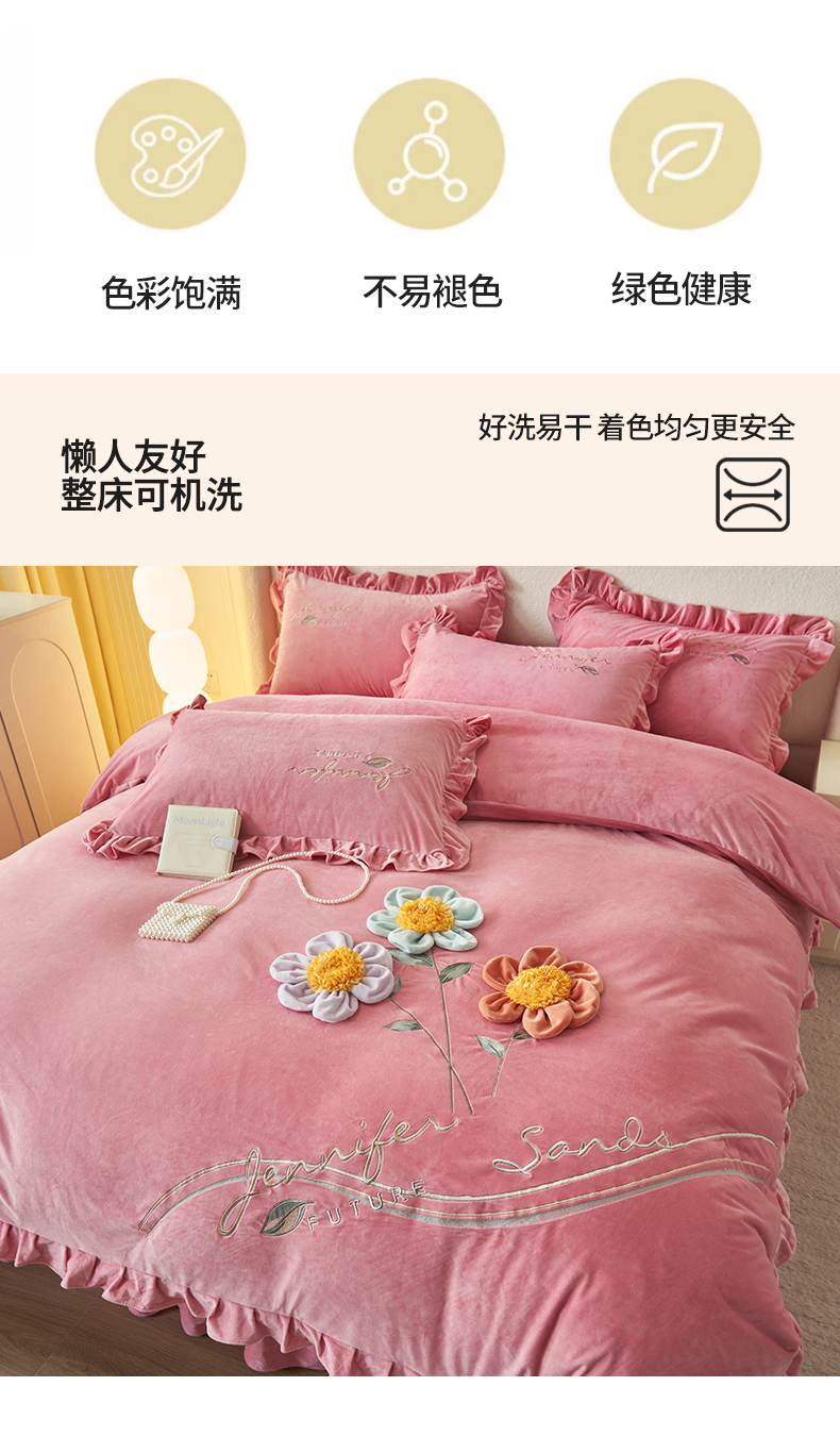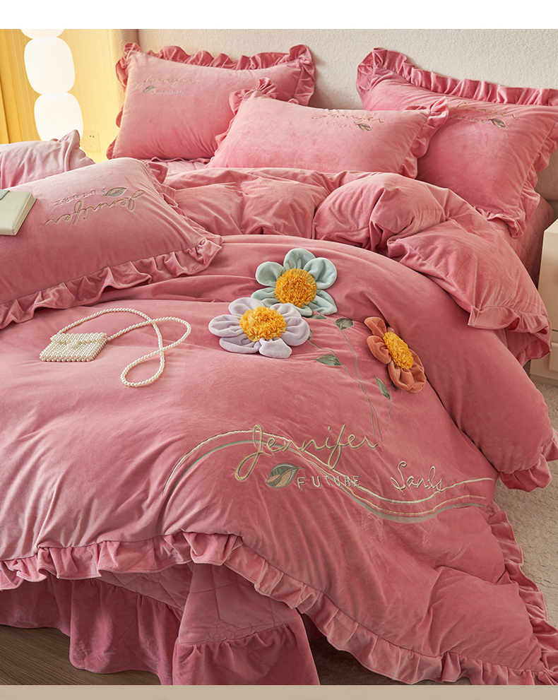 (总)恒爱 2022秋冬水晶绒翩翩花舞夹棉床裙四件套,大红色,豆沙红,橄榄绿,公主粉,桔色,咖啡色,孔雀绿,拉菲红,罗兰紫,玫红色,美人玉,米白色,米驼色,抹茶绿,浅灰色,紫色