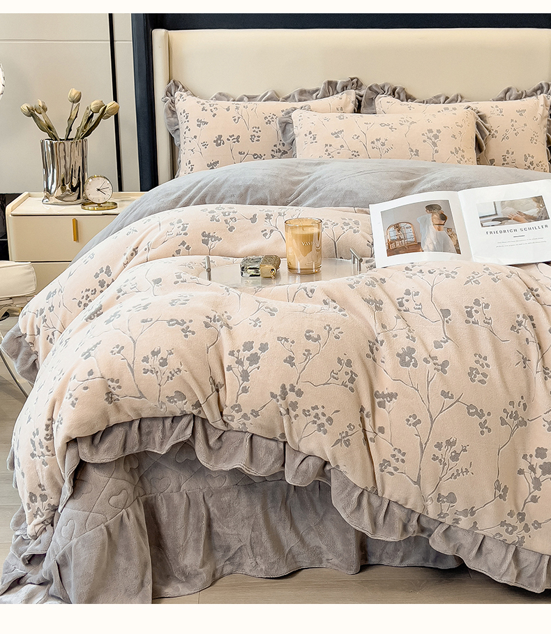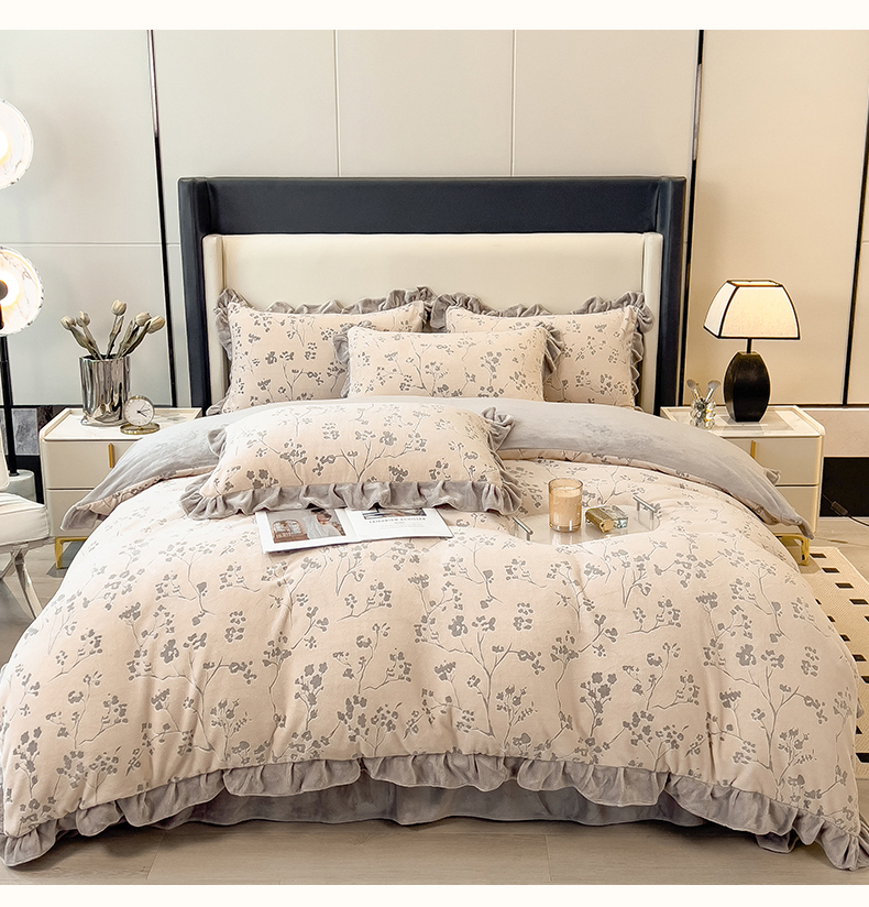 2024新品A类牛奶绒韩版雕花四件套 腊梅-浅咖
