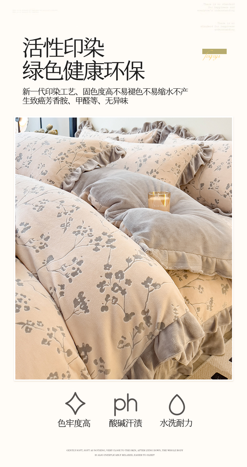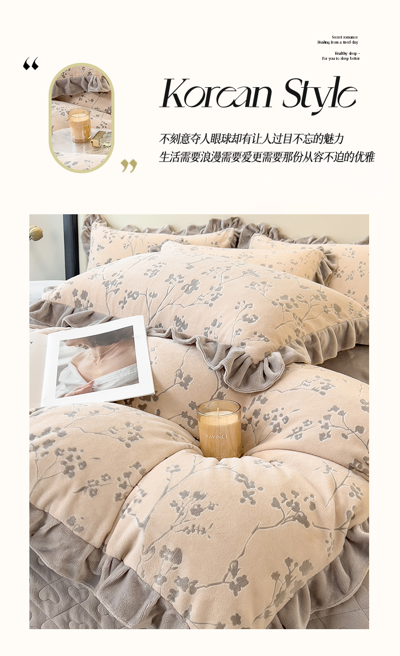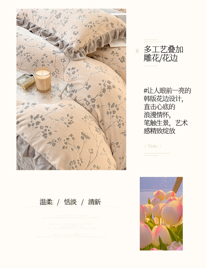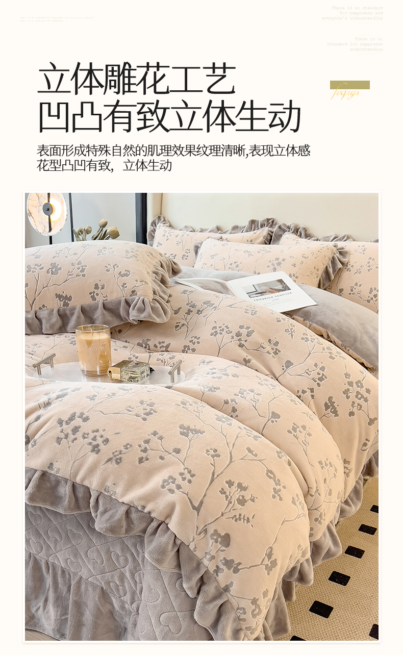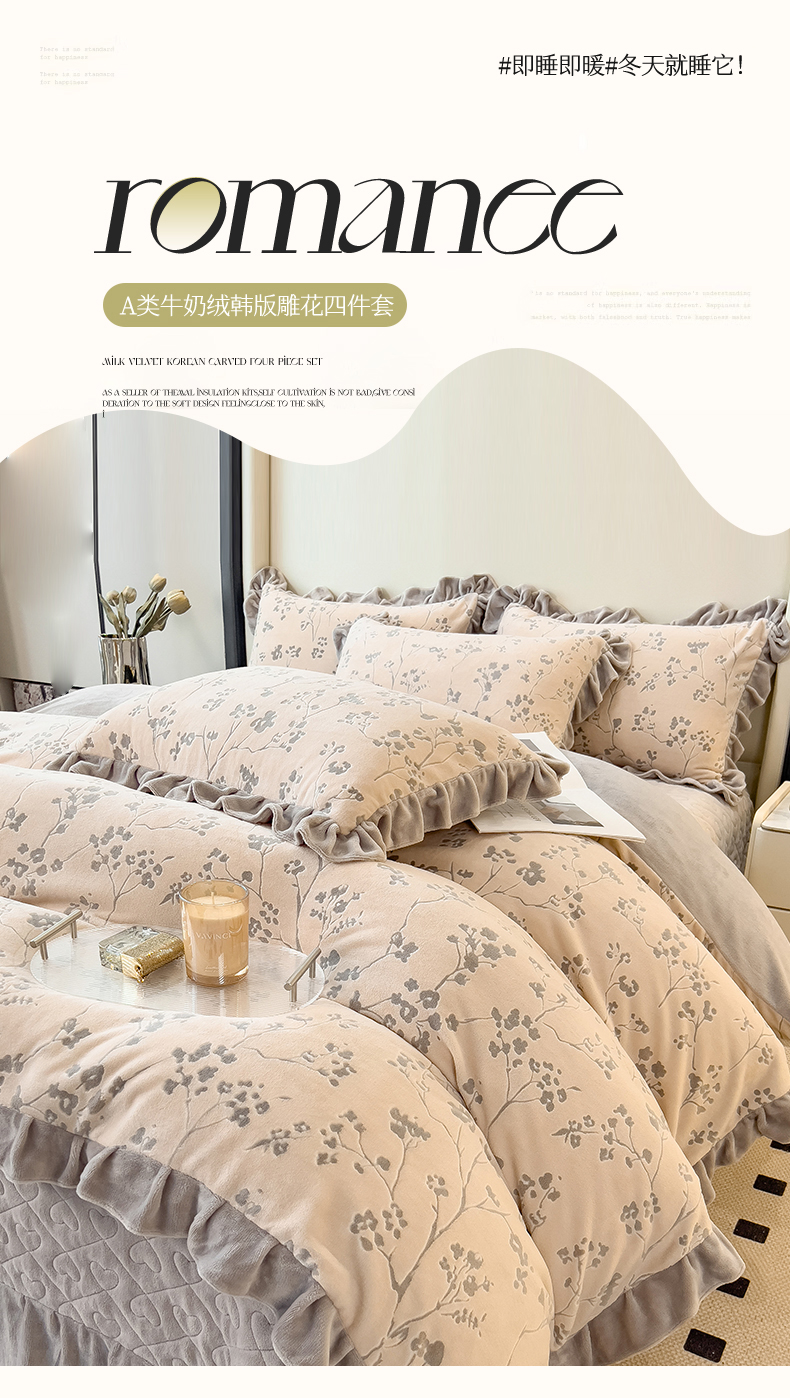 商品名称:2024新品A类牛奶绒韩版雕花四件套 腊梅-浅咖