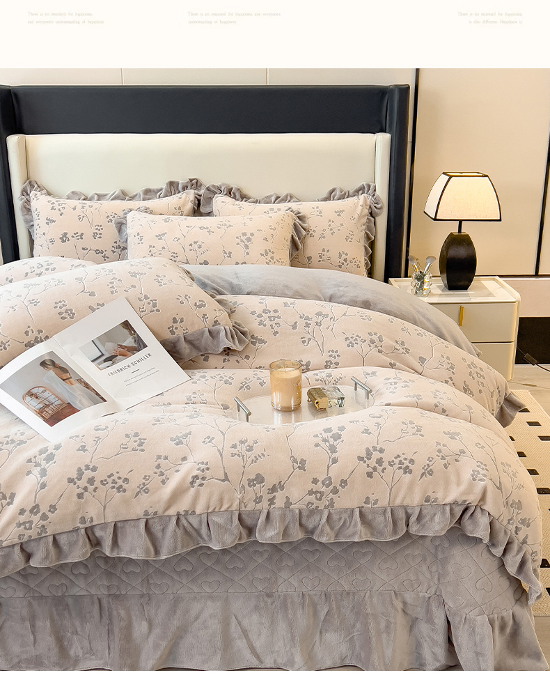 (总)恒爱 2022秋冬水晶绒翩翩花舞夹棉床裙四件套,大红色,豆沙红,橄榄绿,公主粉,桔色,咖啡色,孔雀绿,拉菲红,罗兰紫,玫红色,美人玉,米白色,米驼色,抹茶绿,浅灰色,紫色