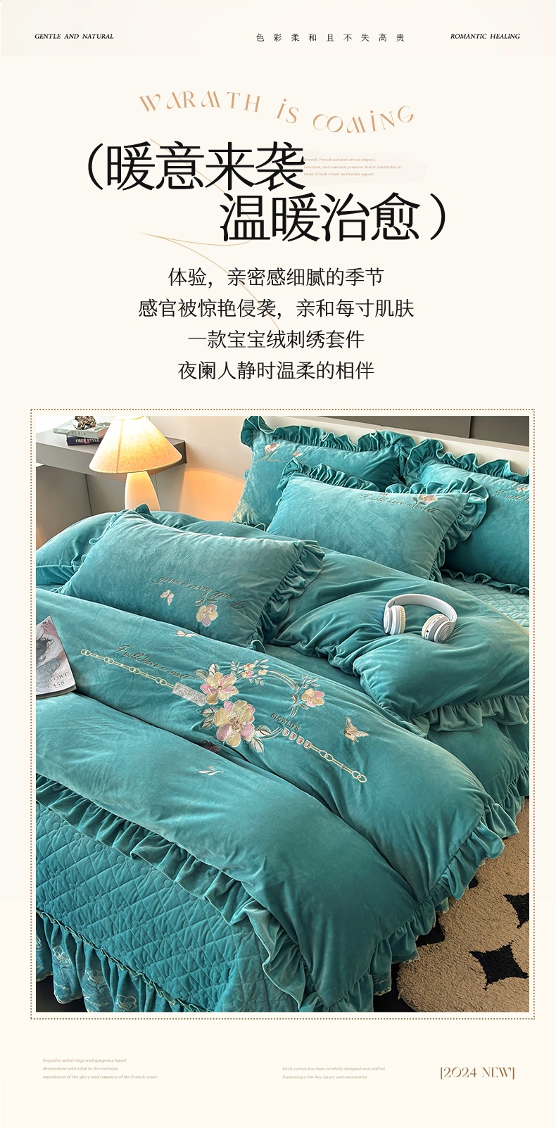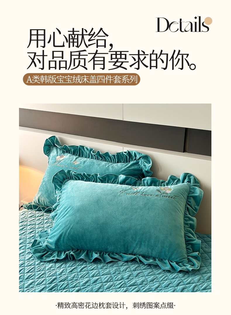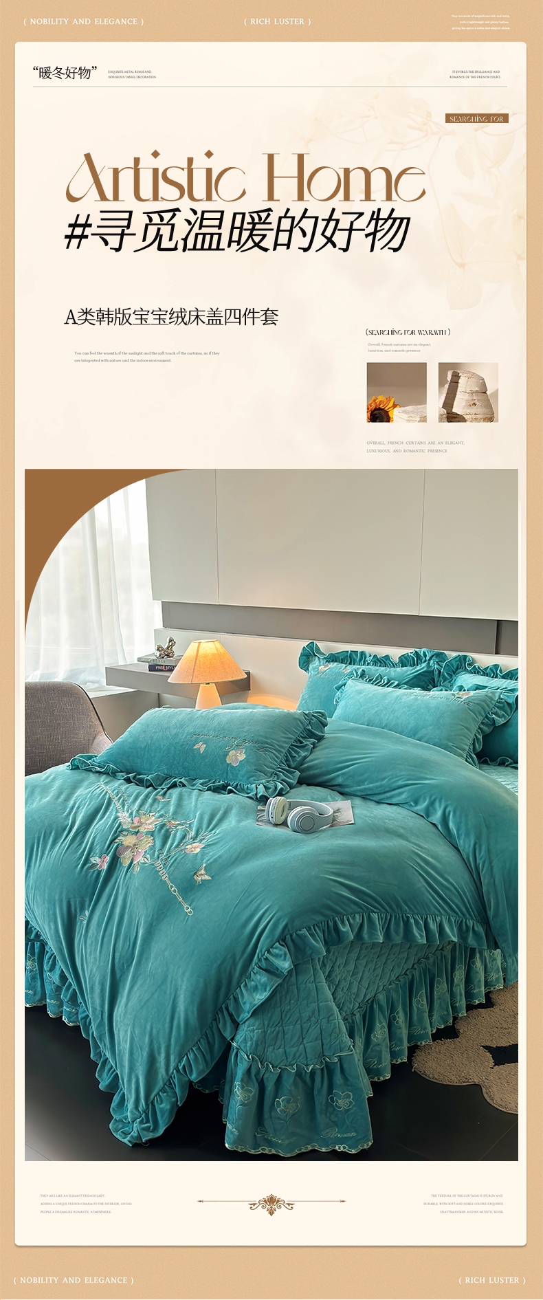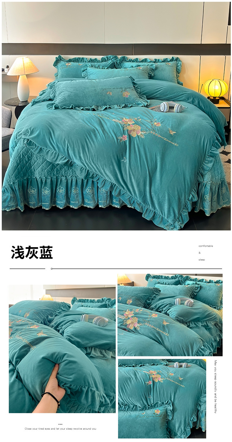 当前位置: 91家纺网 > 商品网购 > 床品套件 > 四件套 > 宝宝绒四件套 > 2024新品A类依恋宝宝绒韩版四件套 浅灰蓝