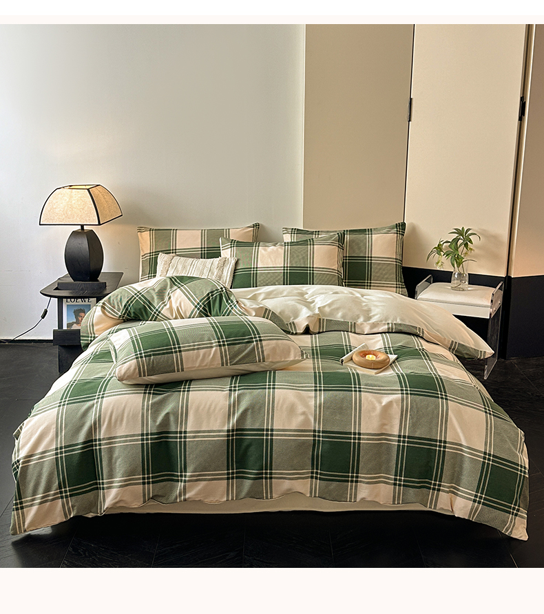(总)雅居纺家纺 2026新款全棉色织水洗棉贝壳边四件套,贝壳边-豆沙格,贝壳边-豆沙密条,贝壳边-灰小格,贝壳边-卡其密条,贝壳边-浅灰密条,贝壳边-深灰密条,贝壳边-苏桃红格,贝壳边-雾蓝格