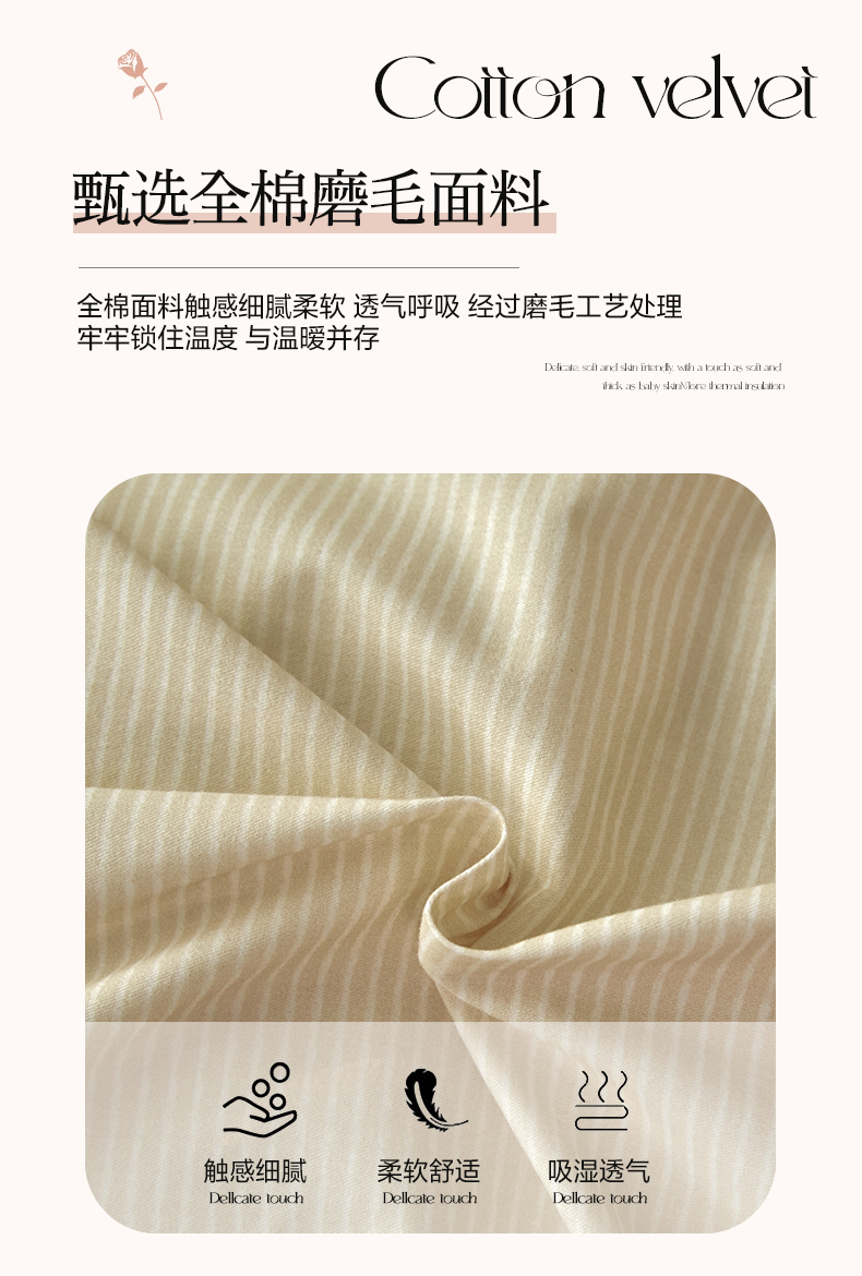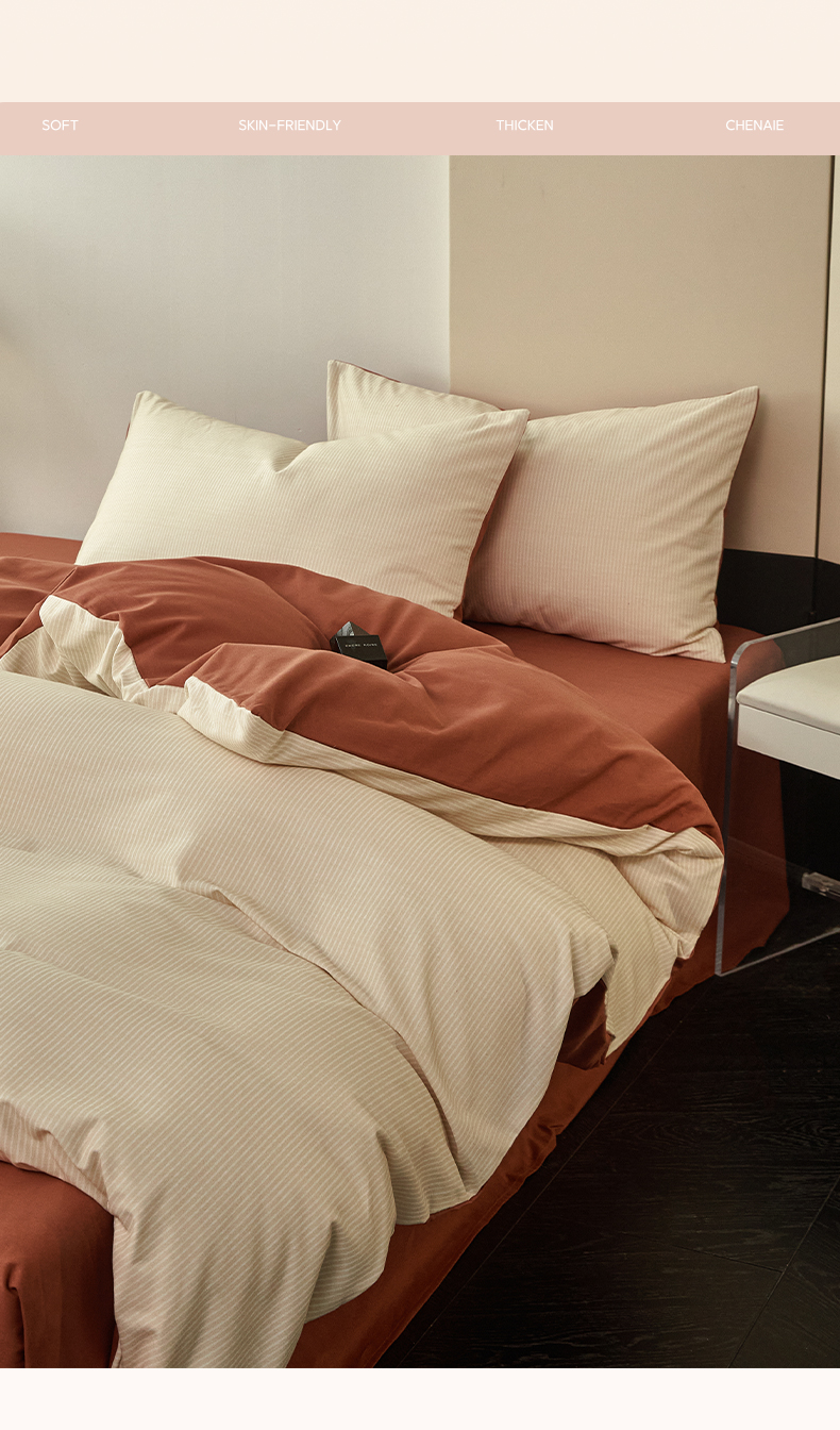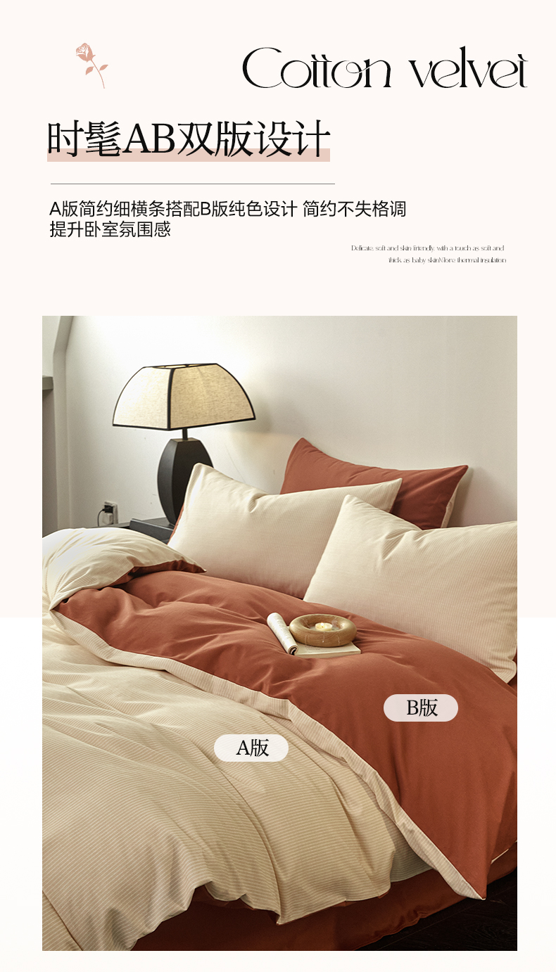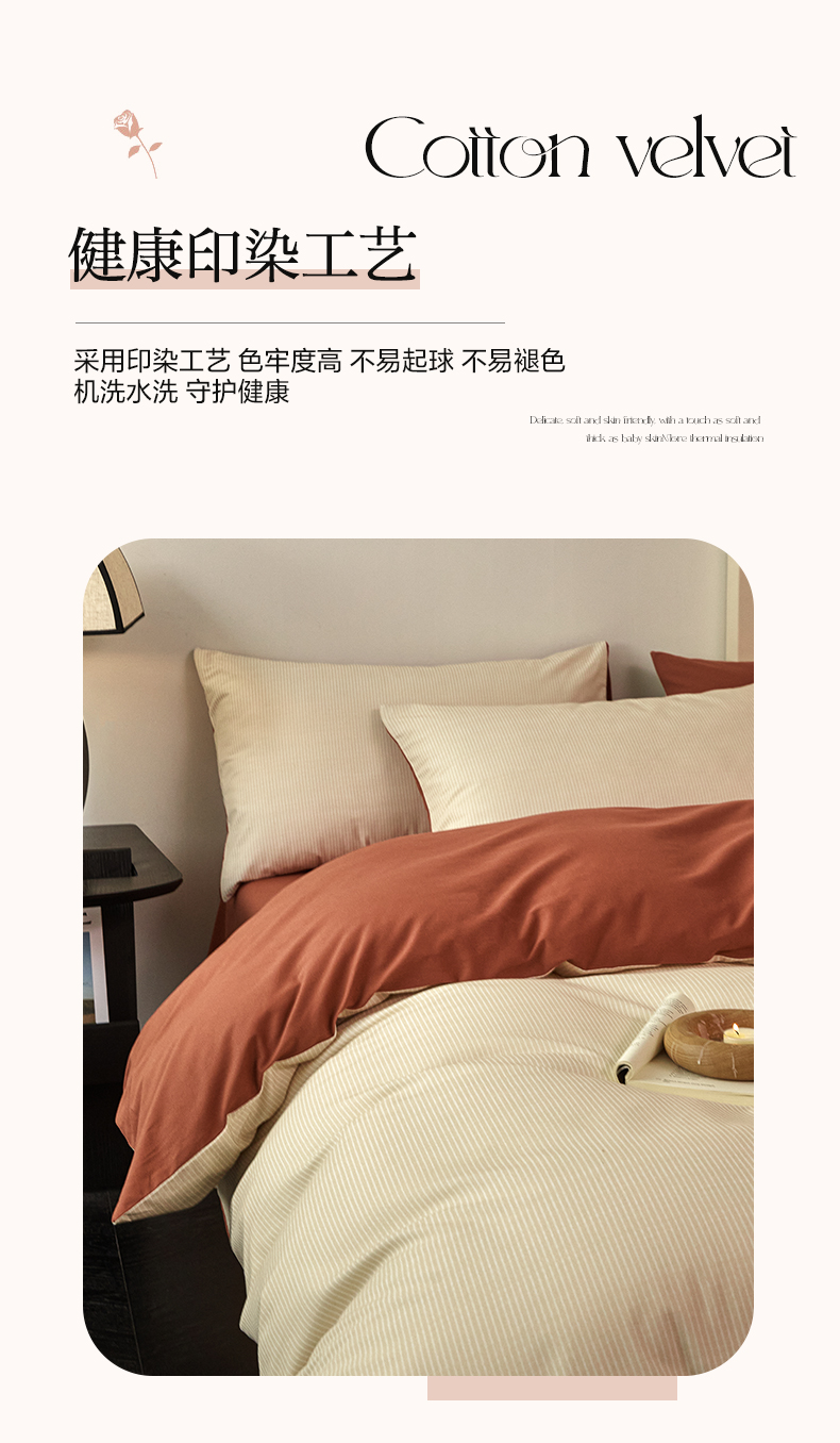 雅居纺家纺 2024新款全棉印花磨毛四件套 千宁静-焦糖条
