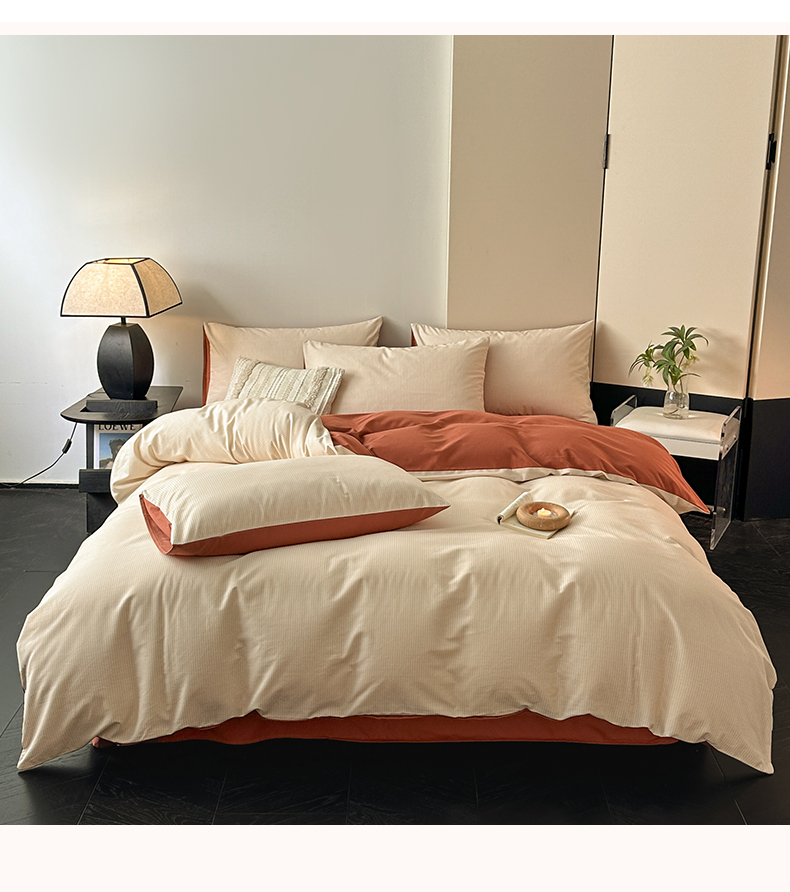 (总)雅居纺家纺 2022新款全棉华夫格普通款四件套,焦糖,米驼,奶油白,柔粉,深灰,雾蓝,月灰