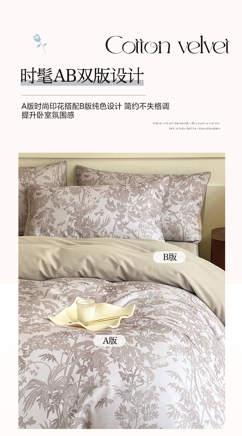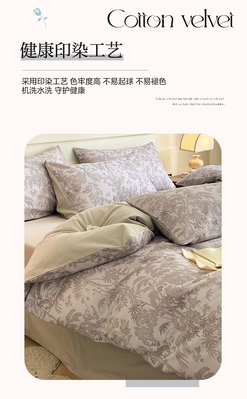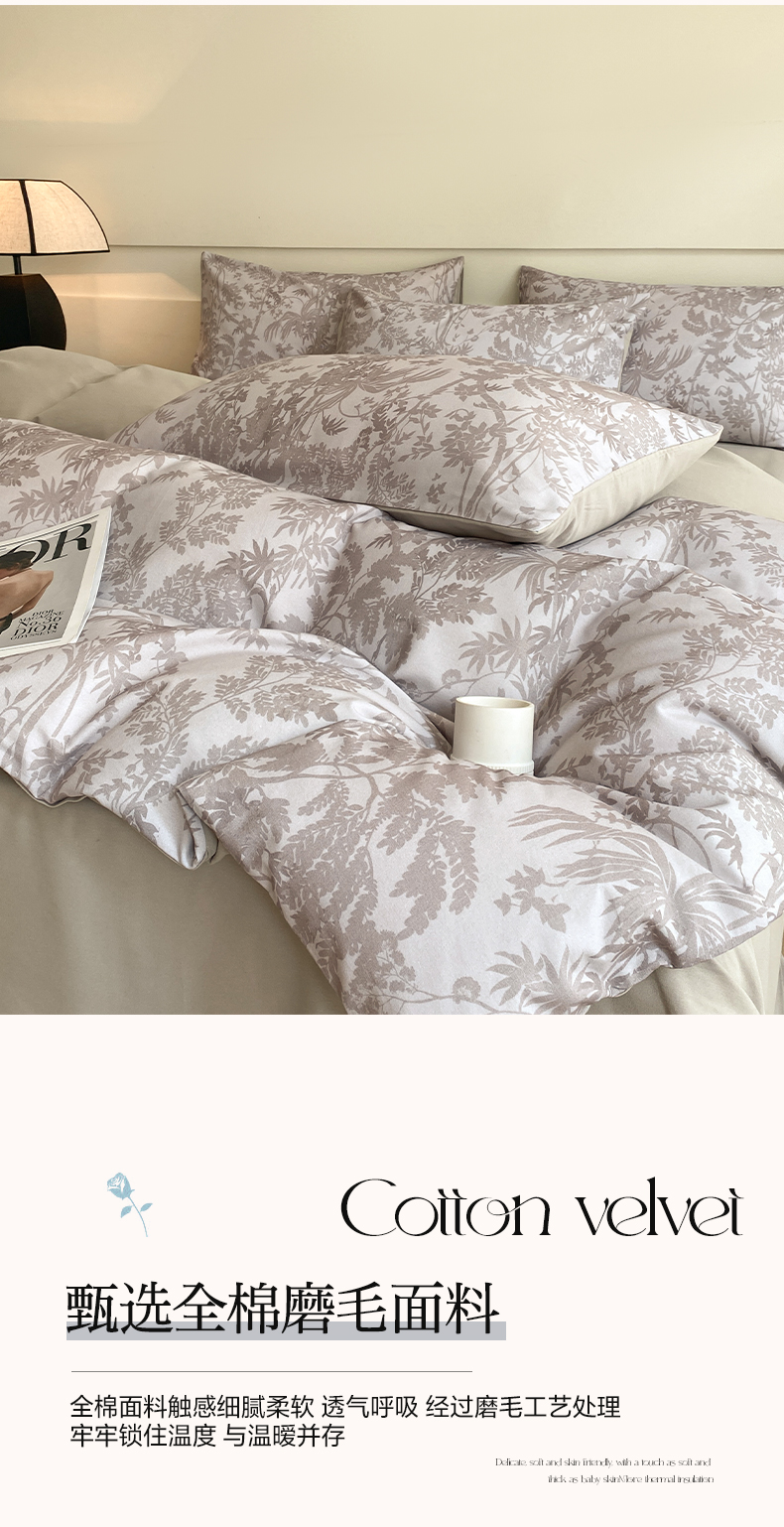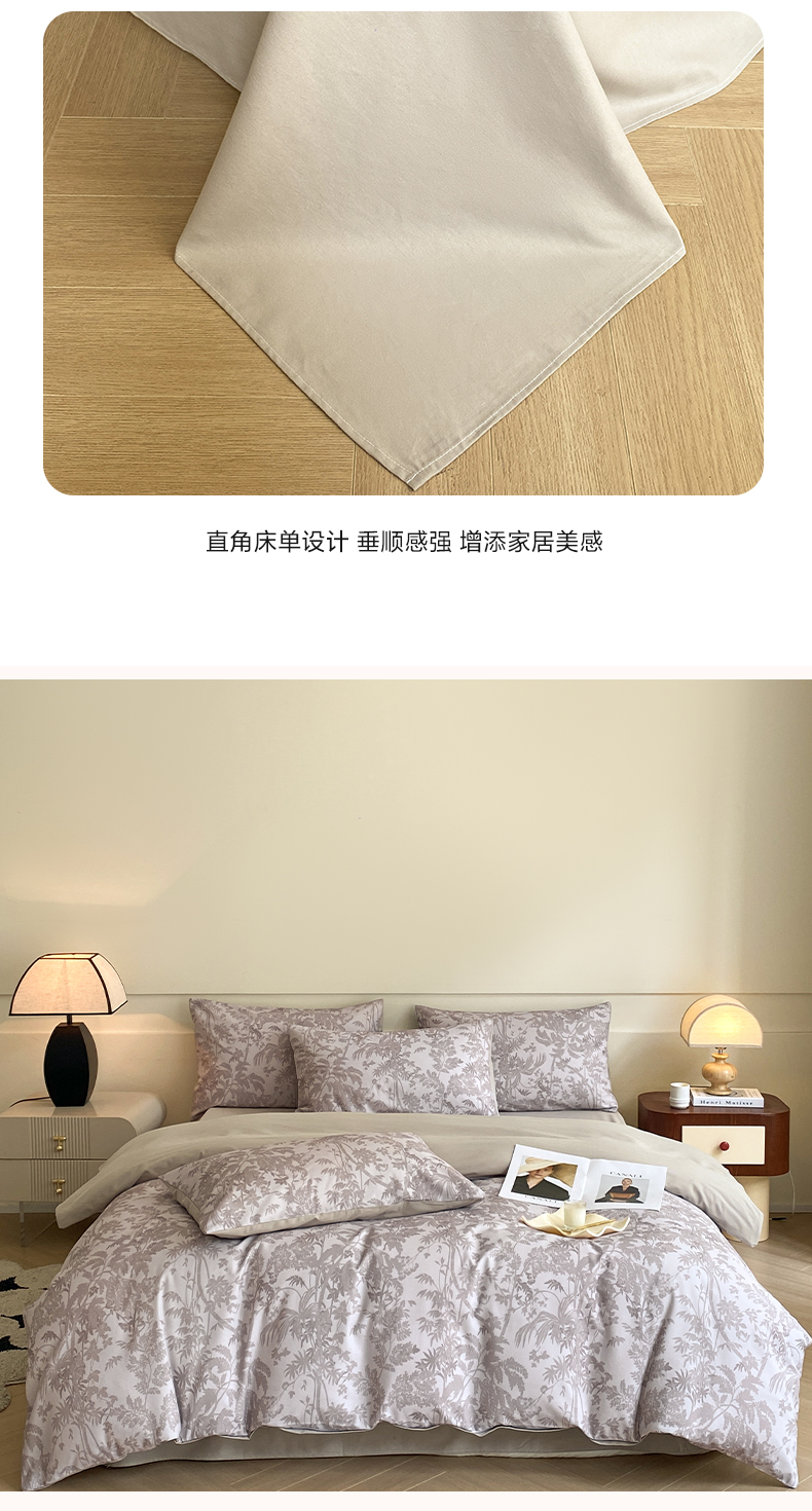 雅居纺家纺 2024新款全棉印花磨毛四件套 竹空生野