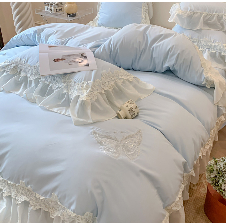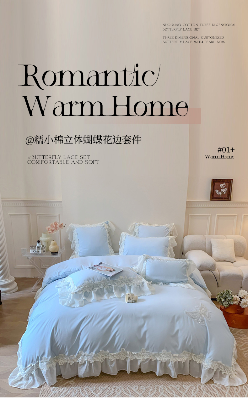 商品名称:吾欢心 2025新款糯小棉立体蝴蝶花边四件套-蝶恋花系列 蝶恋花蓝