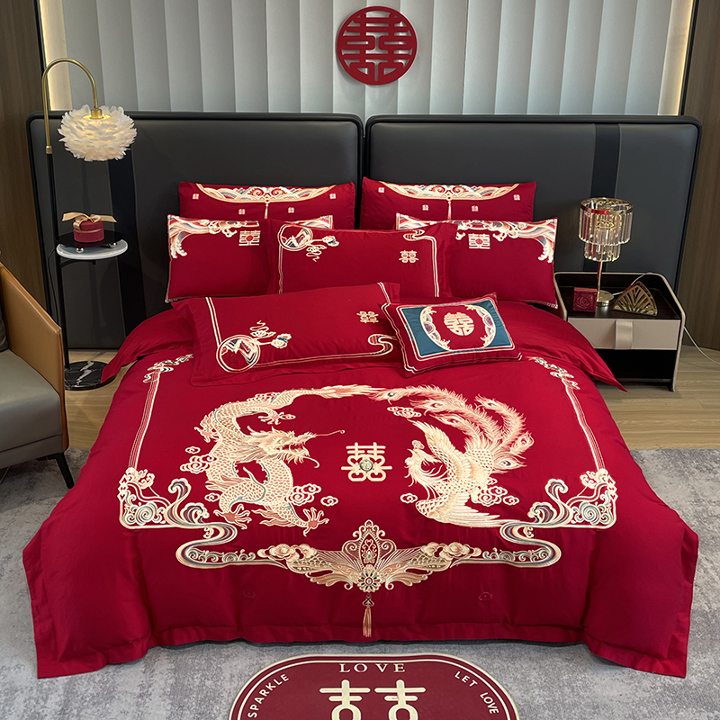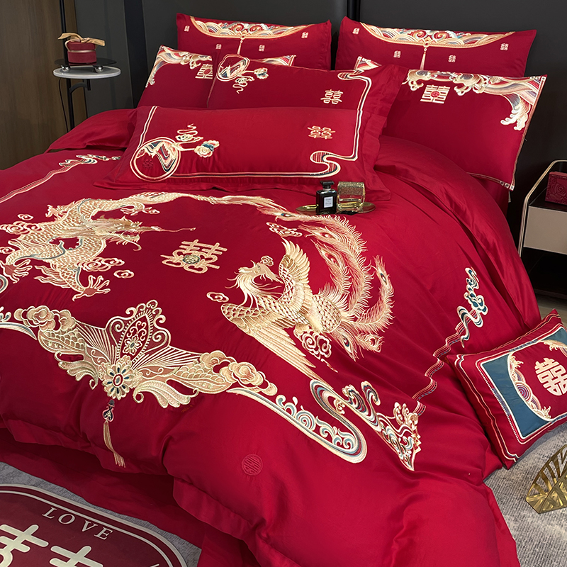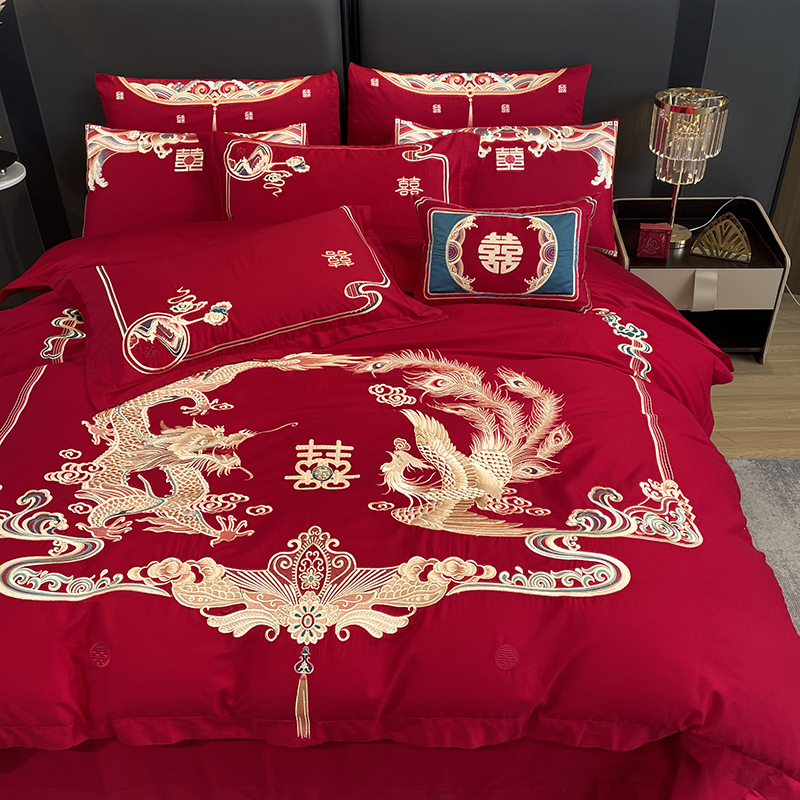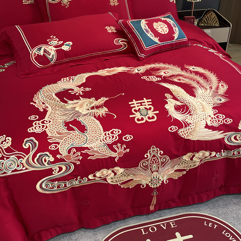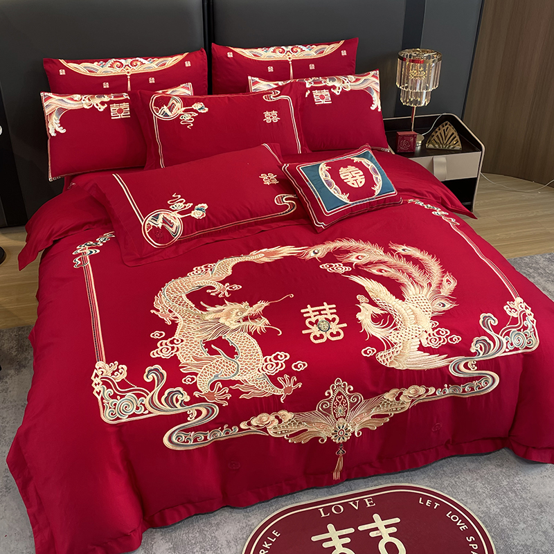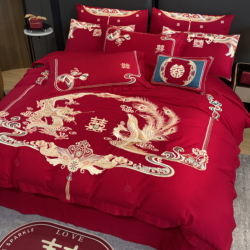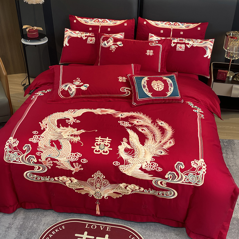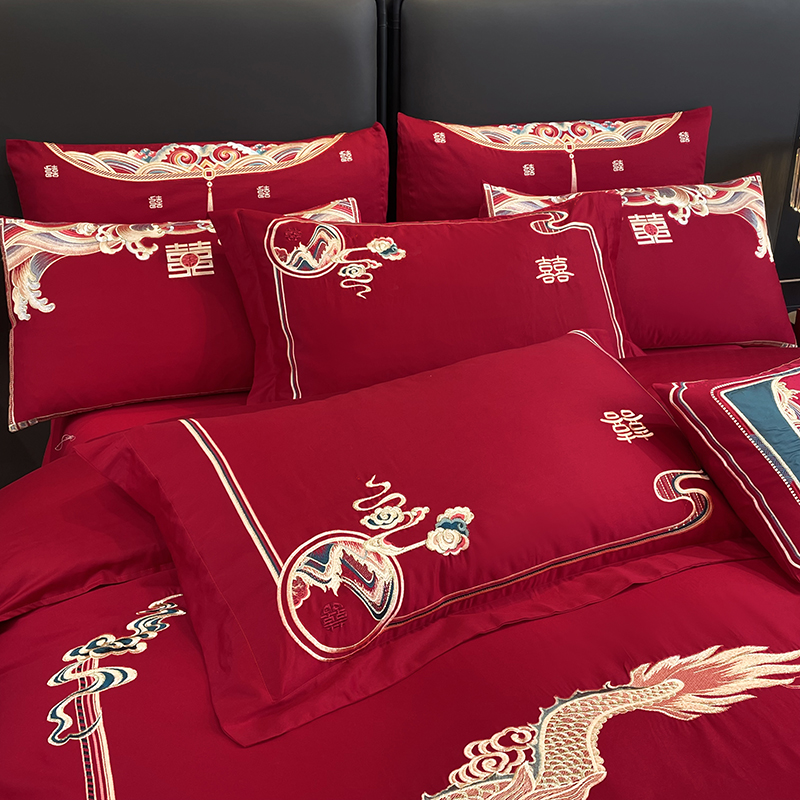 当前位置: 91家纺网 > 商品网购 > 床品套件 > 四件套 > 婚庆四件套 > 用心 2024年新款双面磨毛绣花婚庆四件套 百年龙凤