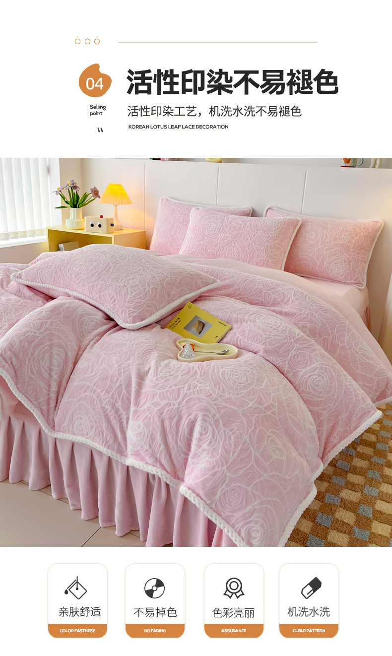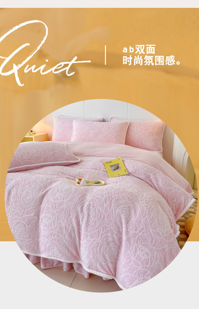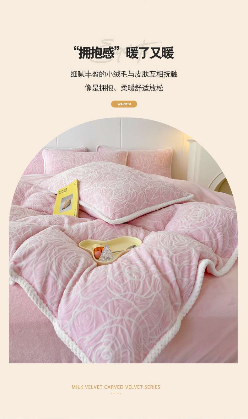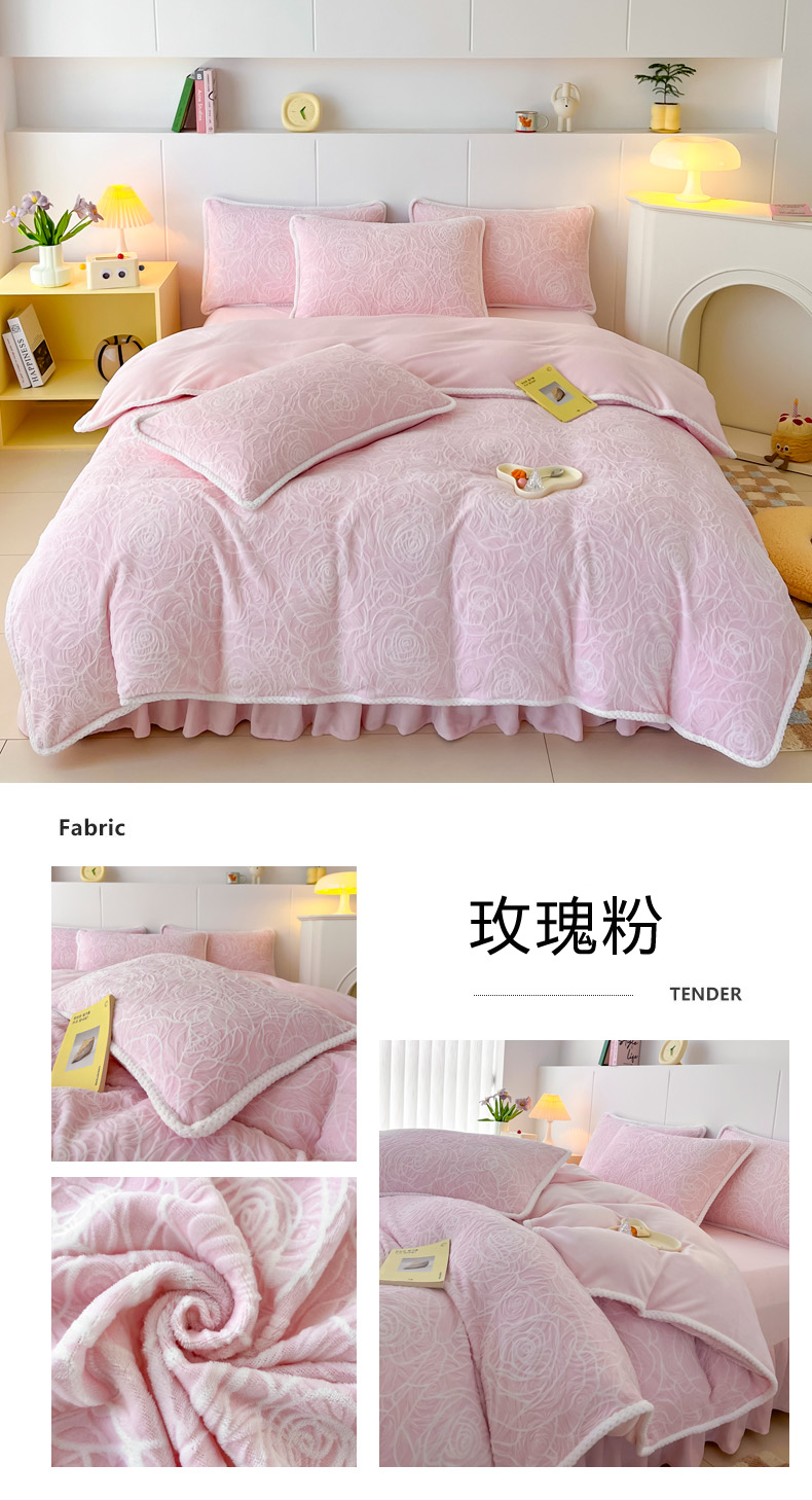 商品名称:首选家纺 2024新款立体雕花绒四件套 玫瑰粉