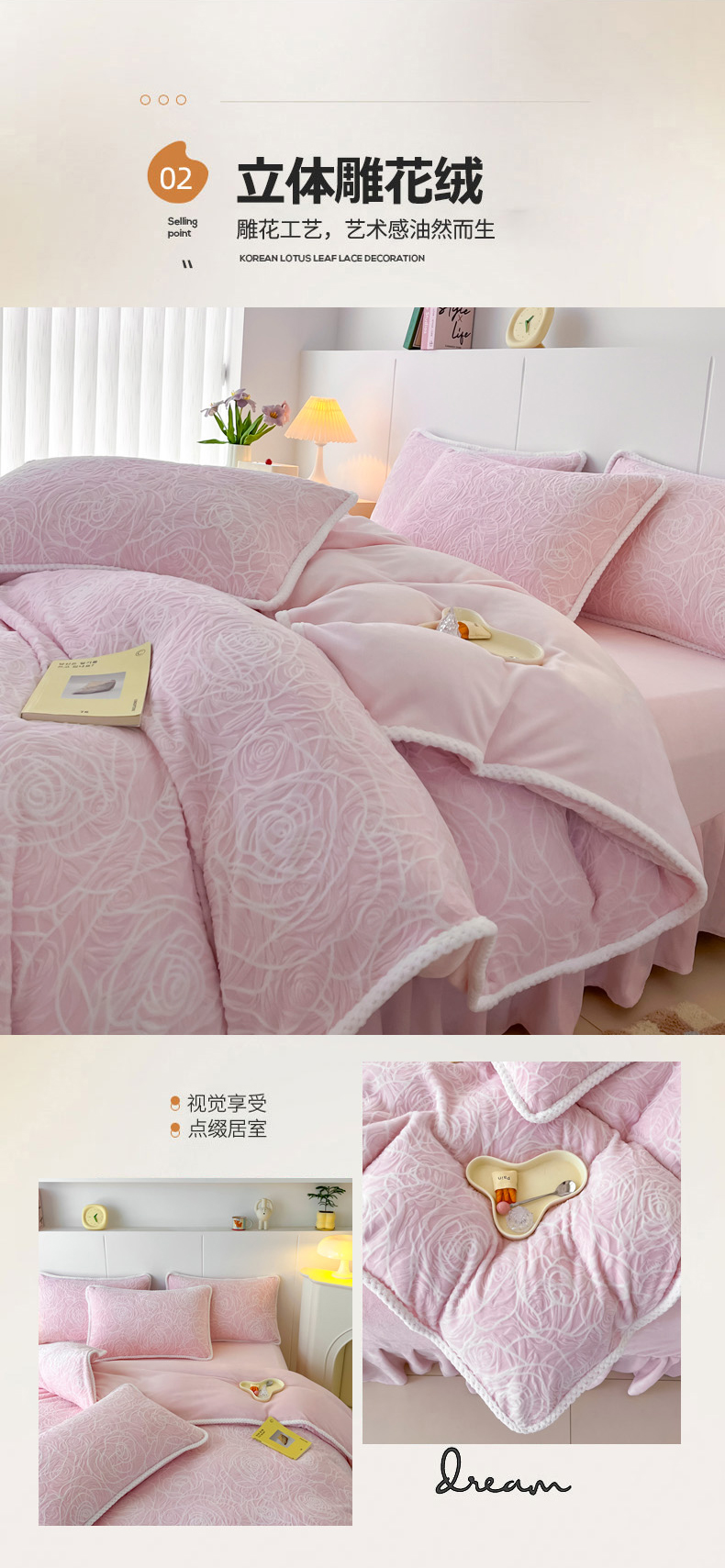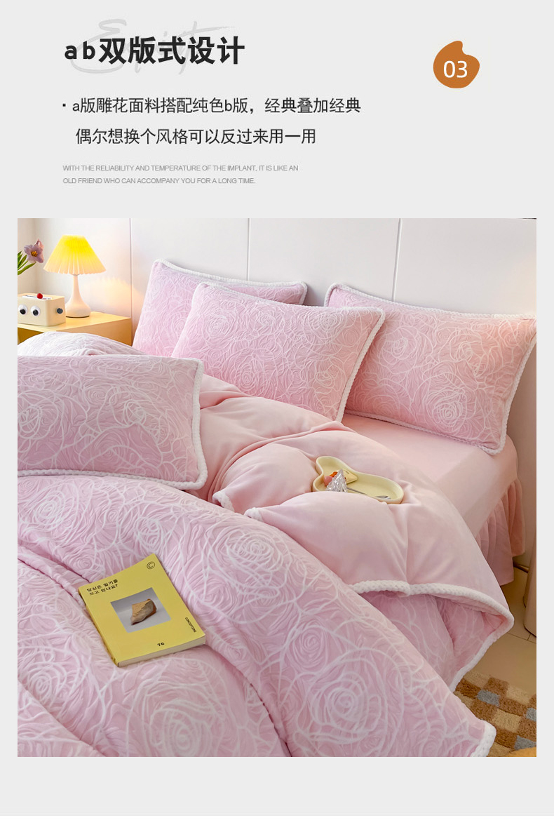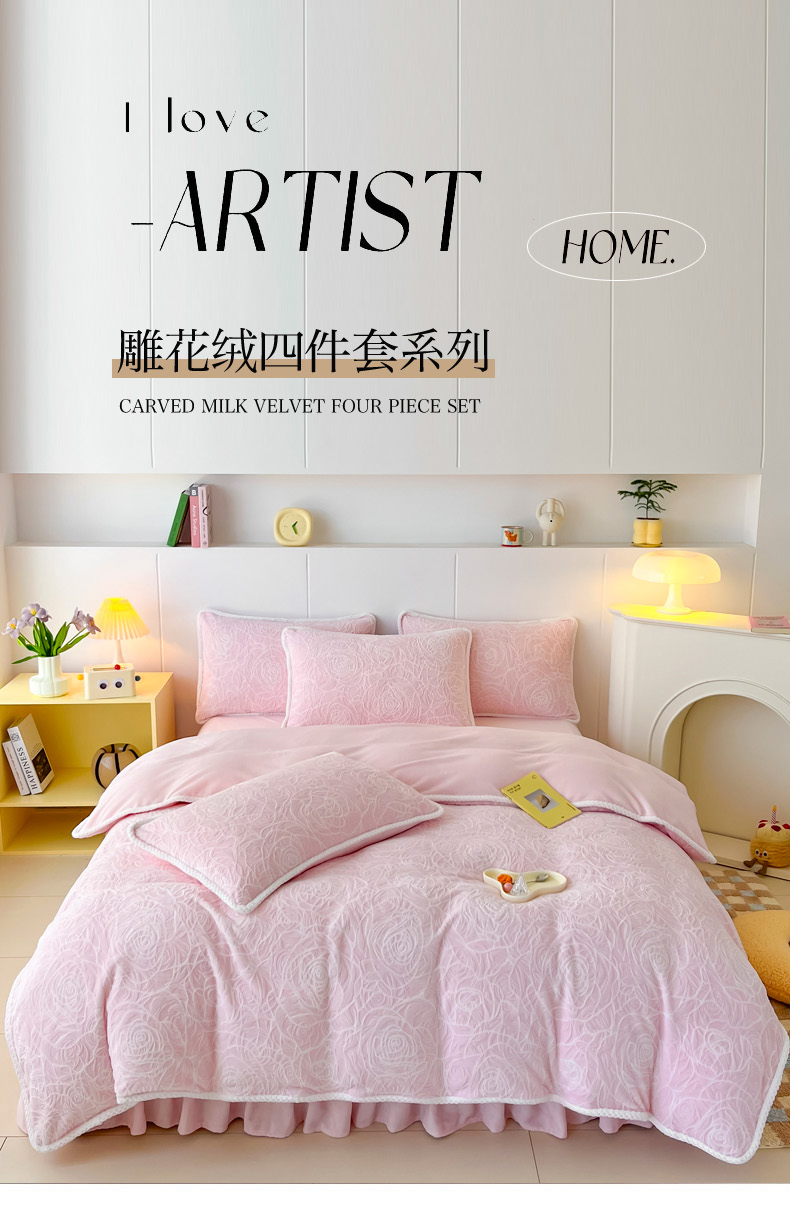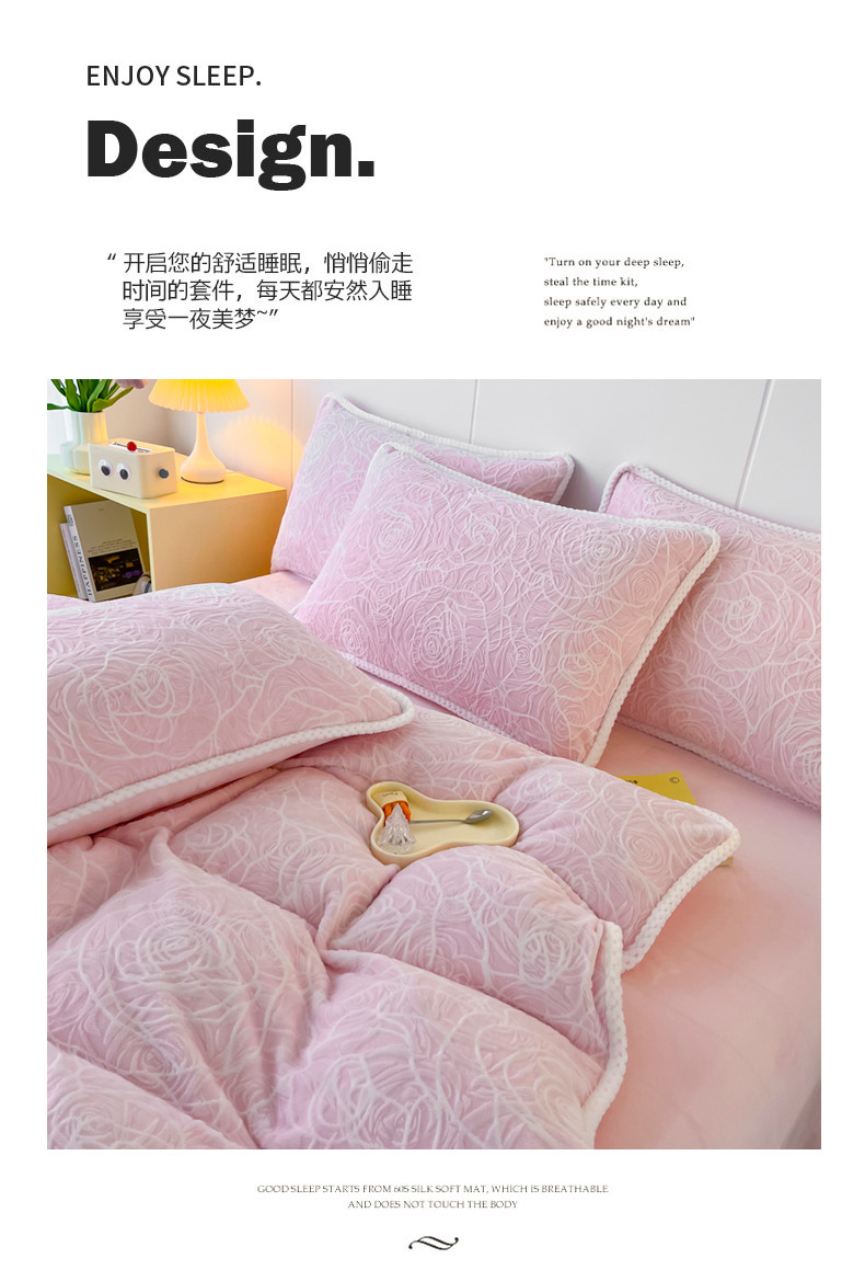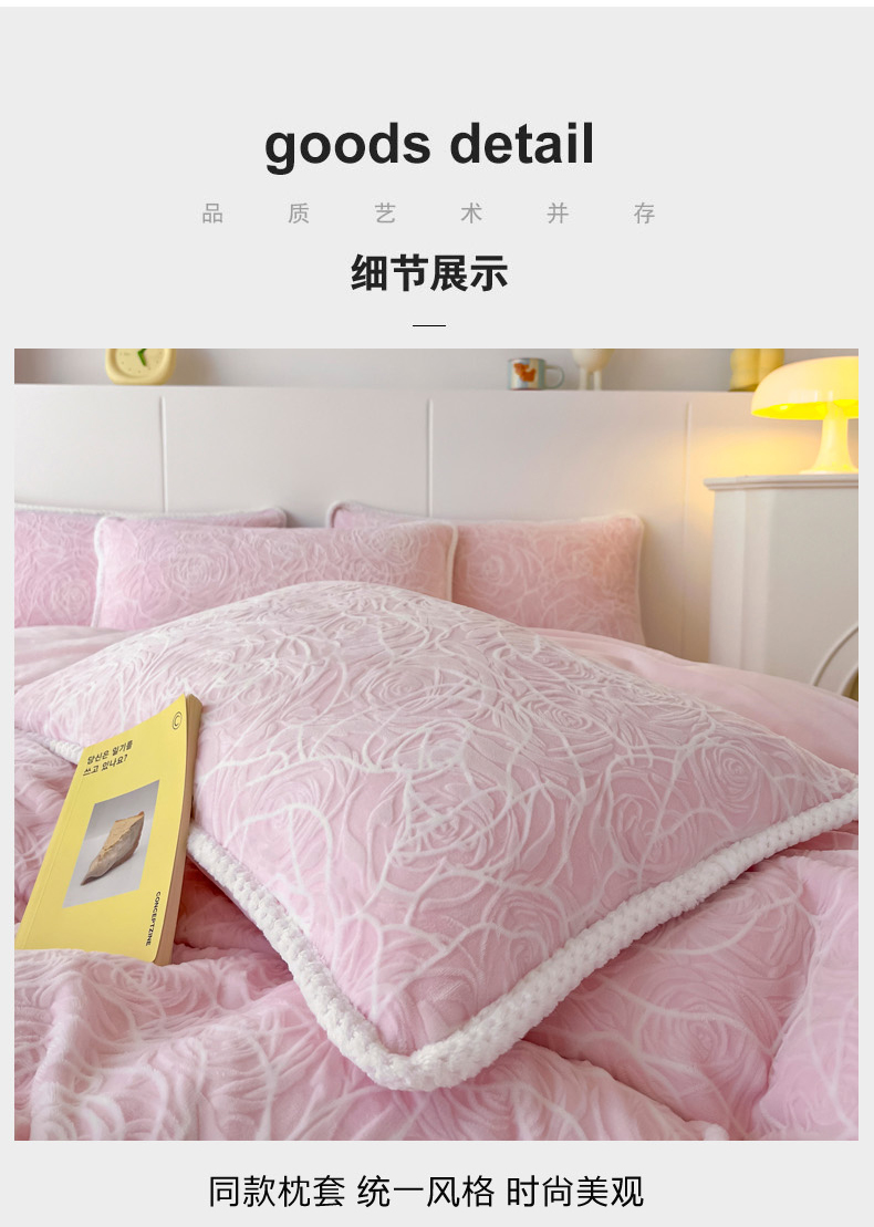 商品名称:首选家纺 2024新款立体雕花绒四件套 玫瑰粉