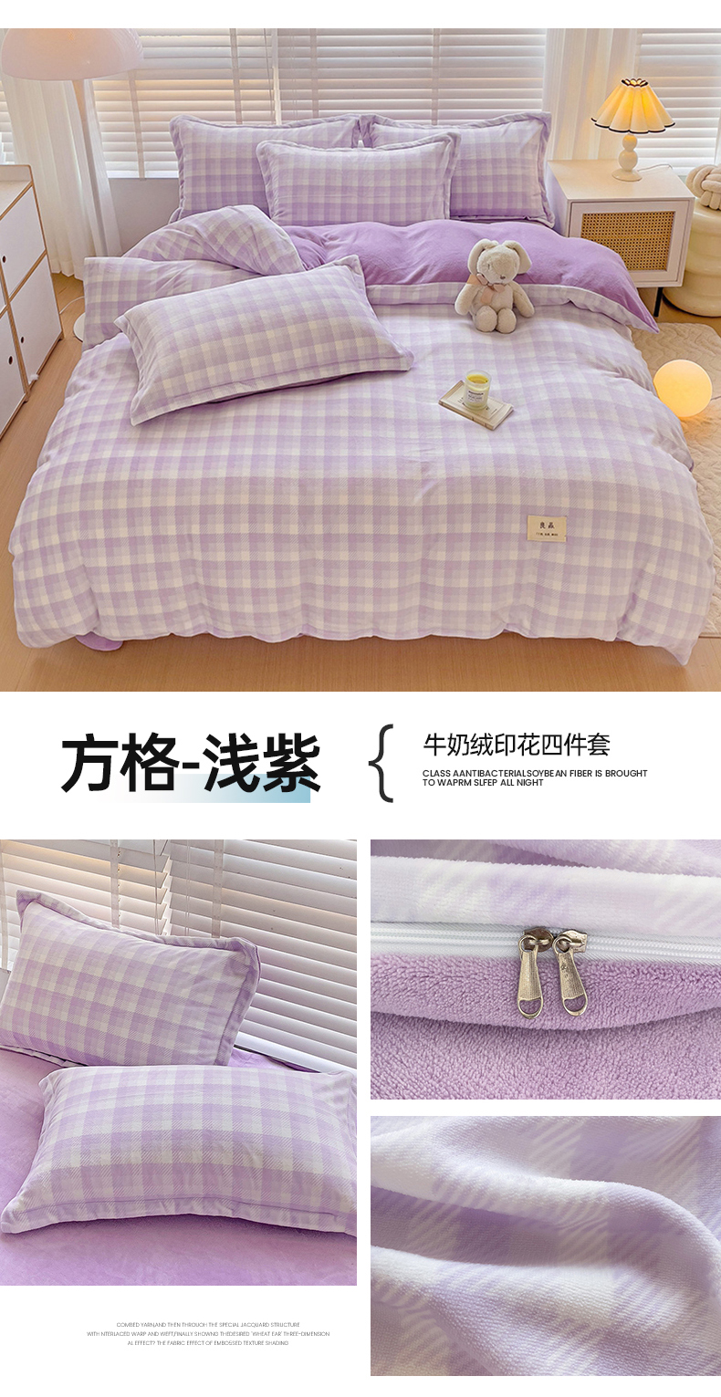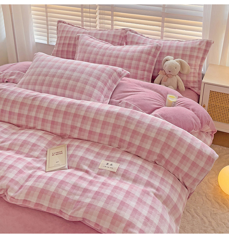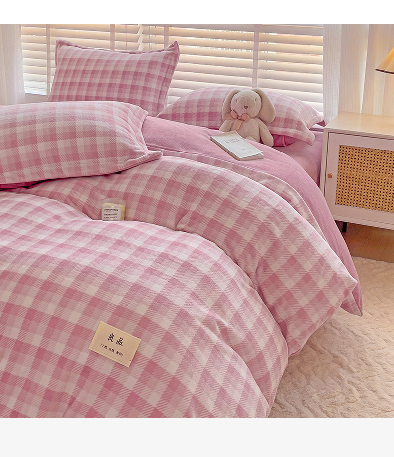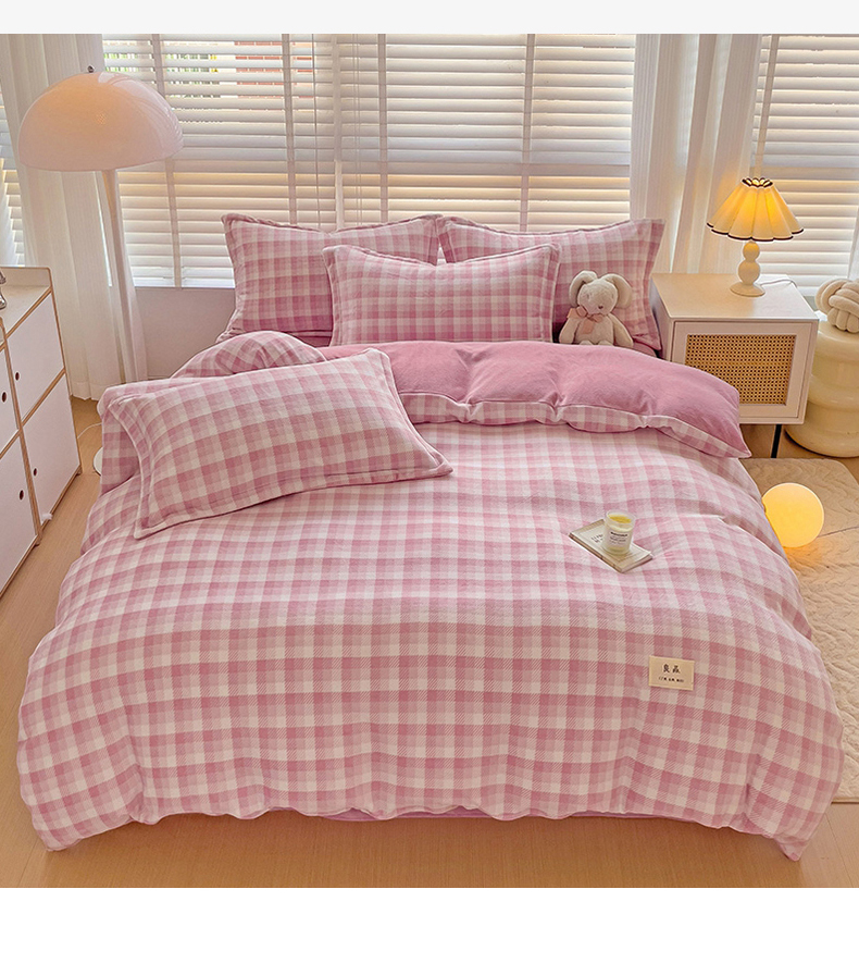 (总)简一 2025新款牛奶绒无印风ins风方格系列-四件套