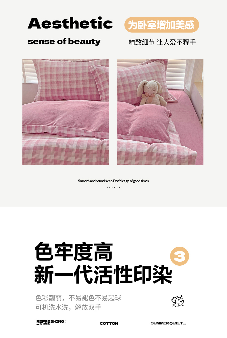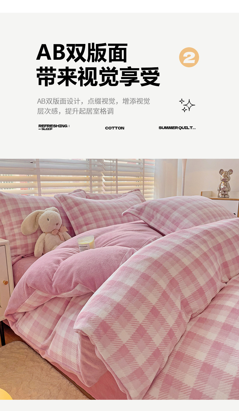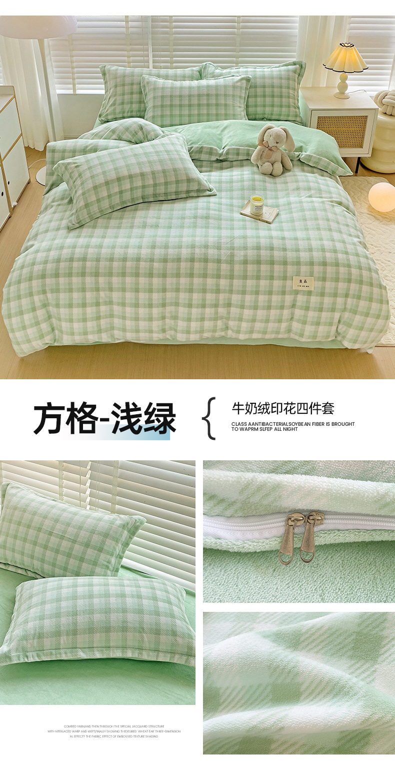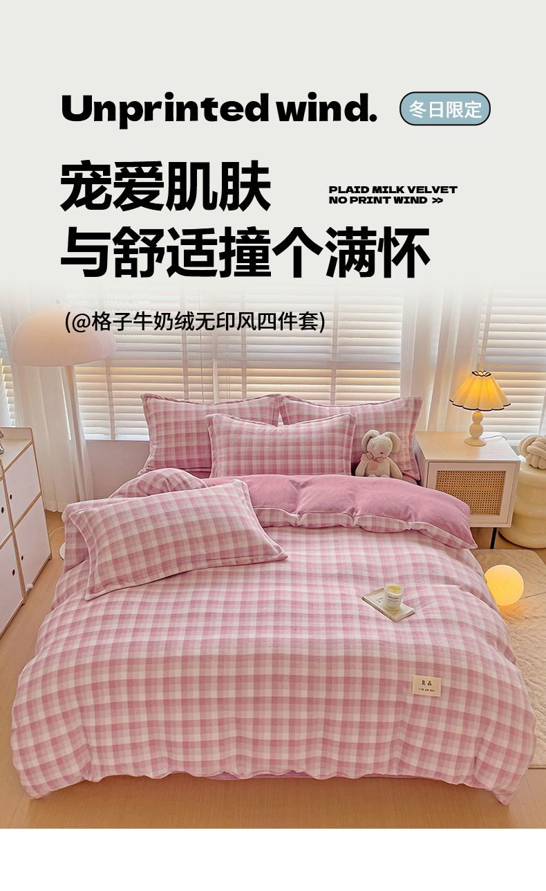 (总)简一 2025新款牛奶绒无印风ins风方格系列-四件套