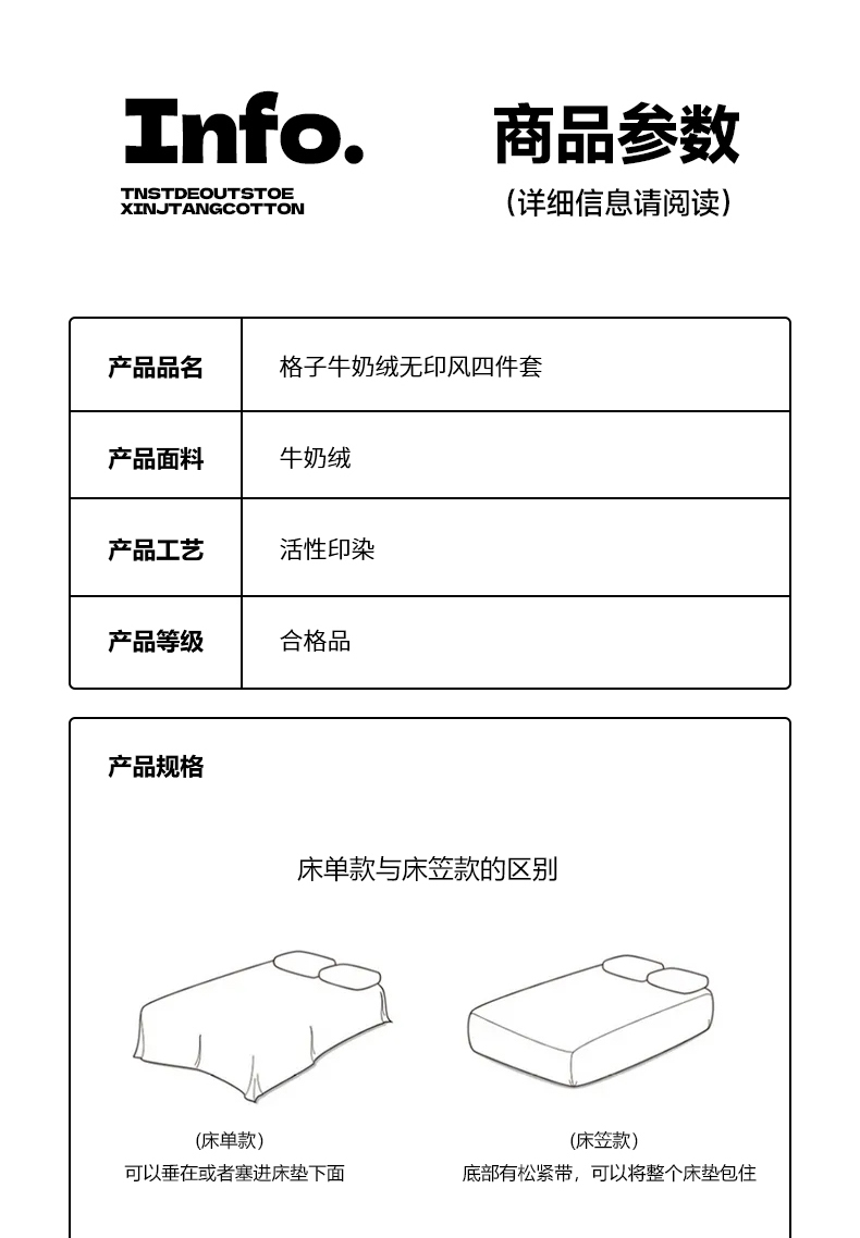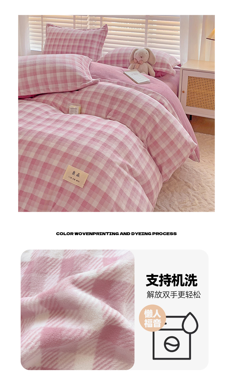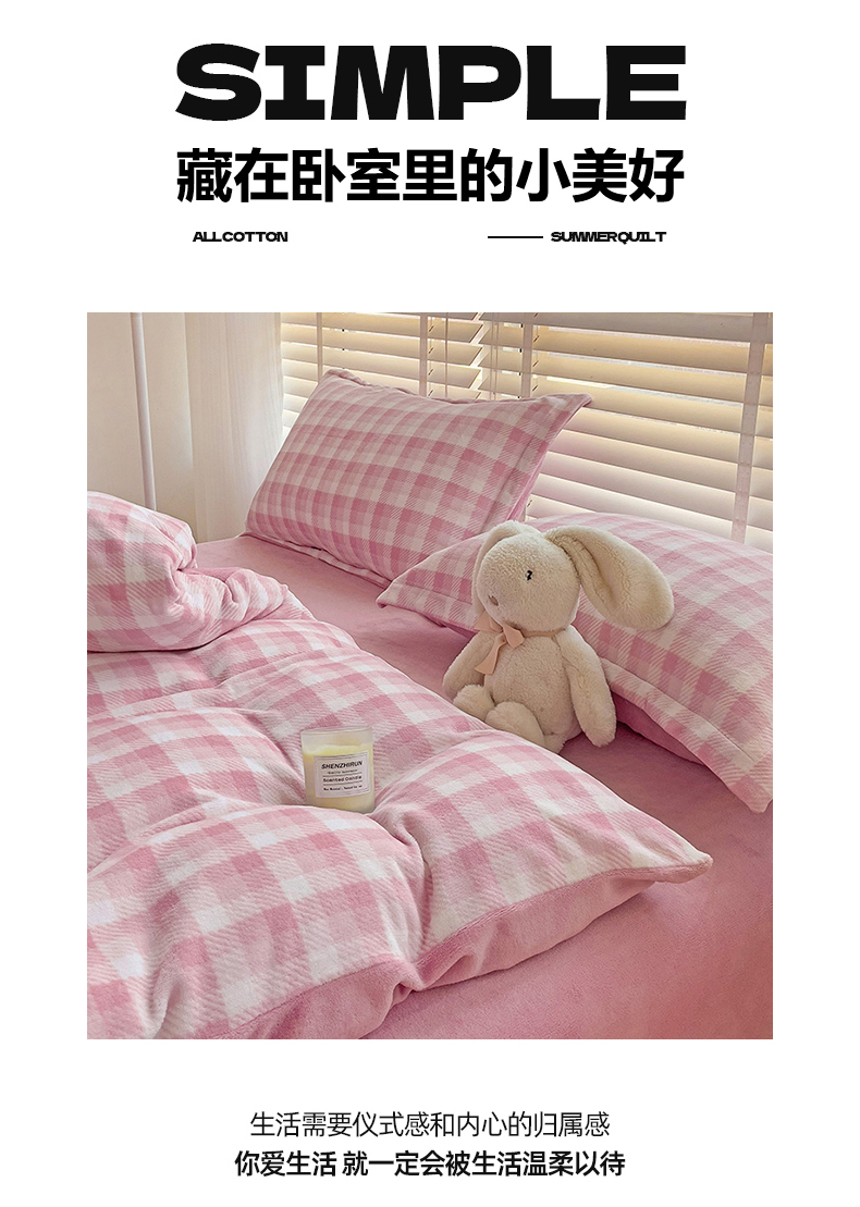 商品名称:(总)简一 2025新款牛奶绒无印风ins风方格系列-四件套