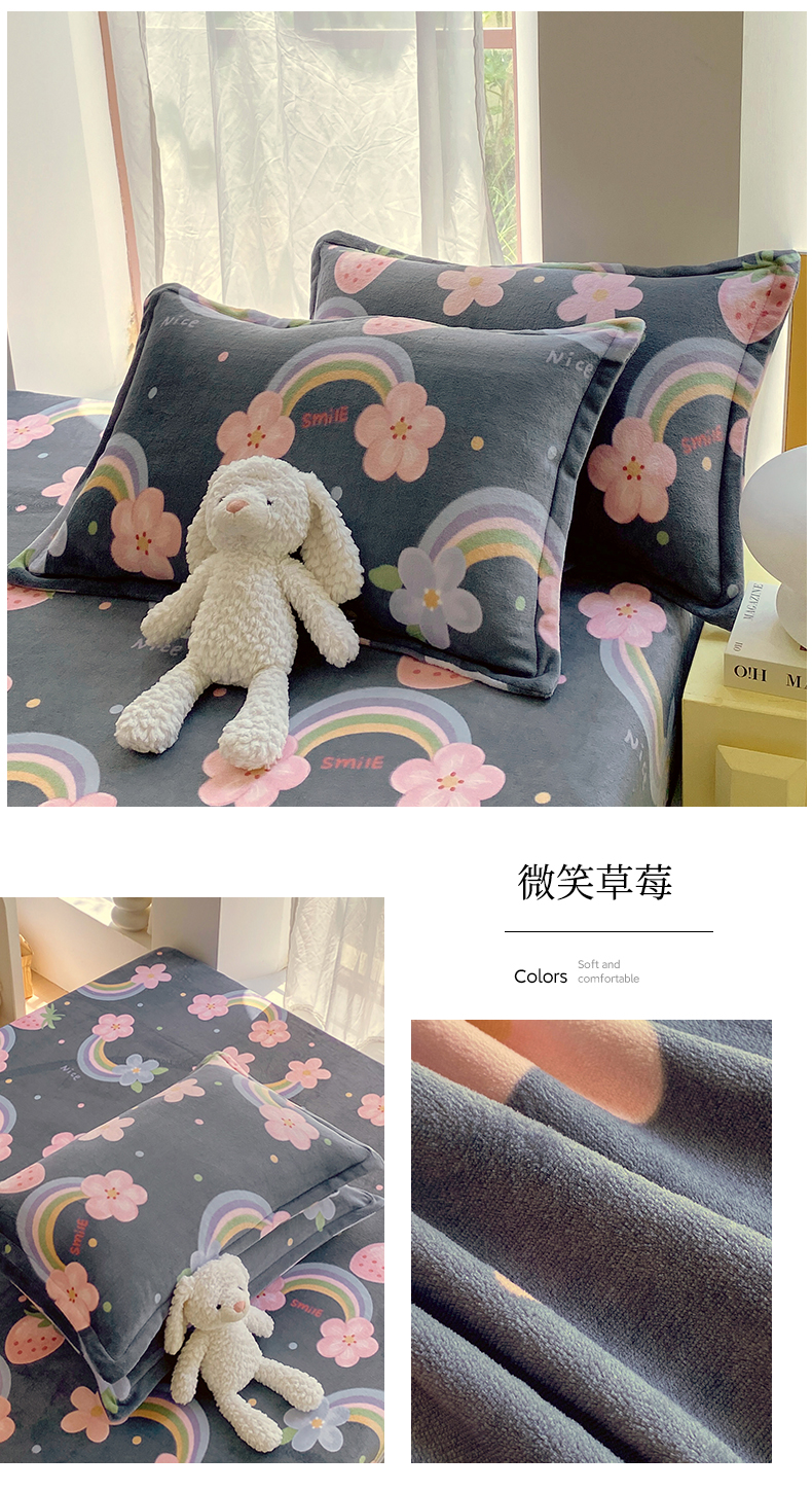商品名称:凯儿家纺 2024新款A类牛奶绒印花枕套 微笑草莓