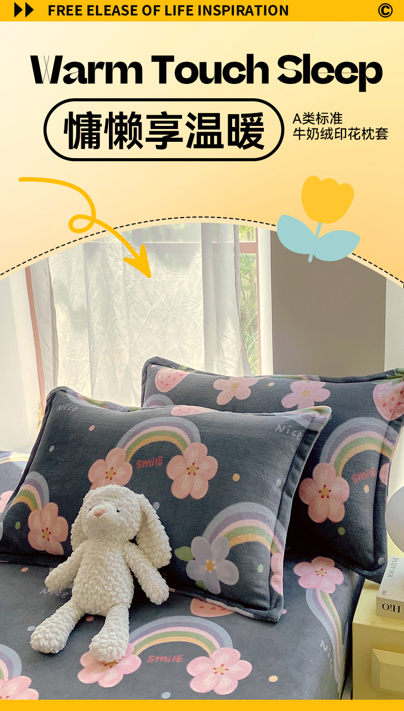 凯儿家纺 2024新款A类牛奶绒印花枕套 微笑草莓