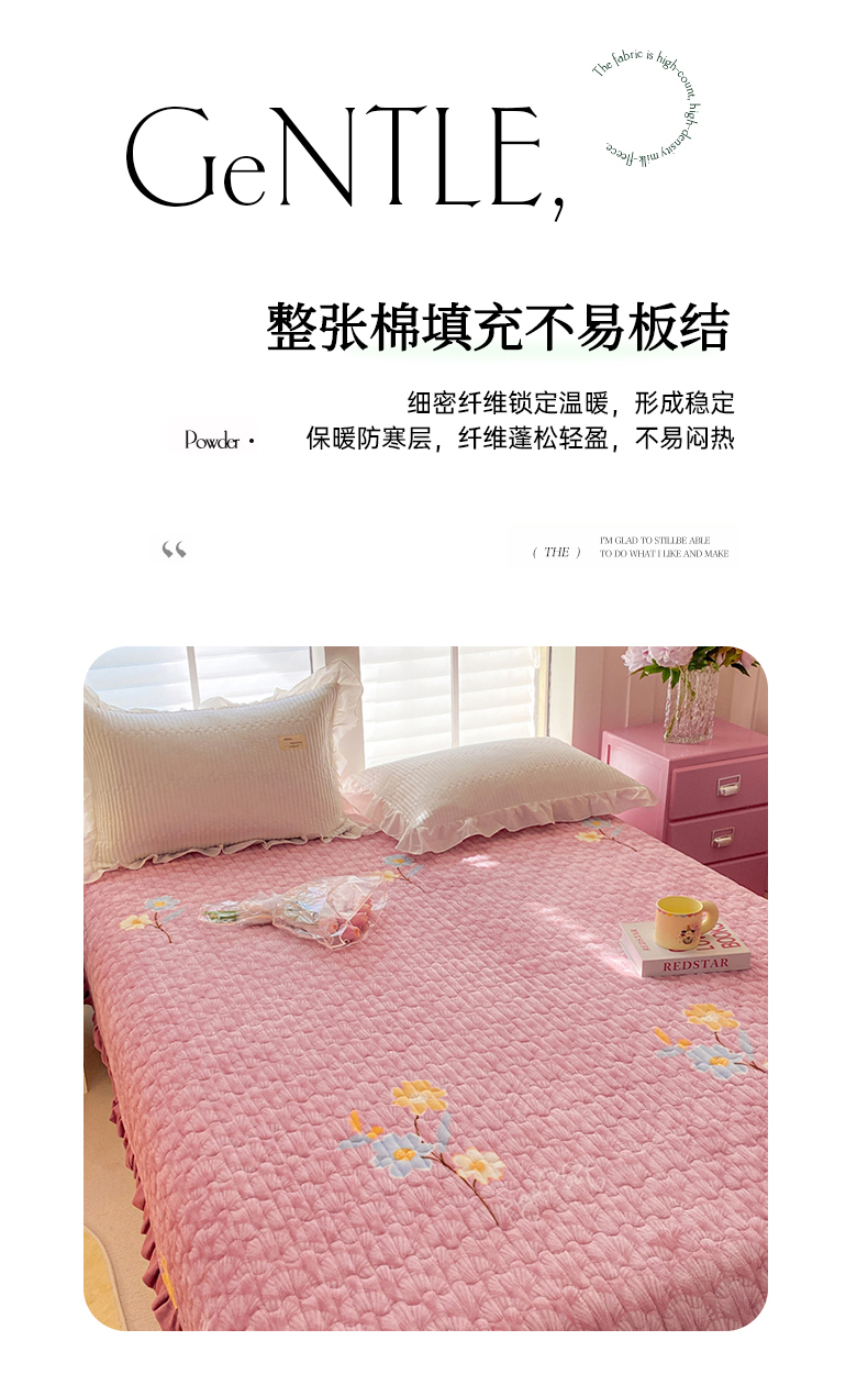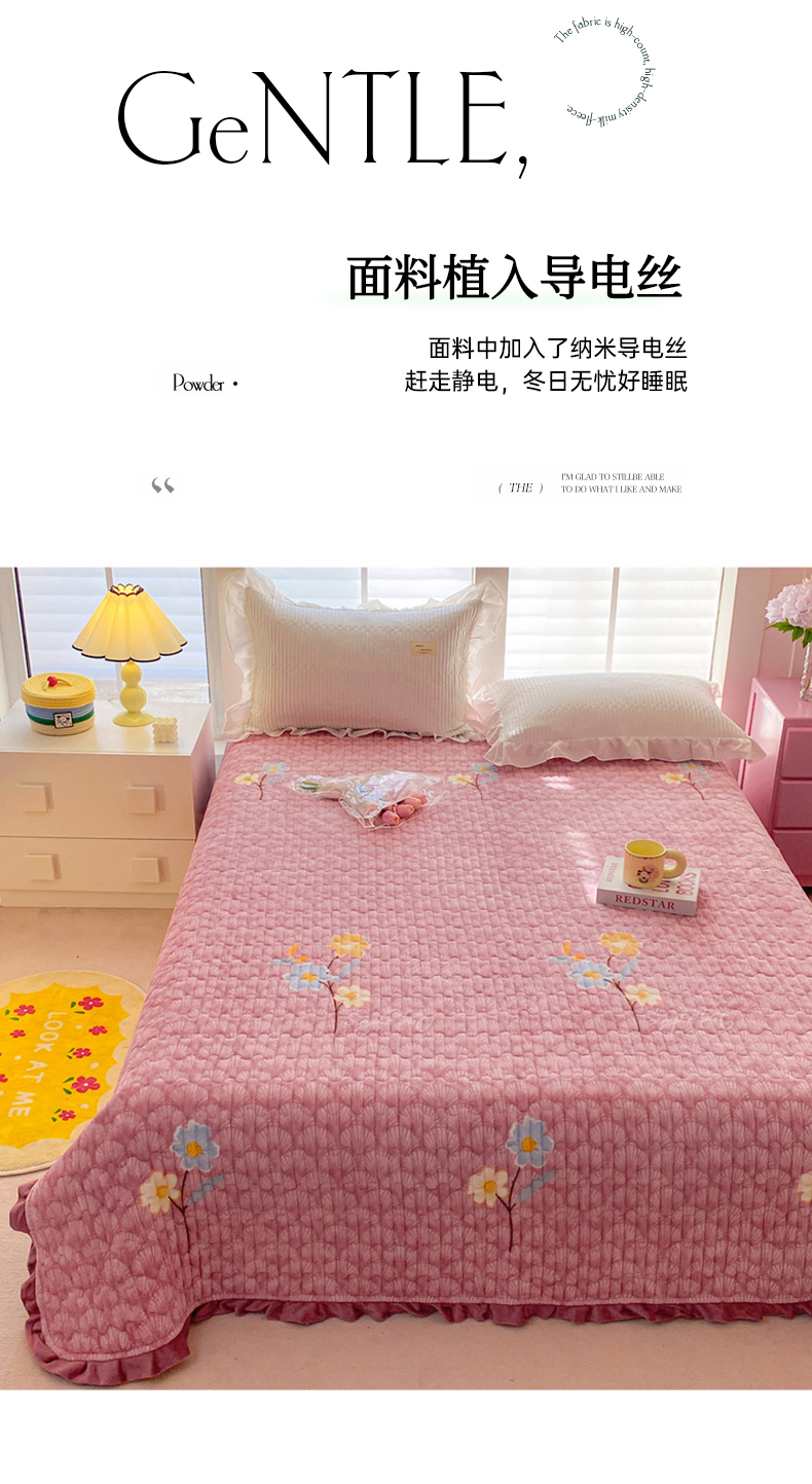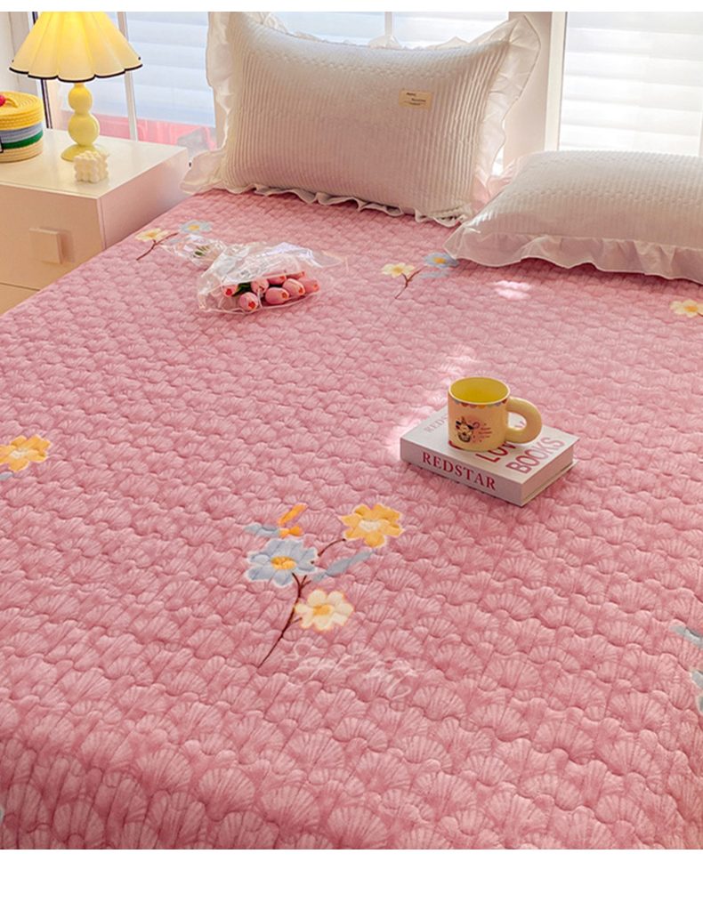 (总)胜权家纺 2025秋冬新款A类全消光高克重5D雕花牛奶绒仙女风夹棉床盖单品系列,梦安娜-湖蓝,梦安娜-靓紫,梦安娜-嫩粉,梦安娜-浅米