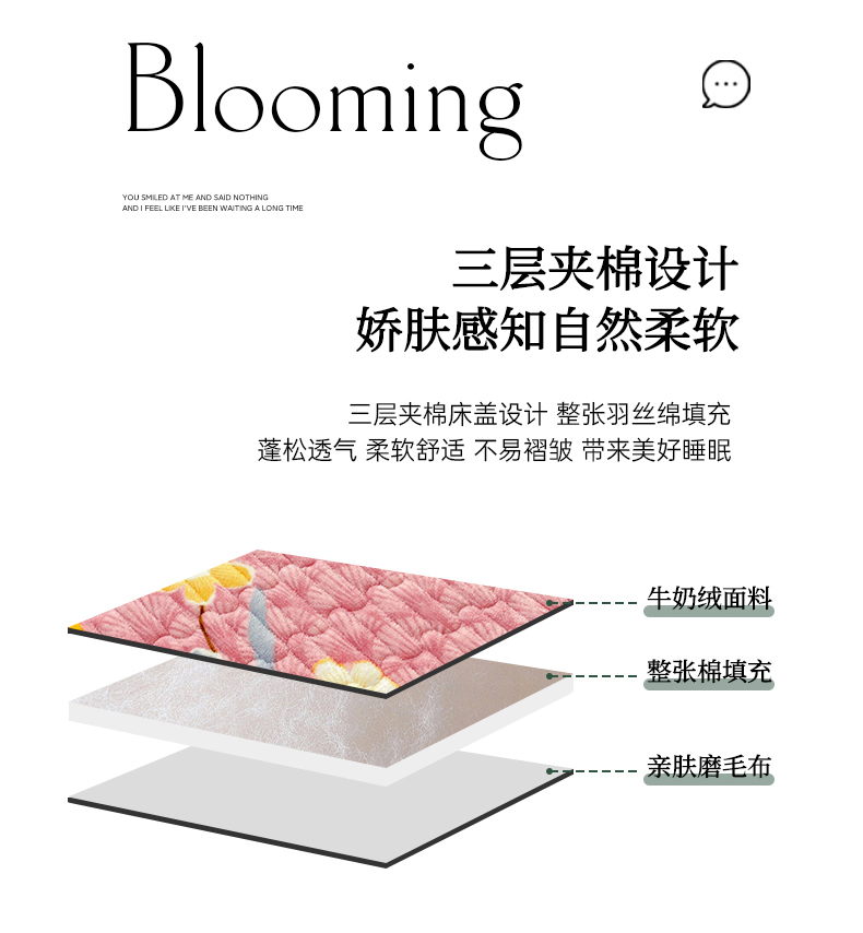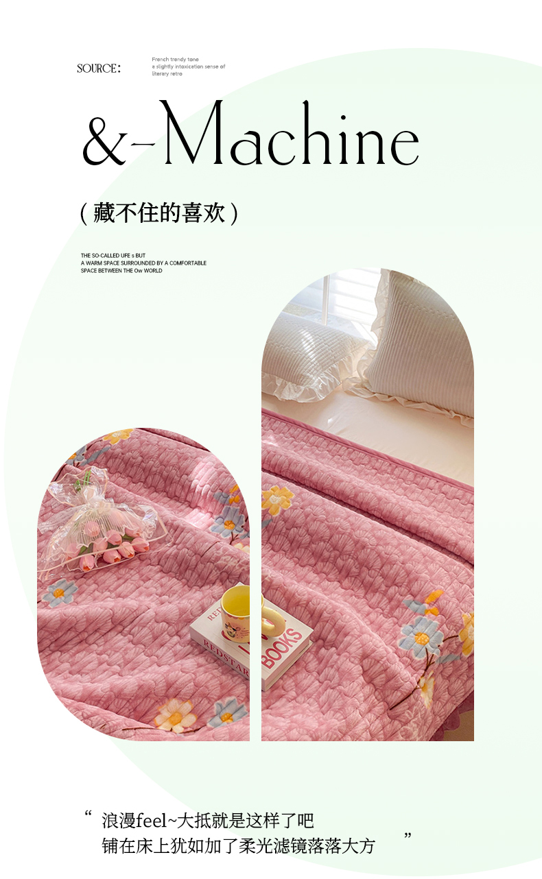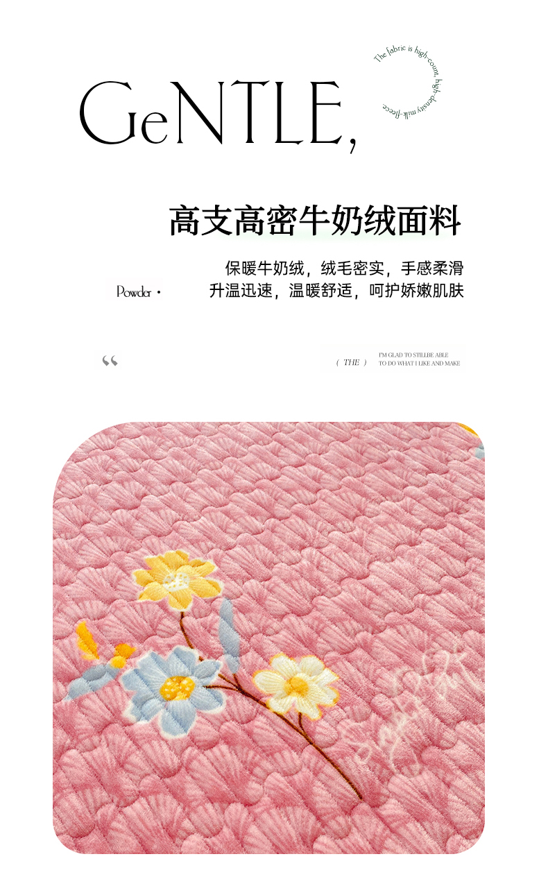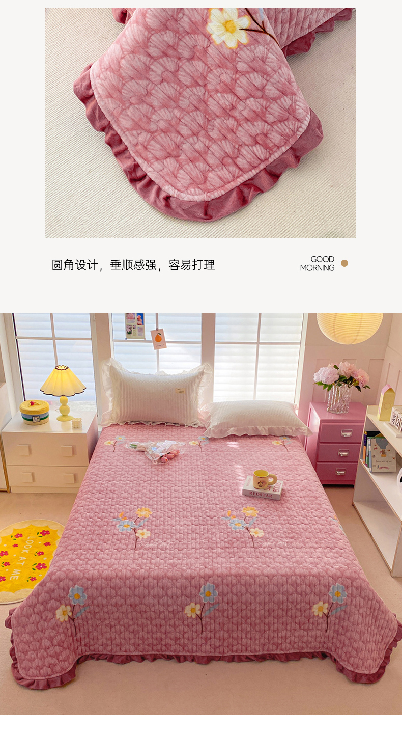 商品名称:胜权家纺 2024秋冬新款印花牛奶绒加厚保暖圆角花边夹棉床盖 太阳花豆沙