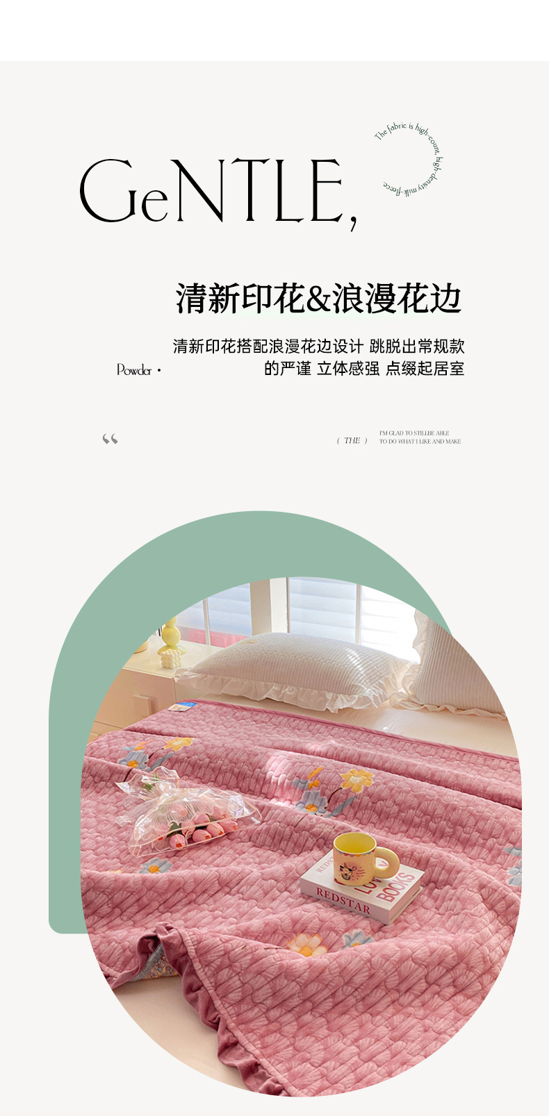 (总)胜权家纺 2025秋冬新款全棉法式13372数码印花夹棉床盖单品系列,花非花粉,花非花绿,妙颜粉,锦绣繁华绿,花海绿,锦绣繁华粉