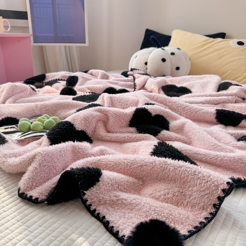 柚子YOUTH 2024新款毛球款云柔提花双面毯 粉爱心