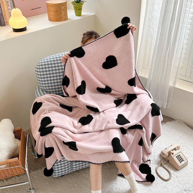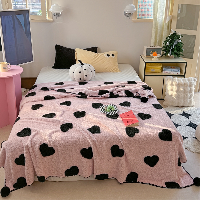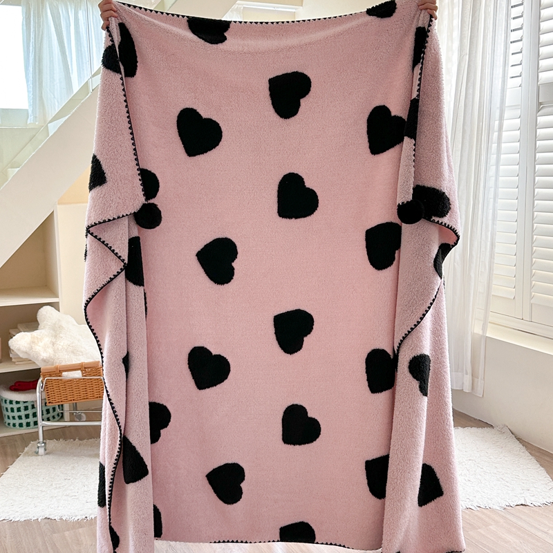 商品名称:柚子YOUTH 2024新款毛球款云柔提花双面毯 粉爱心