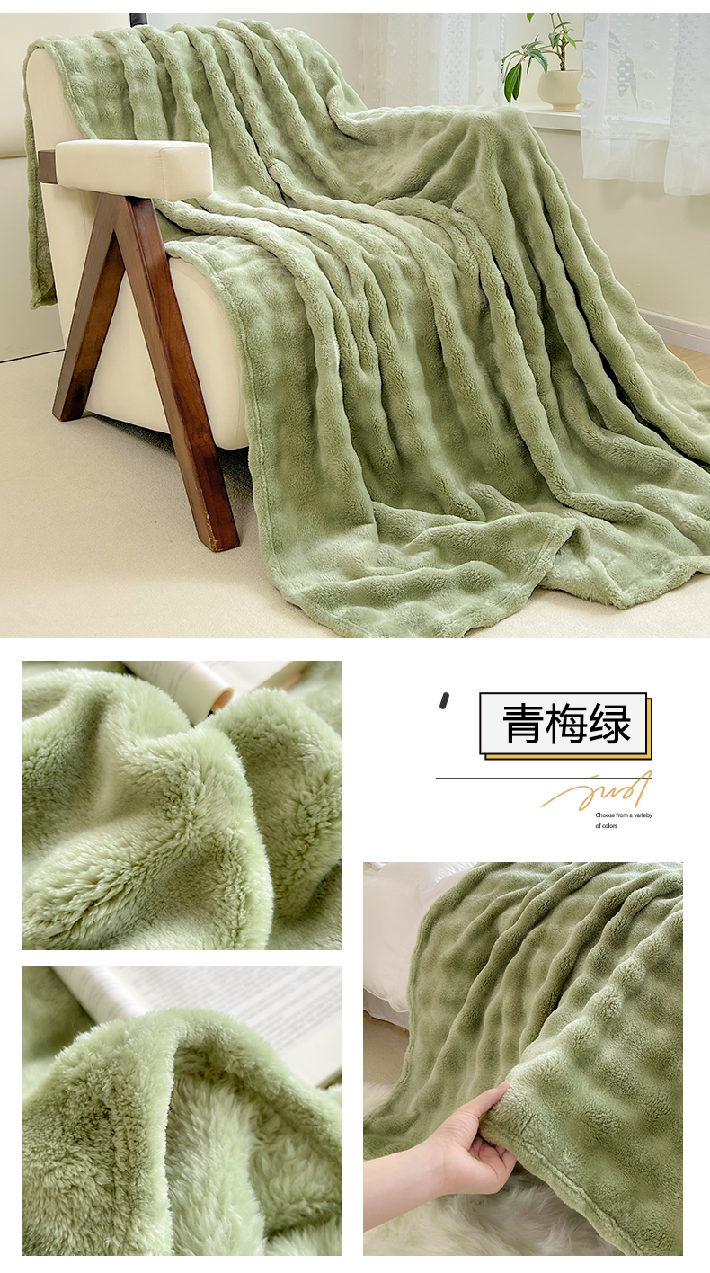 商品名称:羋多(原穆琪)2024新款高克重牛奶绒仿兔毛泡泡毛毯双面绒床单办公室多功能盖毯午睡沙发毯披肩毯 青梅绿