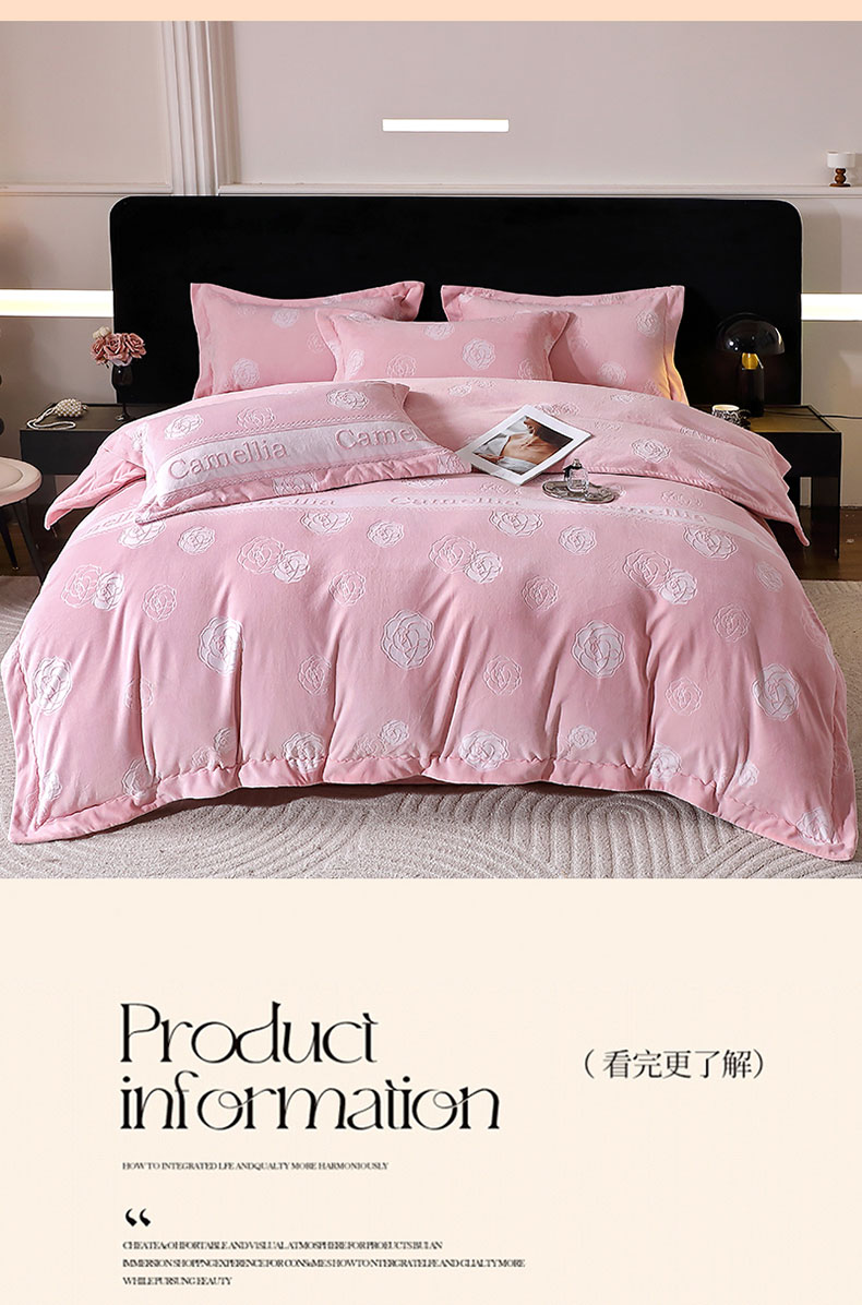 商品名称:席之家 2024新款A类平雕印花全消光260克雅丝绒四件套香奈茶花粉