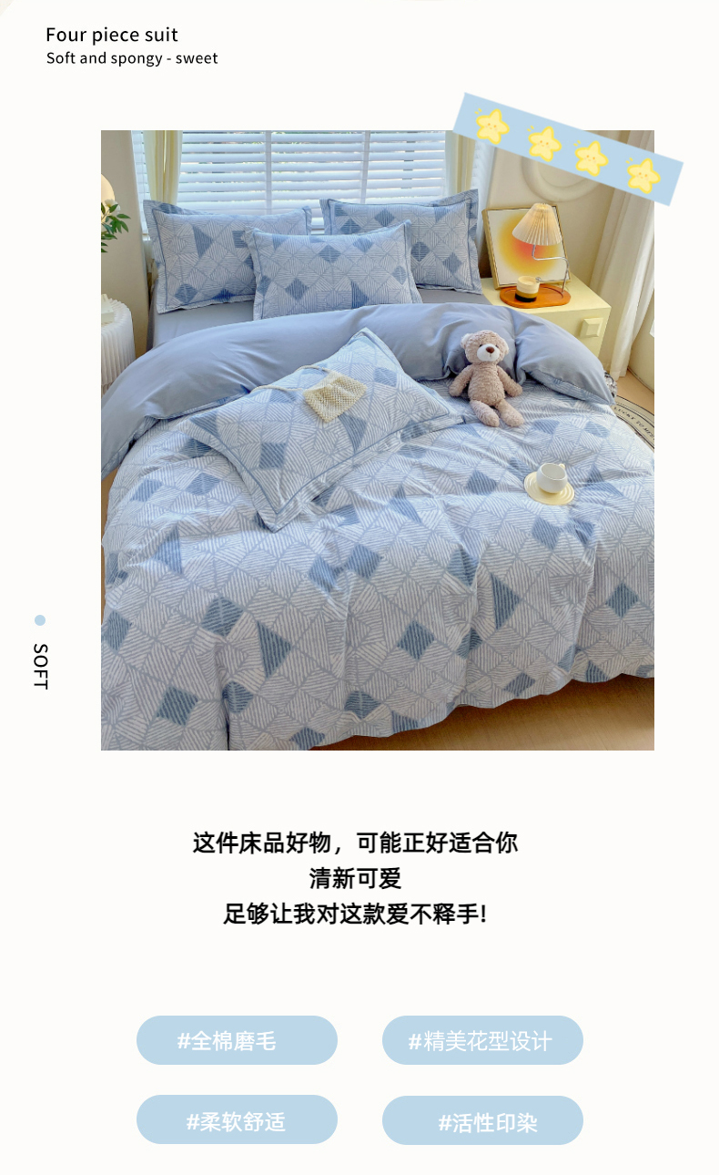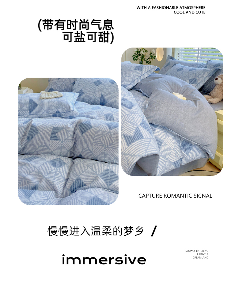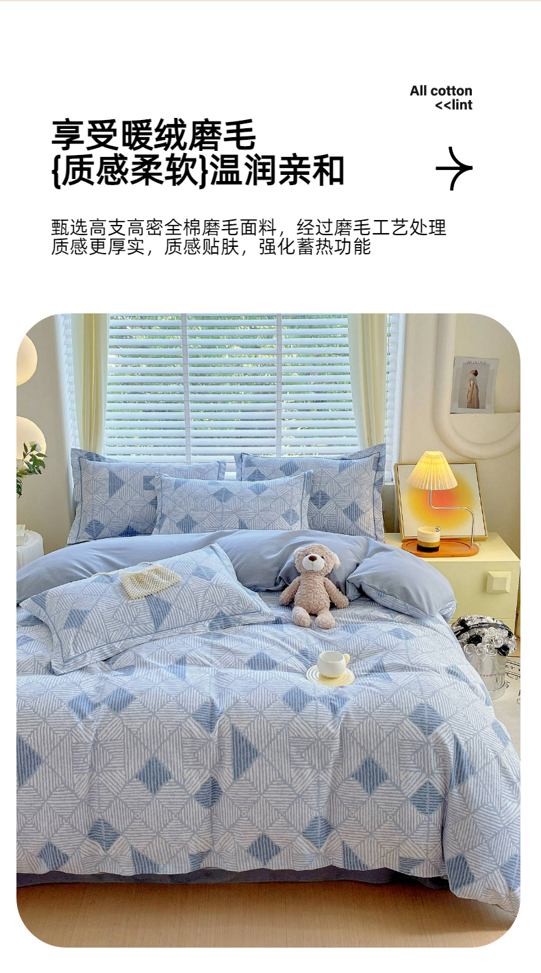 当前位置: 91家纺网 > 商品网购 > 床品套件 > 四件套 > 全棉普通四件套 > 威布斯 2025新款加厚纯棉全棉磨毛三件套四件套 街角咖啡-蓝