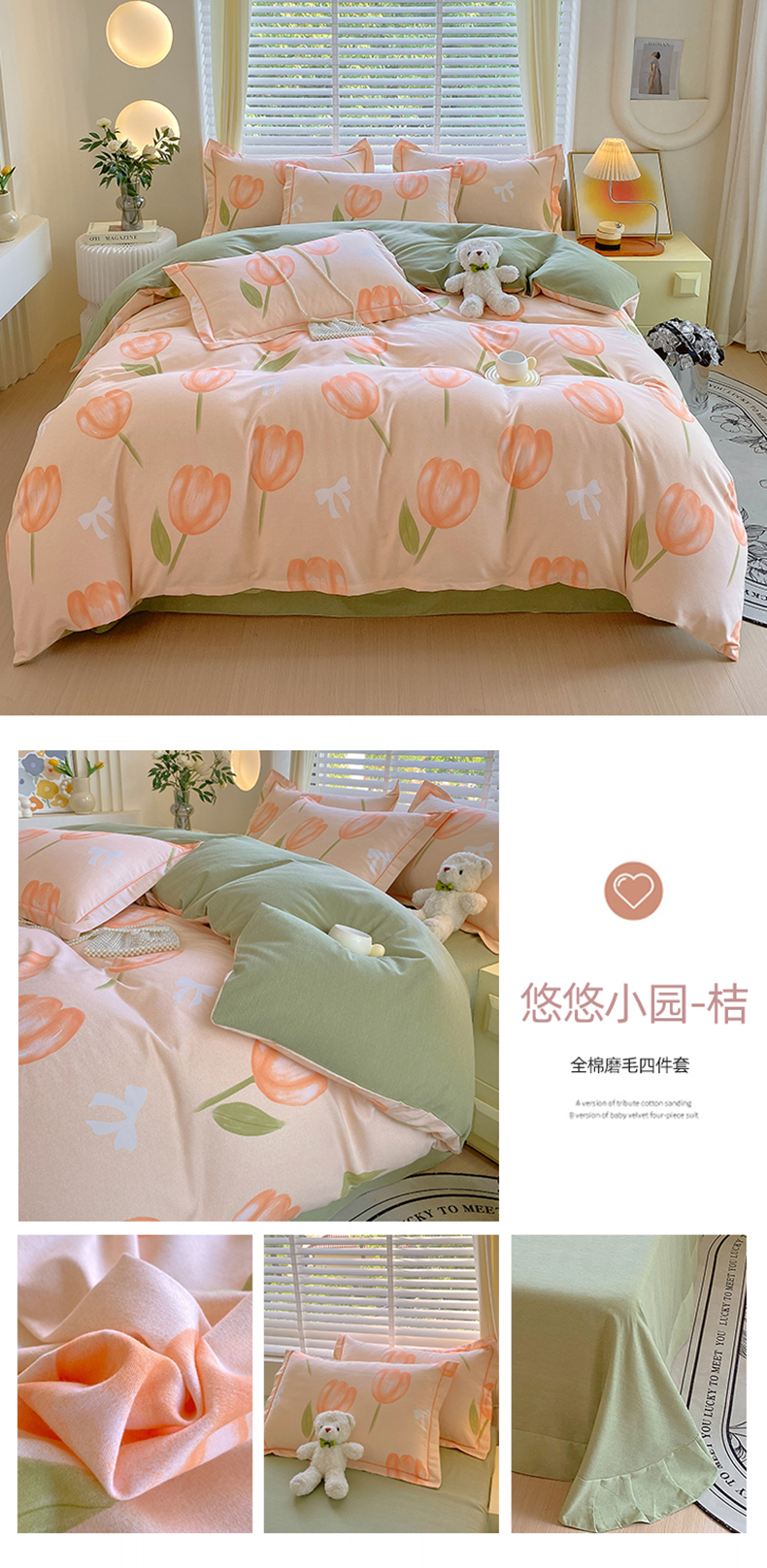 当前位置: 91家纺网 > 商品网购 > 床品套件 > 四件套 > 全棉普通四件套 > 威布斯 2025新款加厚纯棉全棉磨毛三件套四件套 悠悠小园-桔