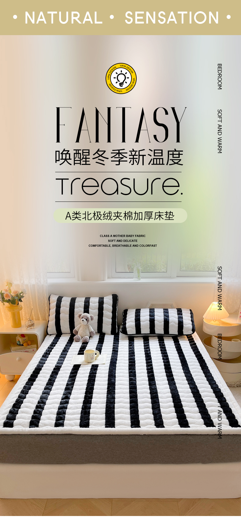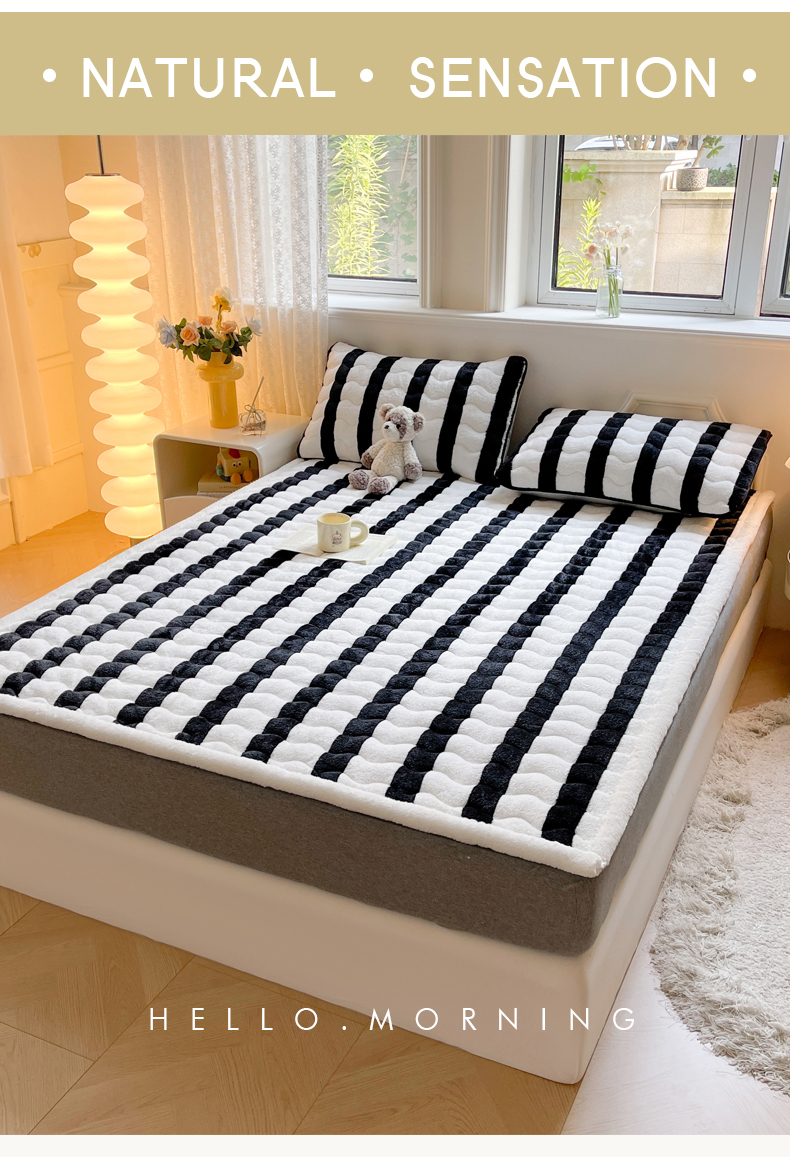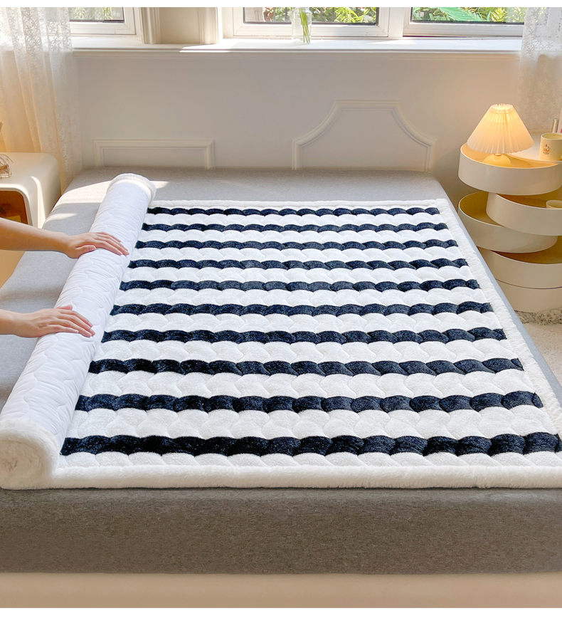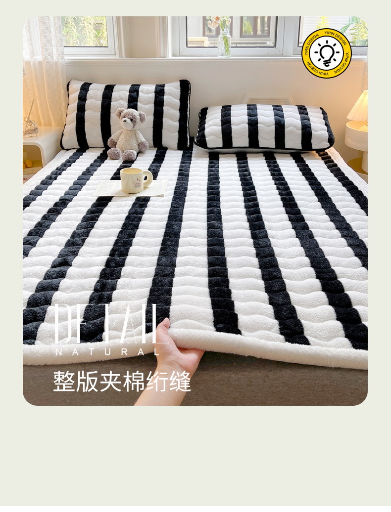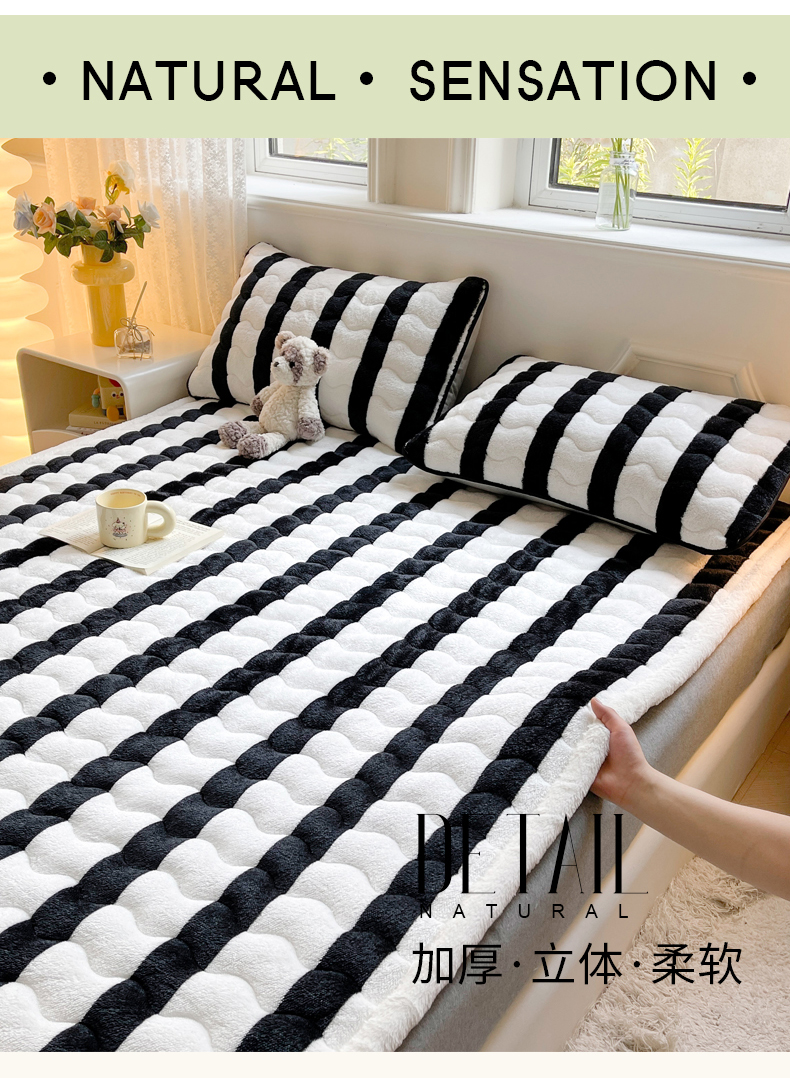 当前位置: 91家纺网 > 商品网购 > 床垫/床褥 > 普通床垫 > 2024秋冬加厚床垫床褥子北极绒印花泰迪绒床褥床护垫三件套-160g夹棉 条纹-黑色