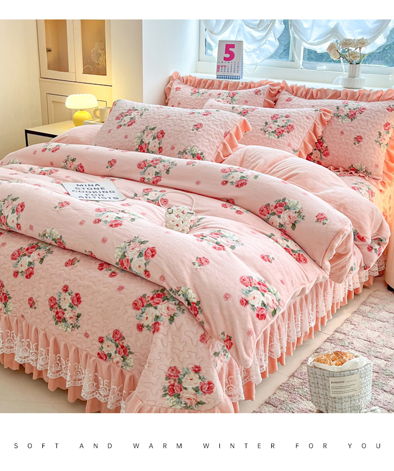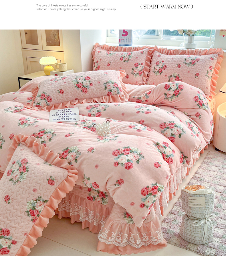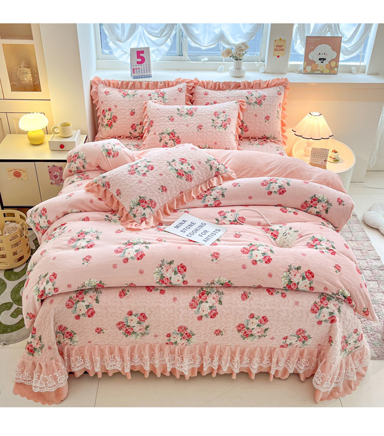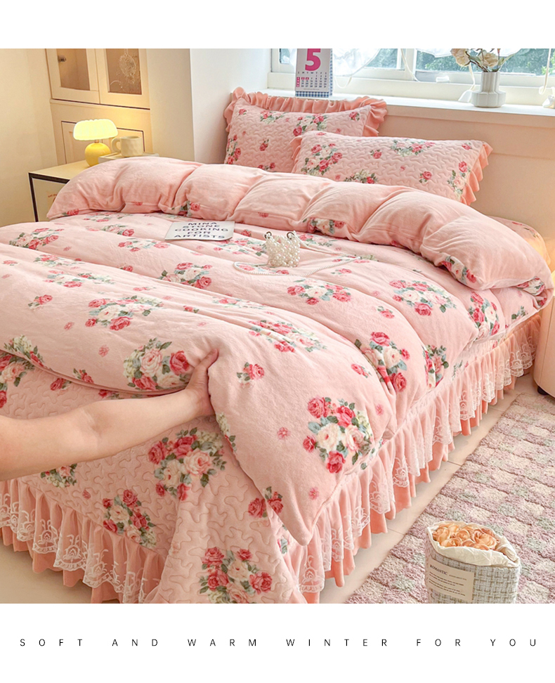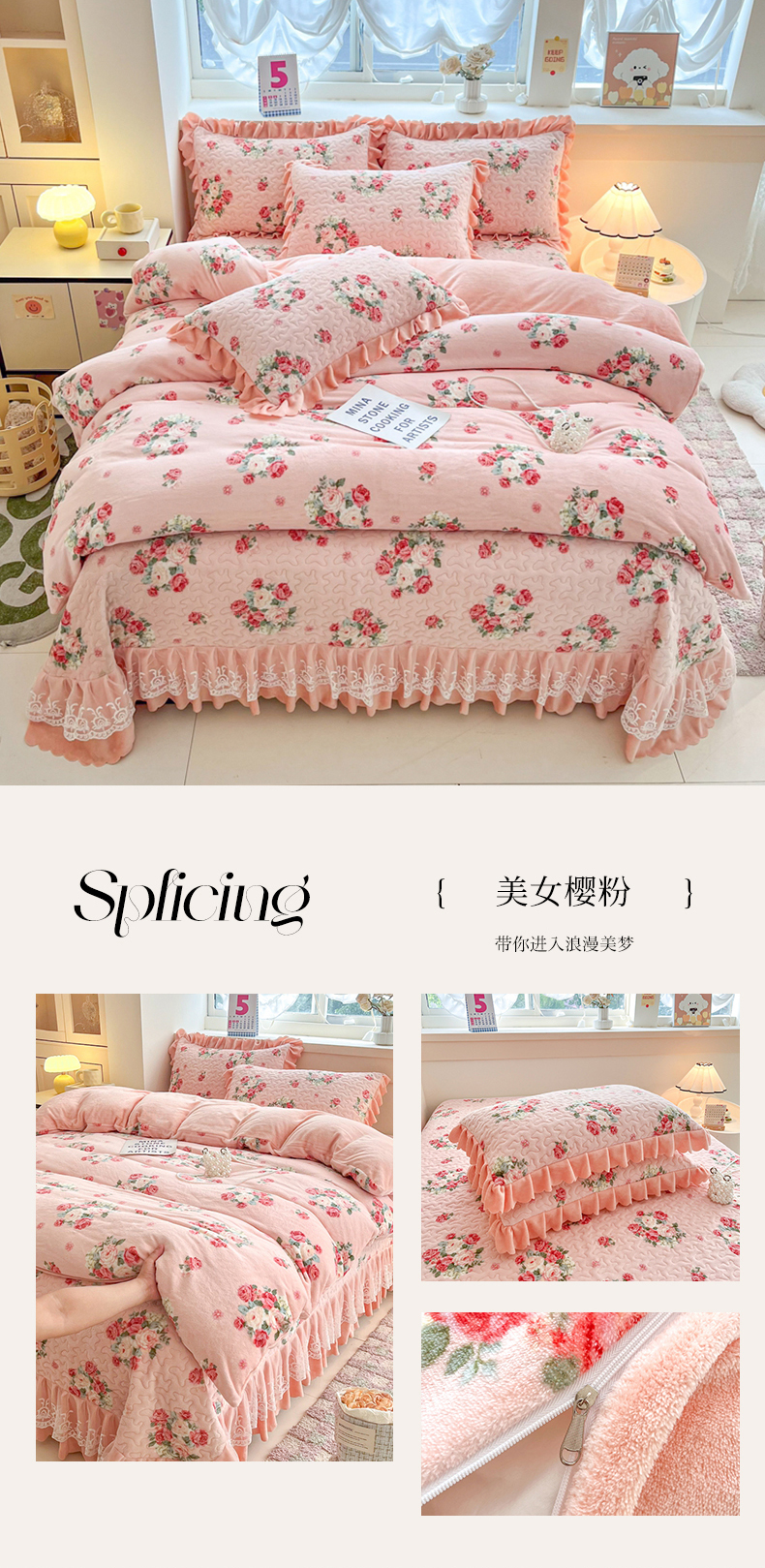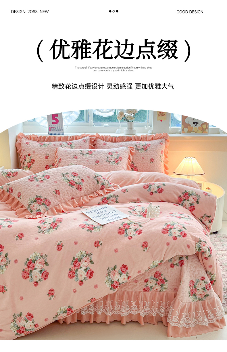当前位置: 91家纺网 > 商品网购 > 床品套件 > 四件套 > 牛奶绒四件套 > 铠畅 2025新款加厚牛奶绒床盖四件套 美女樱粉