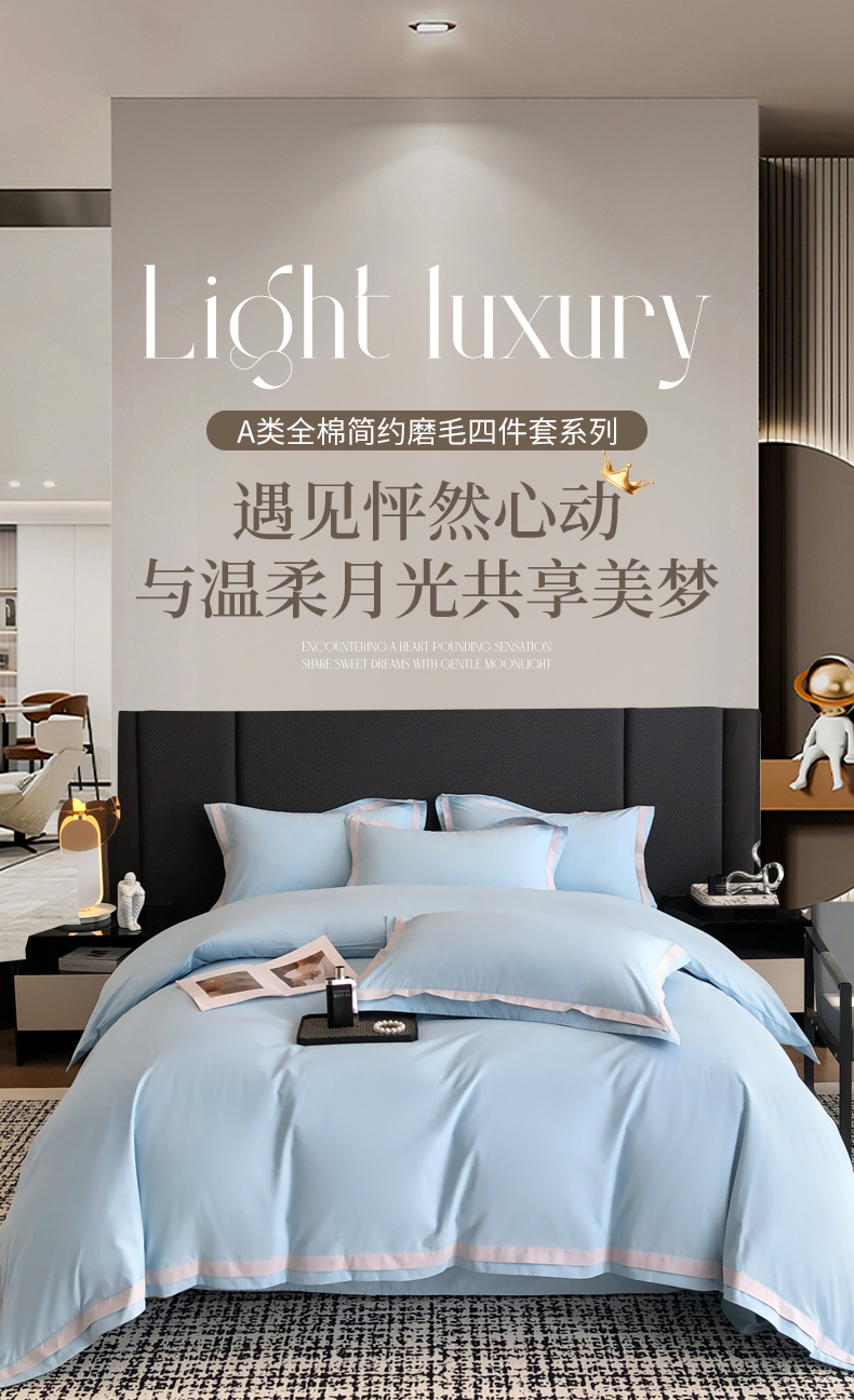 当前位置: 91家纺网 > 商品网购 > 床品套件 > 四件套 > 长绒棉四件套 > 家居1号家纺 2024秋冬新疆长绒棉体双拼纯色磨毛四件套-杰西 杰西-天空蓝