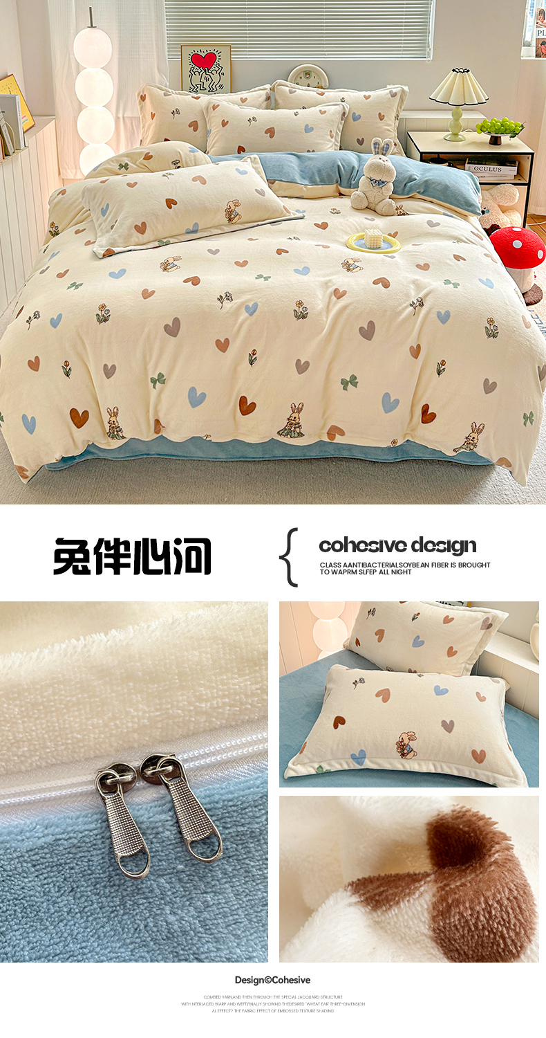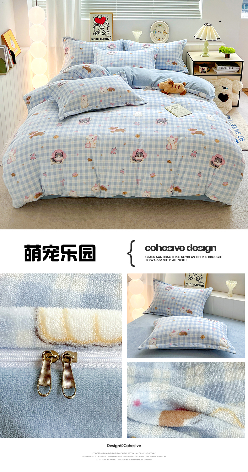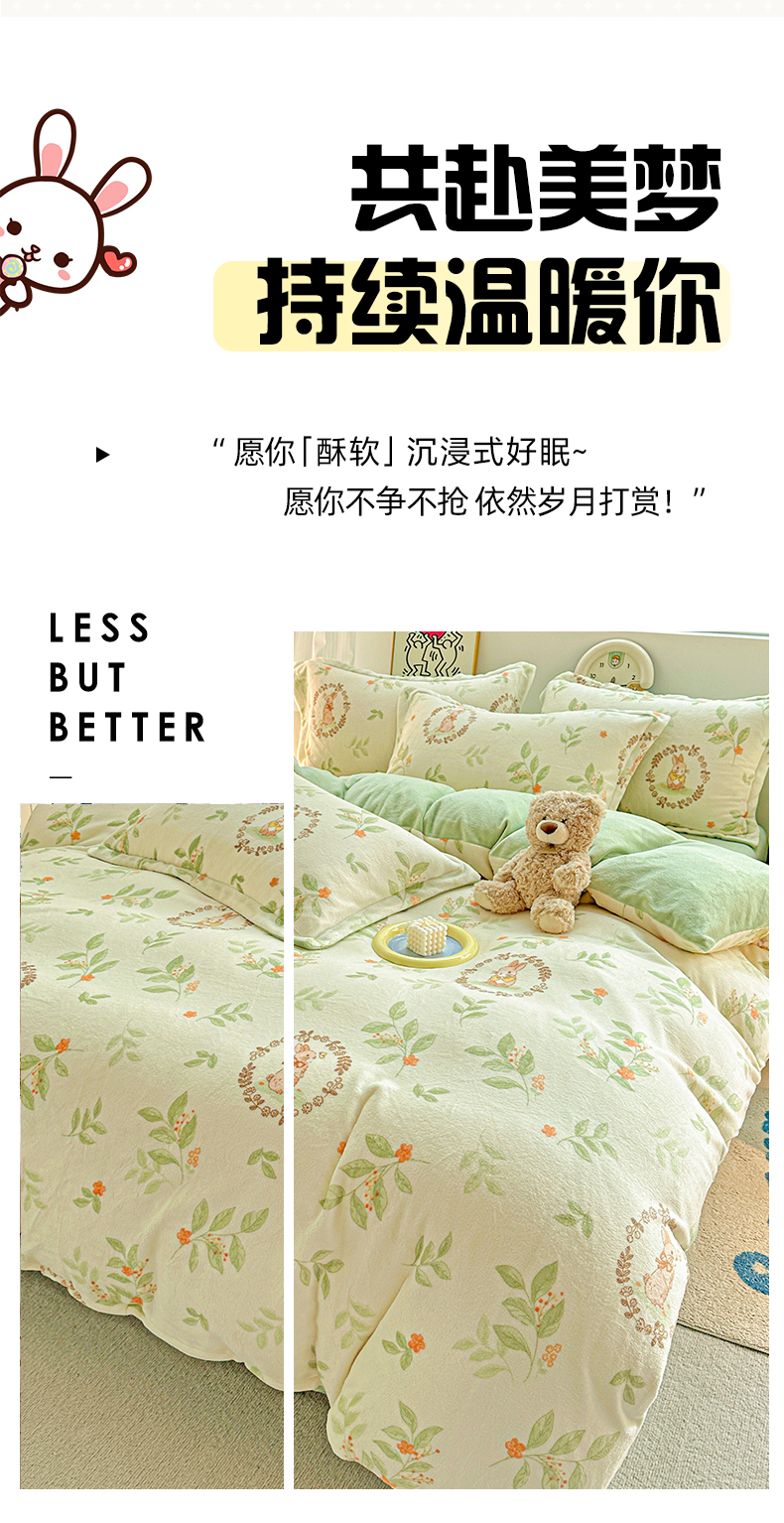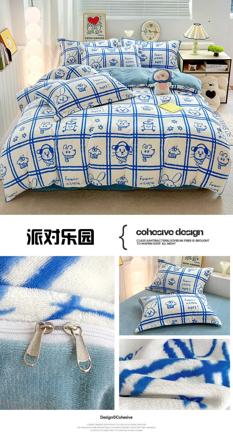 商品名称:(总)简一 2025新款小清新牛奶绒印花四件套-卡通系列