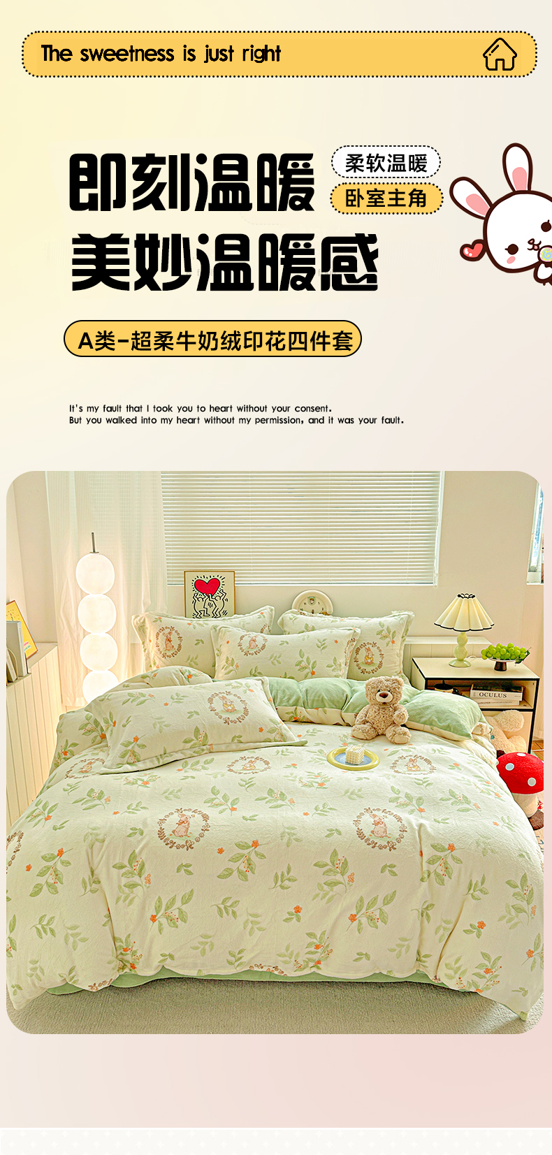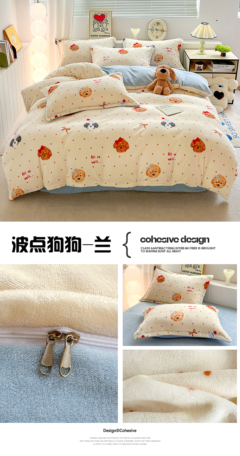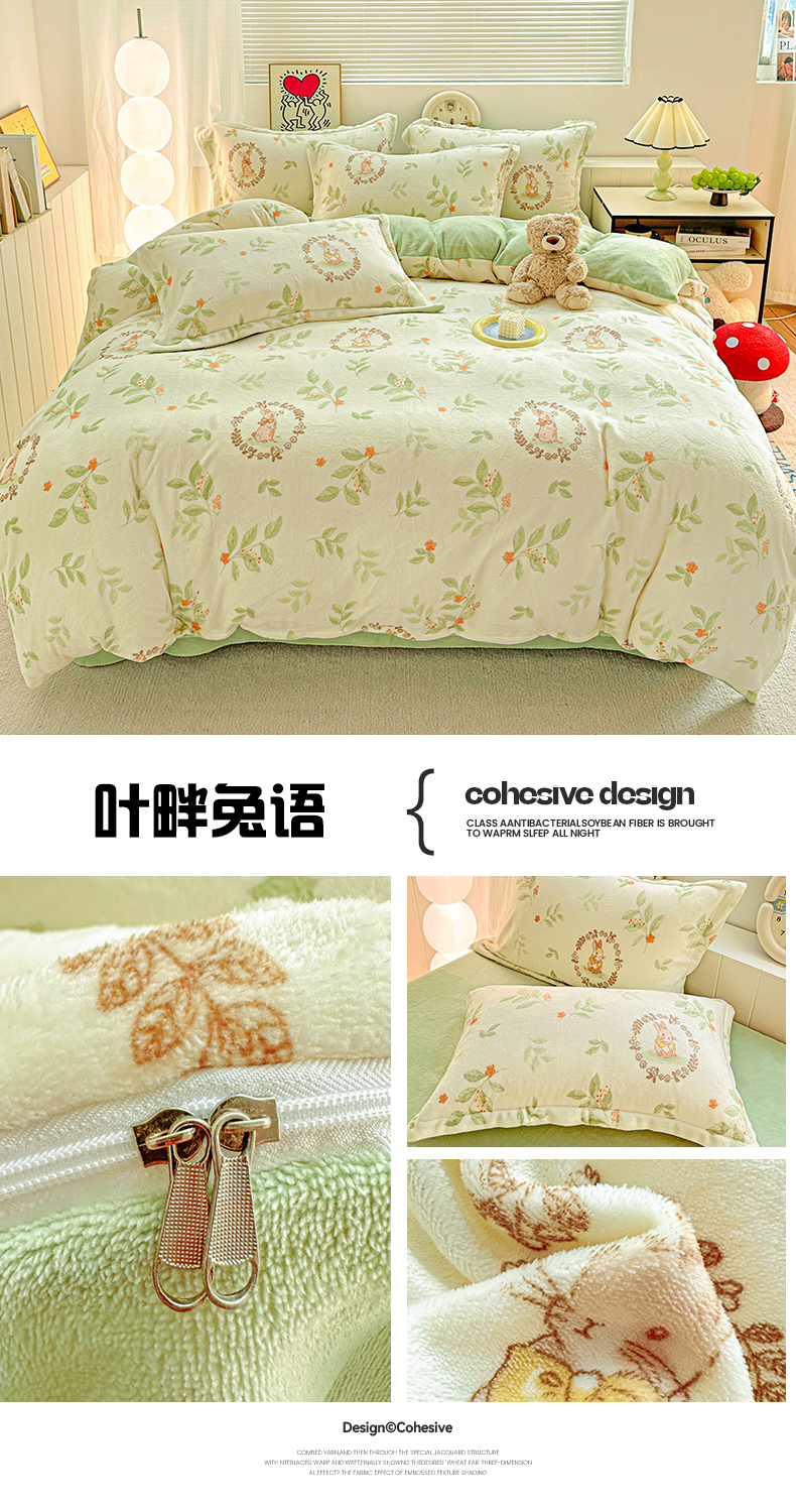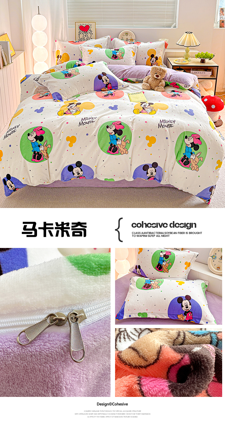 商品名称:(总)简一 2025新款小清新牛奶绒印花四件套-卡通系列