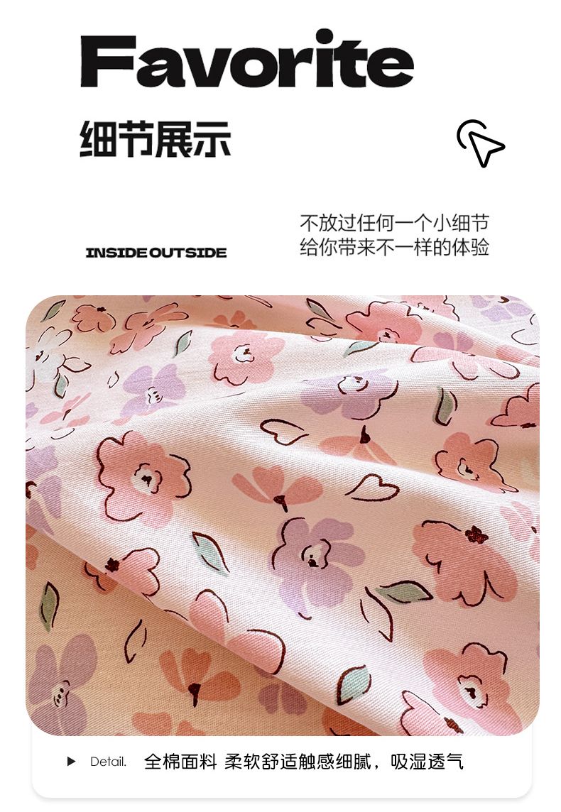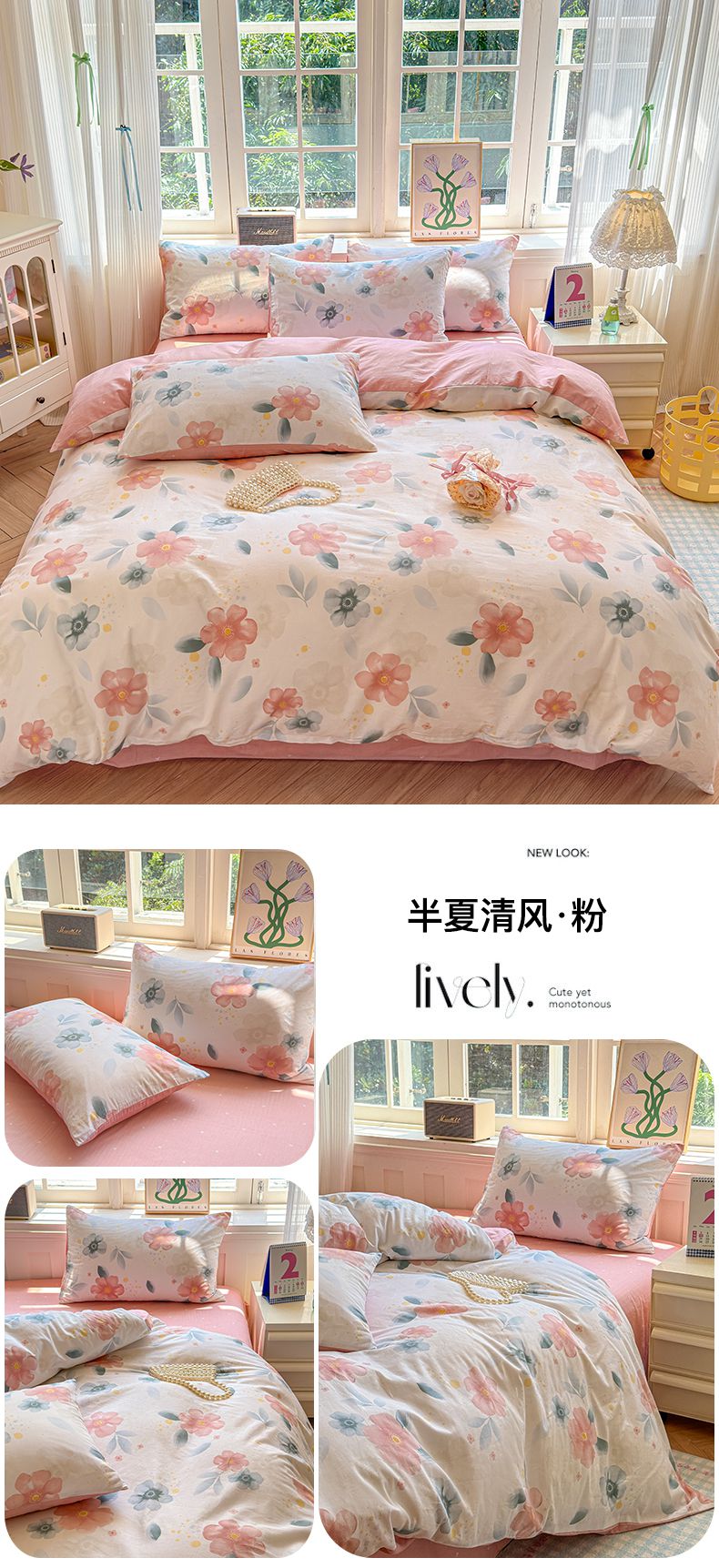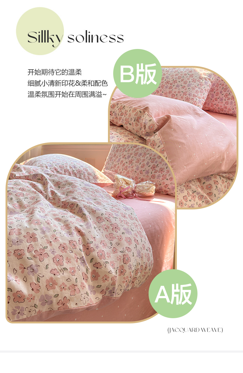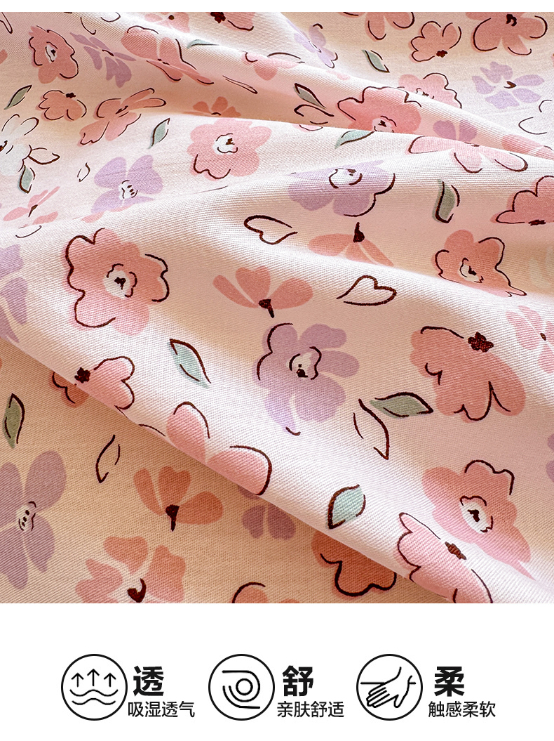 商品名称:清雅福 2024新款全棉13070印花单品系列-四件套 甜美梦境粉