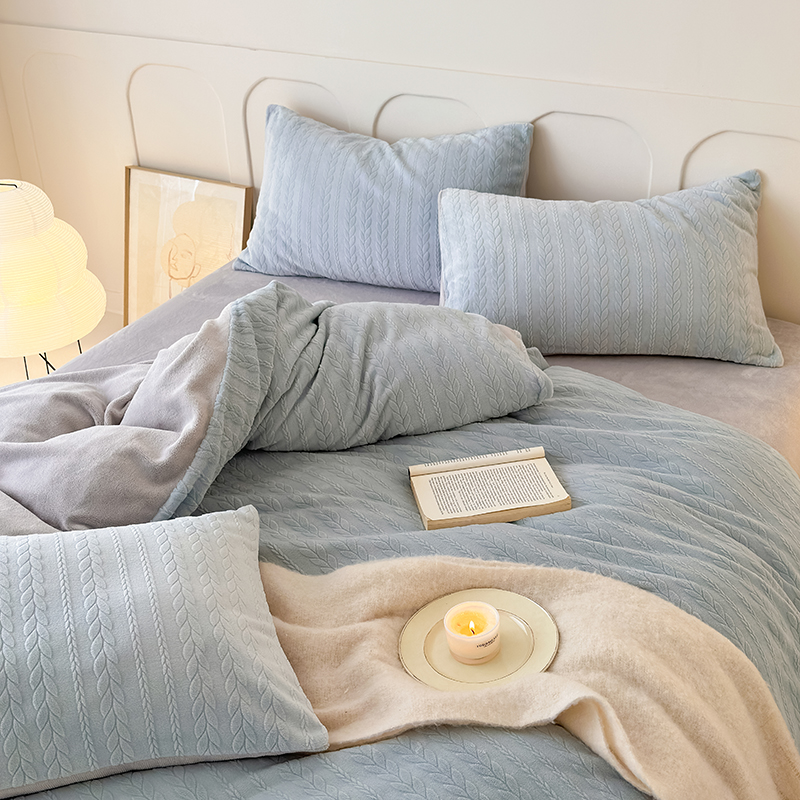 商品名称:2024新款雕花绒牛奶绒四件套--麦穗系列 麦穗粉灰