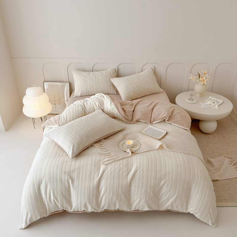 2024新款雕花绒牛奶绒四件套--麦穗系列 麦穗粉灰