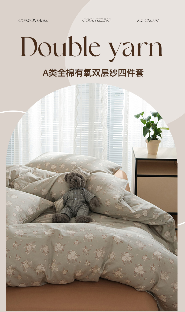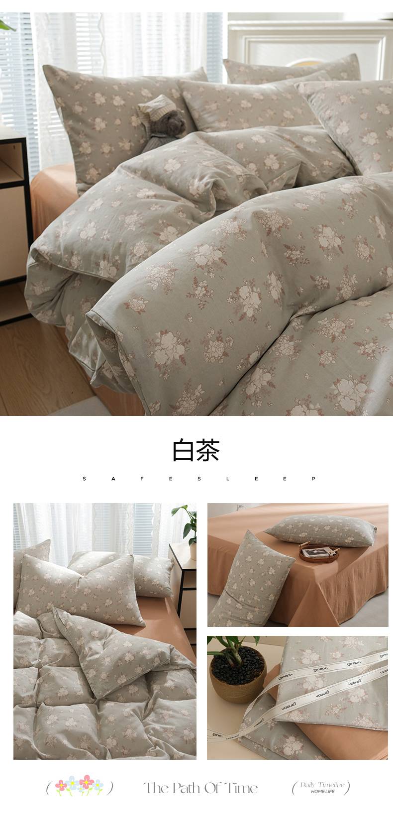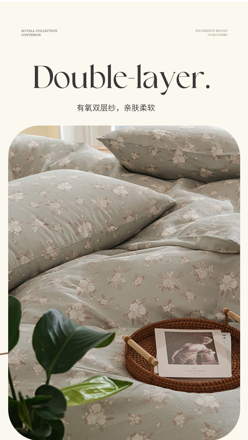 当前位置: 91家纺网 > 商品网购 > 床品套件 > 四件套 > 双层纱四件套 > 麦伦家居 2024秋冬新款A类全棉有氧双层纱四件套 白茶