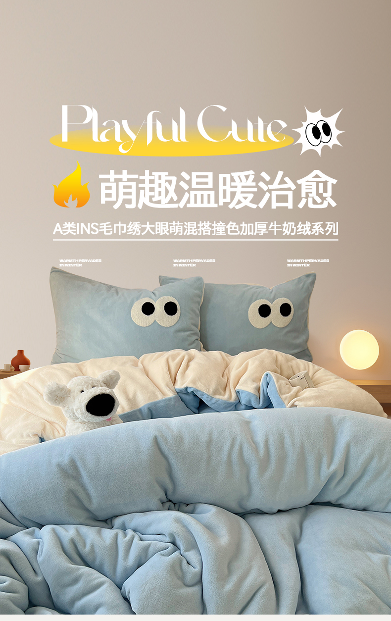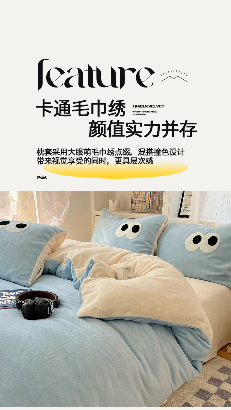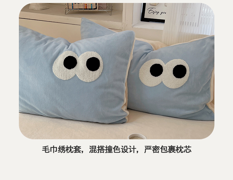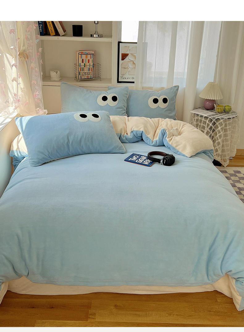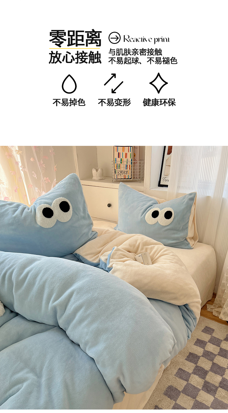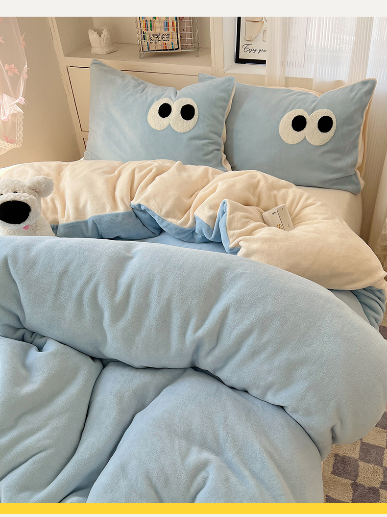 当前位置: 91家纺网 > 商品网购 > 床品套件 > 四件套 > 牛奶绒四件套 > 桃子家居 2024新款A类ins加厚毛巾绣大眼萌混搭撞色牛奶绒系列四件套 绒毛巾绣-大眼萌海盐芝士