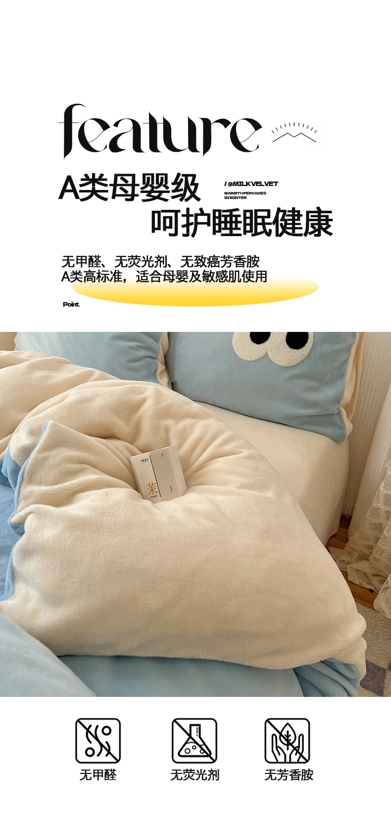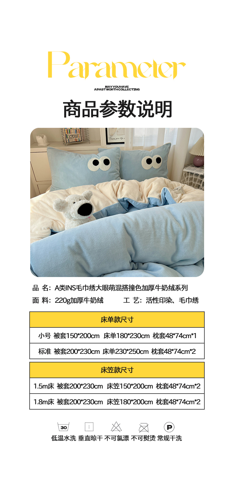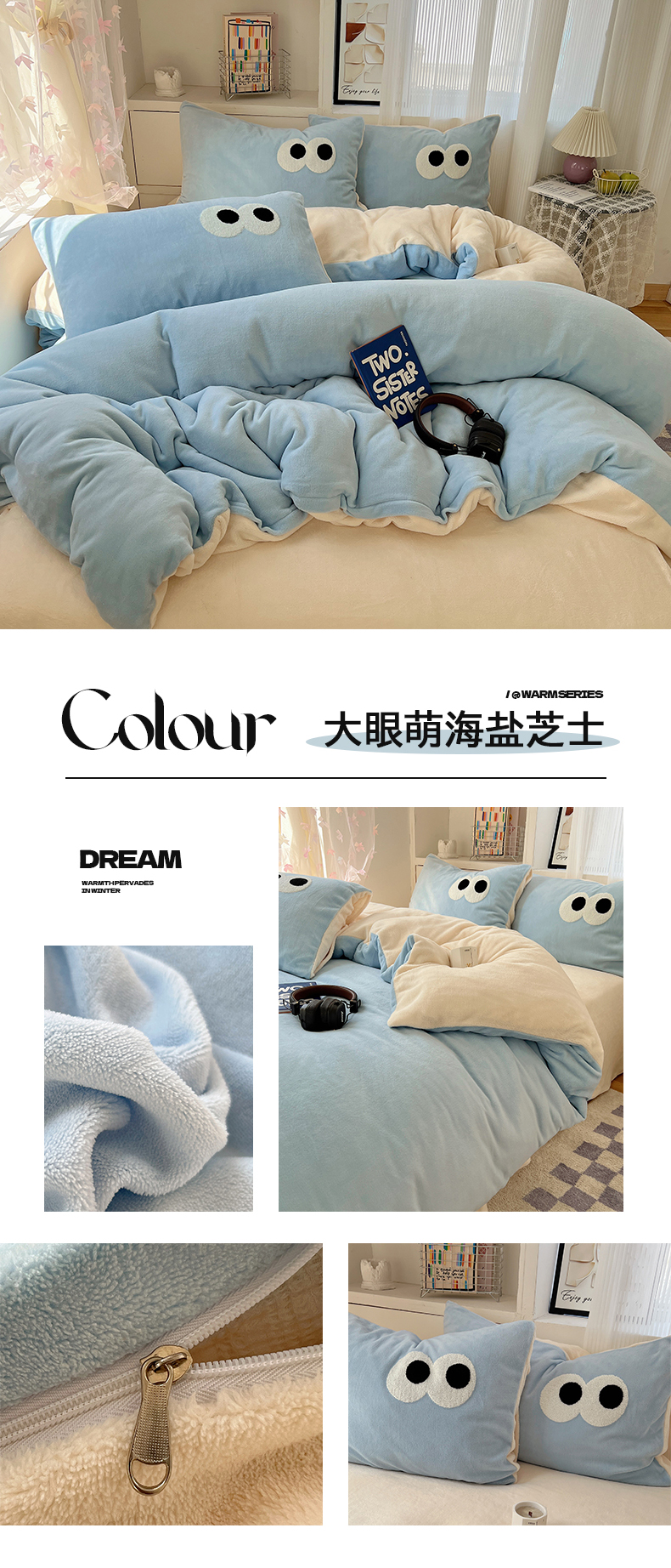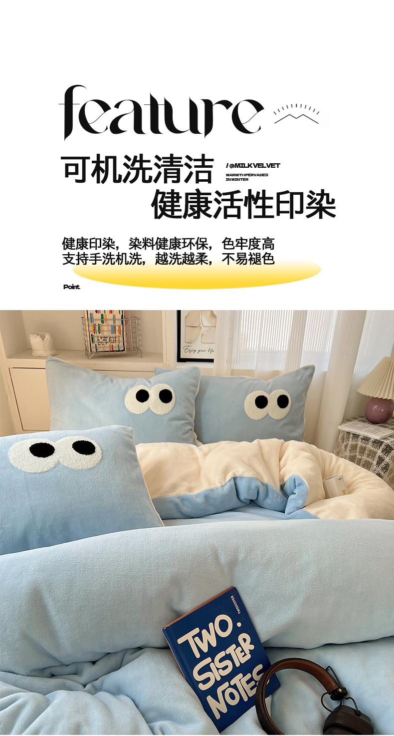 当前位置: 91家纺网 > 商品网购 > 床品套件 > 四件套 > 牛奶绒四件套 > 桃子家居 2024新款A类ins加厚毛巾绣大眼萌混搭撞色牛奶绒系列四件套 绒毛巾绣-大眼萌海盐芝士